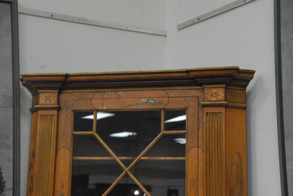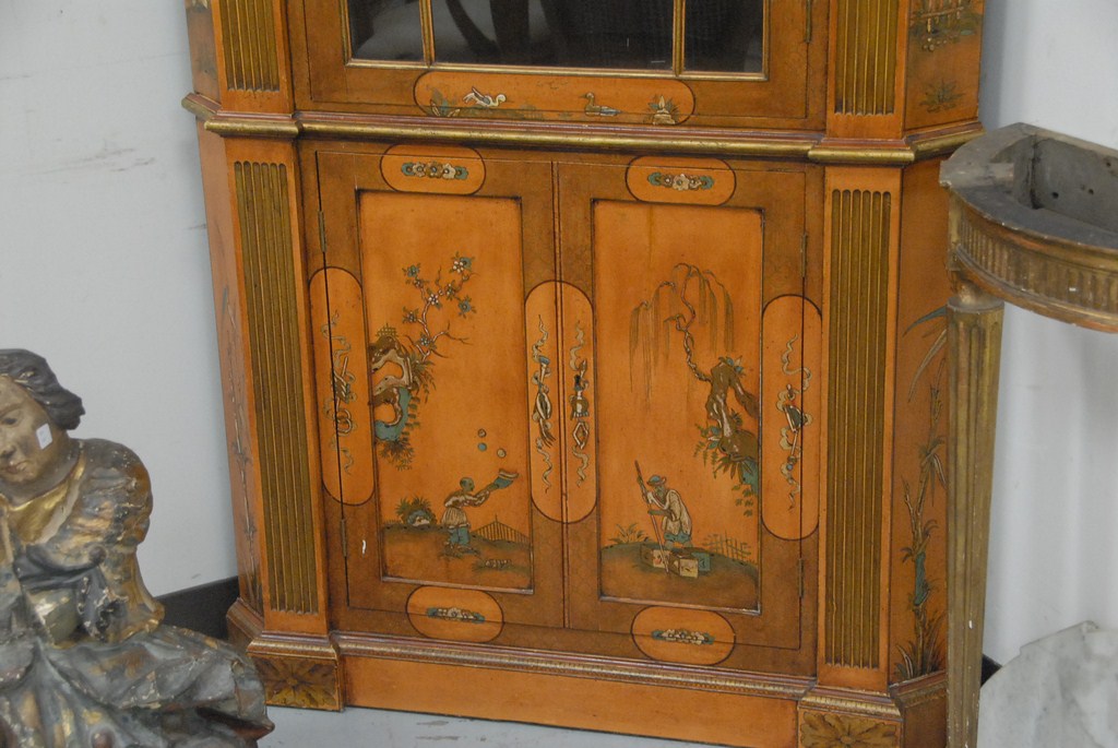 Lot 546: Reproduction corner cupboard with two glazed doors over two wood doors with all over chinoiserie decoration. ht. 84in. wd. 40in. d…