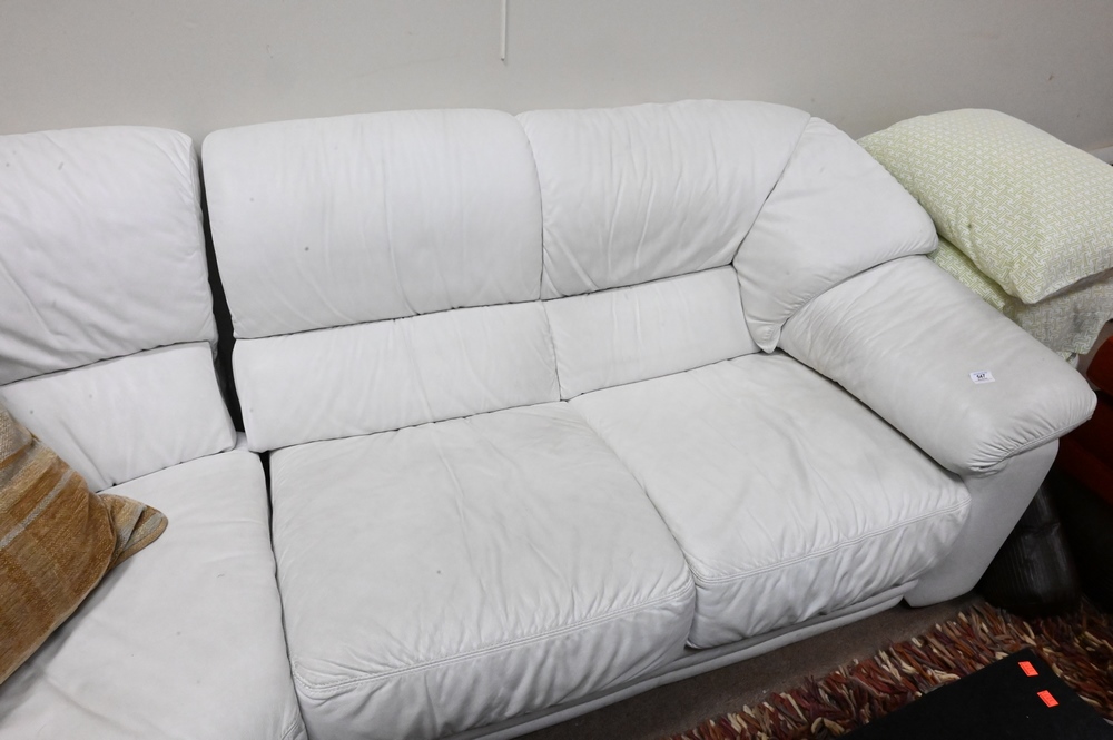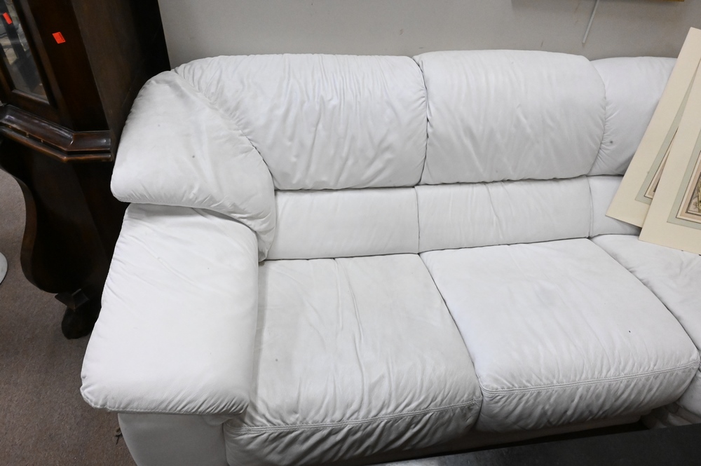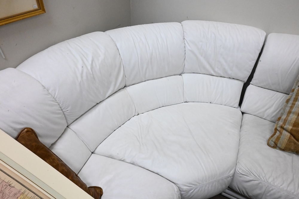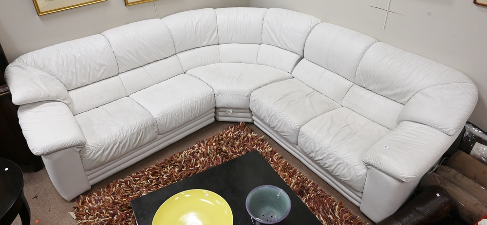 Natuzzi Salotti White Leather Three Piece Sectional Sofa, (slight soiling), 91″ x 80″.