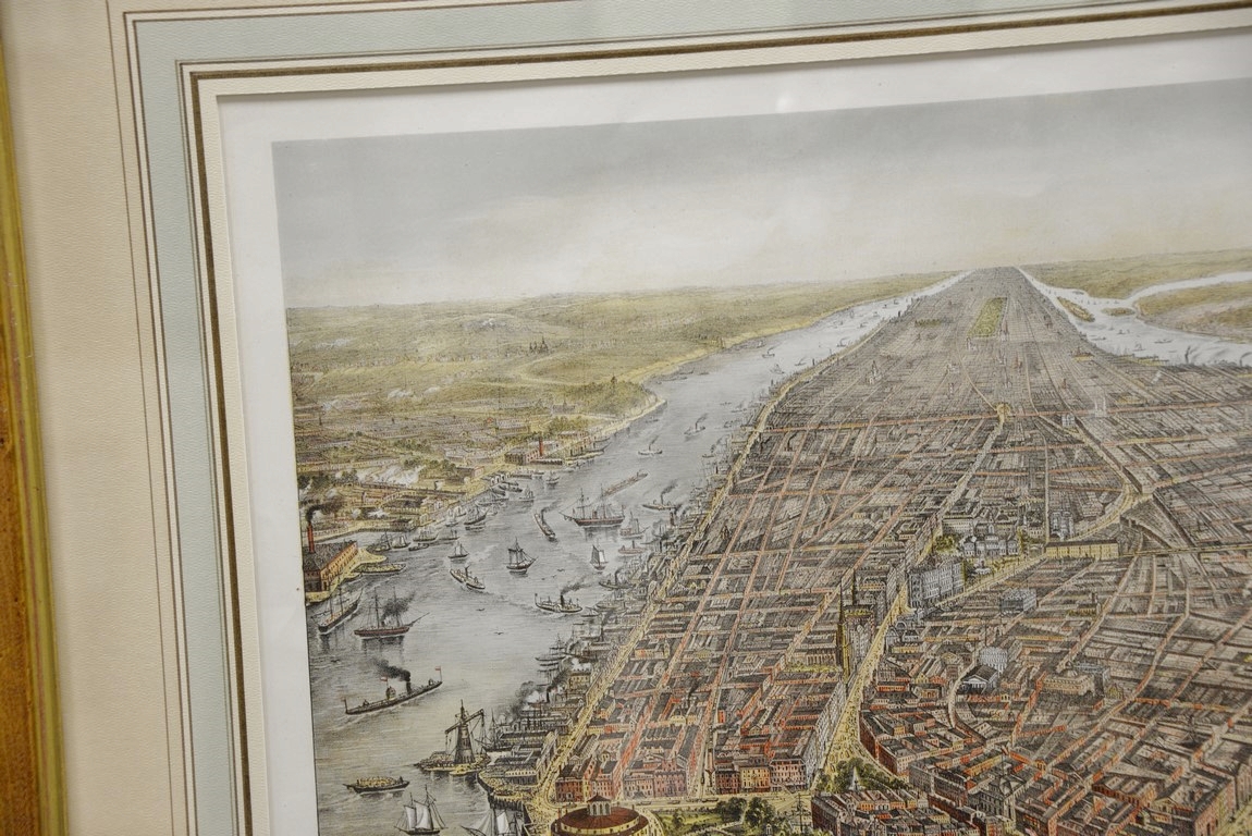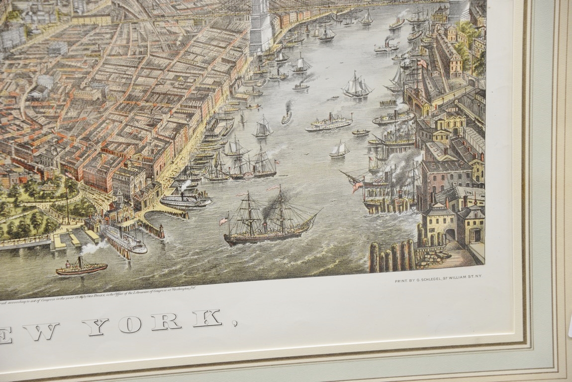 New York lithograph taken from Battery Place marked lower left: published by Geo. Degen, 22 Beekman St. N.Y. marked lower right: printed by E. Schiegel, 97 Williams St. N.Y. sight size: 18 x 25 Provenance: Property from Credit Suisse’s Americana Collection