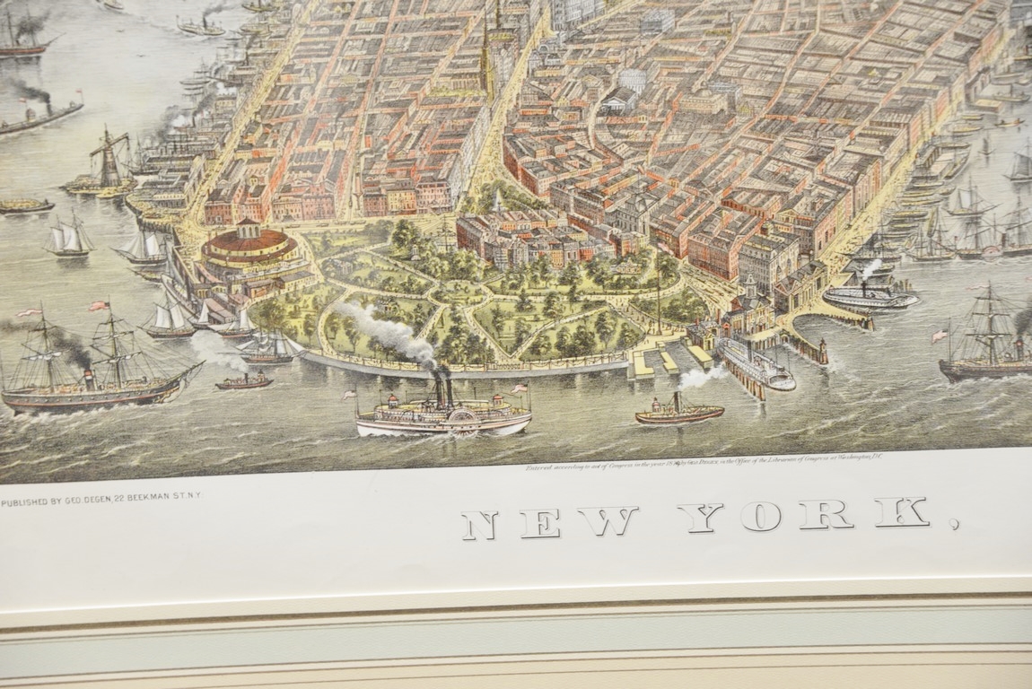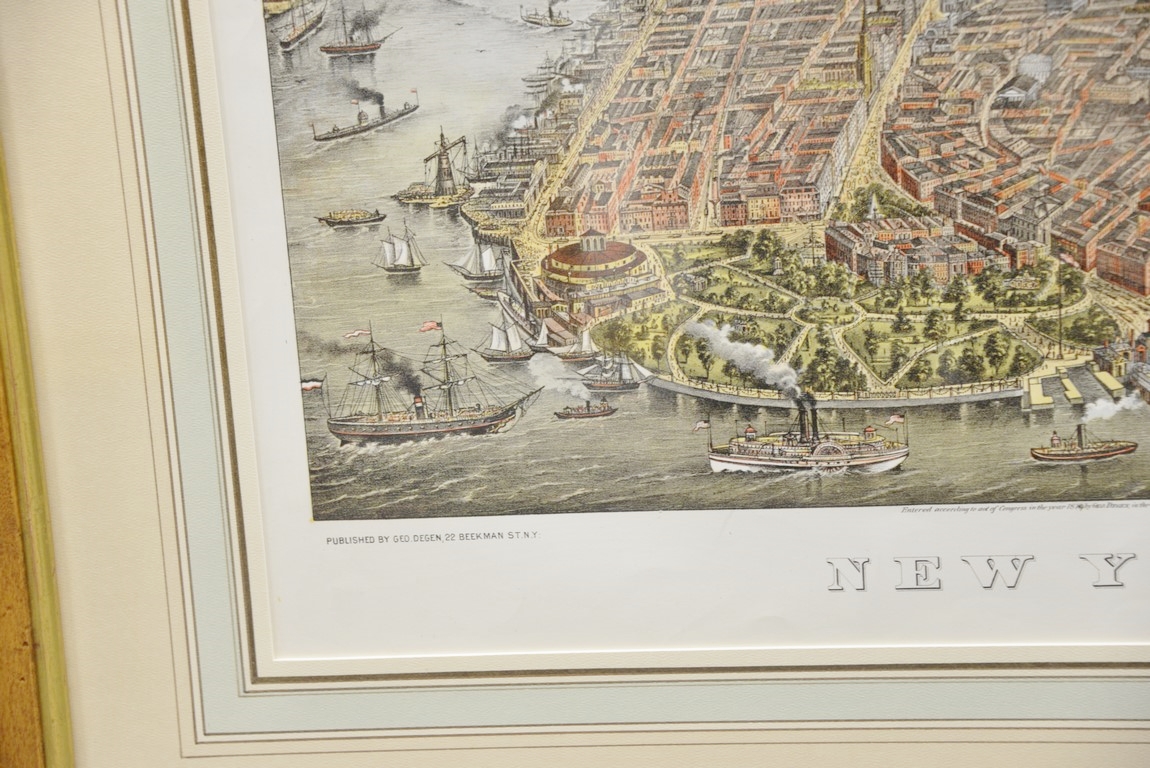 Lot 547: New York lithograph taken from Battery Place marked lower left: published by Geo. Degen, 22 Beekman St. N.Y. marked lowe…