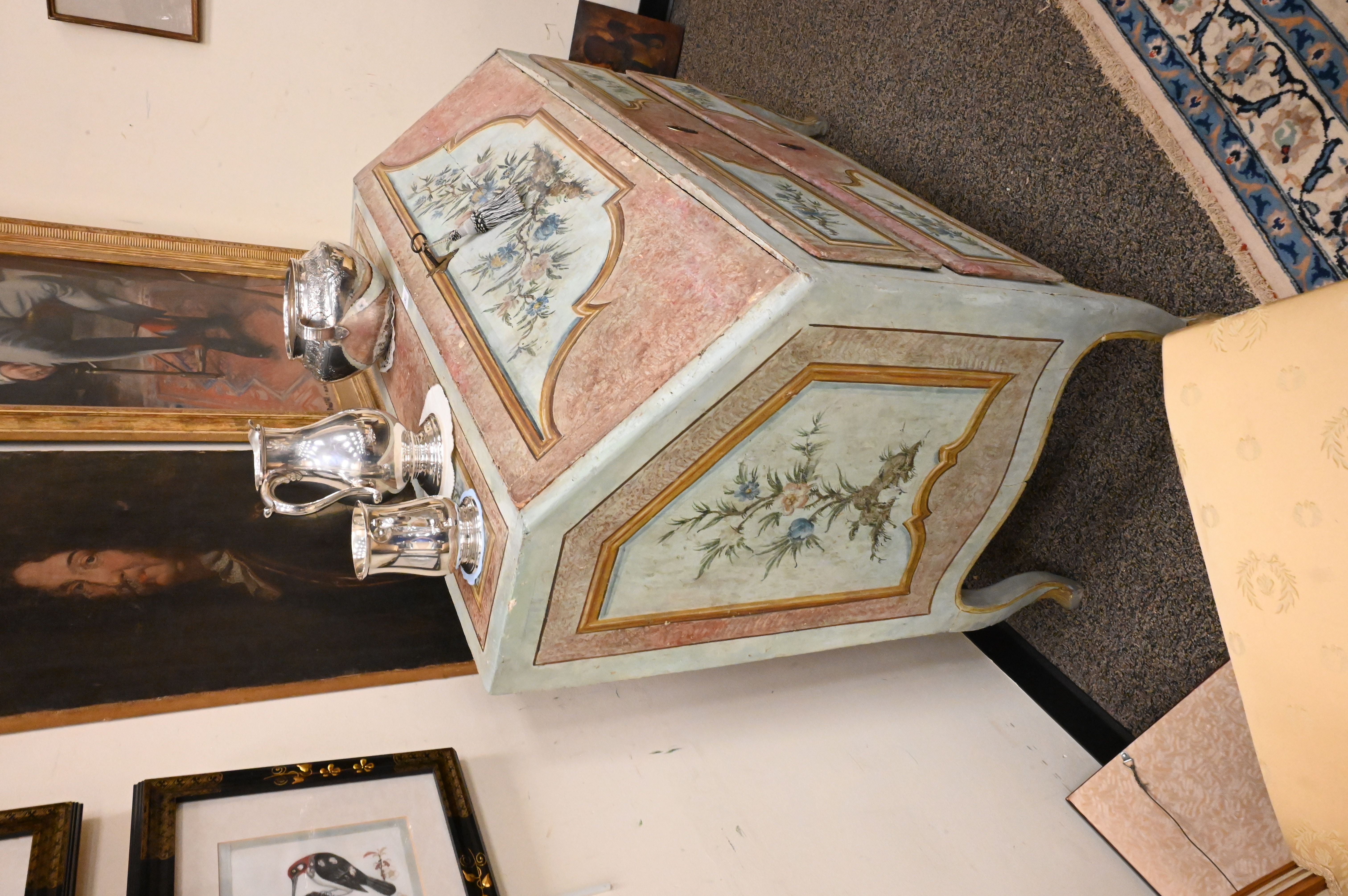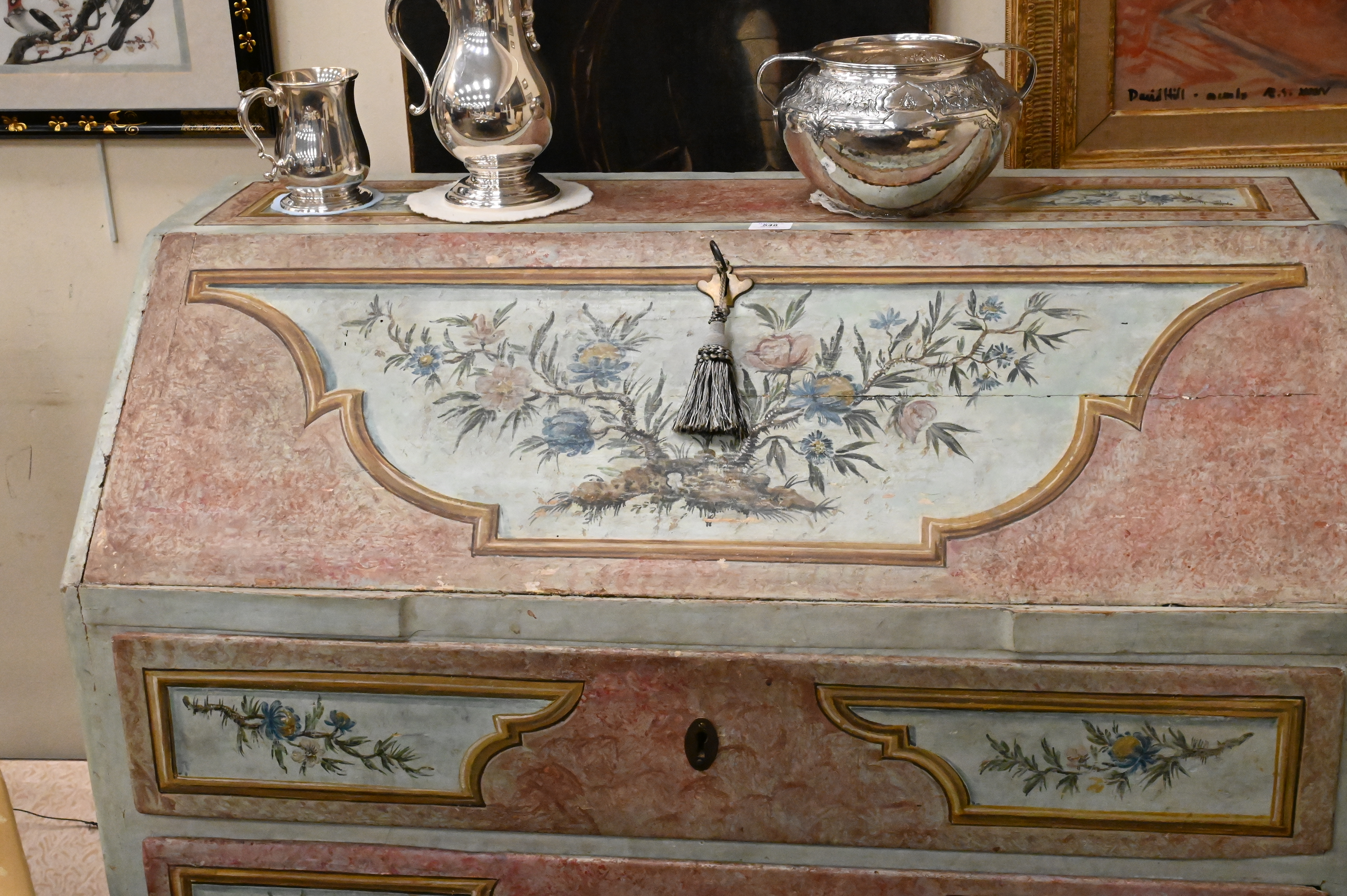 Lot 548: Italian Polychrome- Painted Drop Front Writing Desk