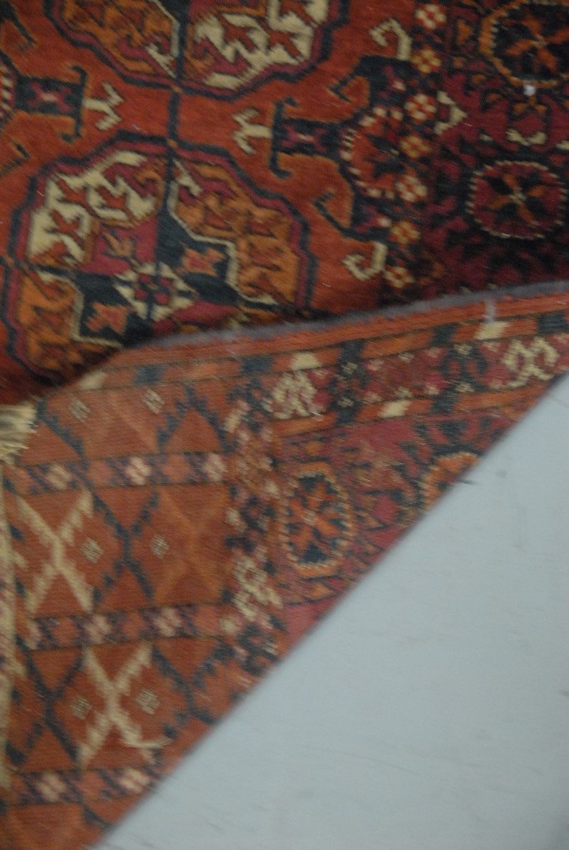 Lot 549: Bokhara Oriental throw rug. 3’7 x 4’10