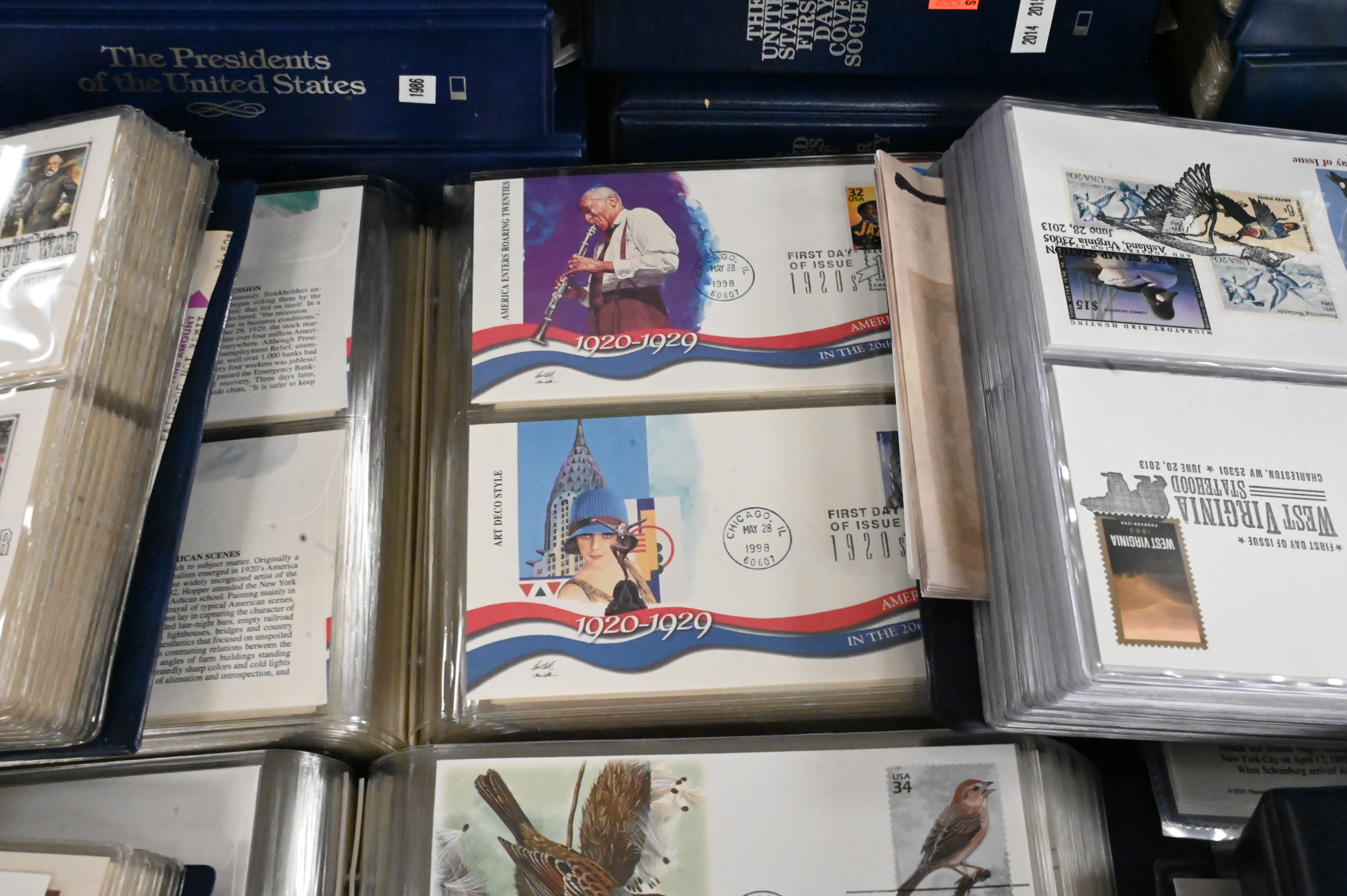 Large collection of Modern United States First Day Covers and Postcards, housed in albums, thousands of clean covers and cards