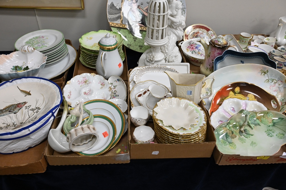 Large Group of Assorted Porcelain, to include hand painted Limoge, oyster plate, Bavarian luncheon set, Johnson Brothers fish plates, design number 2, Villeroy and Boch charger with two Japanese ladies.