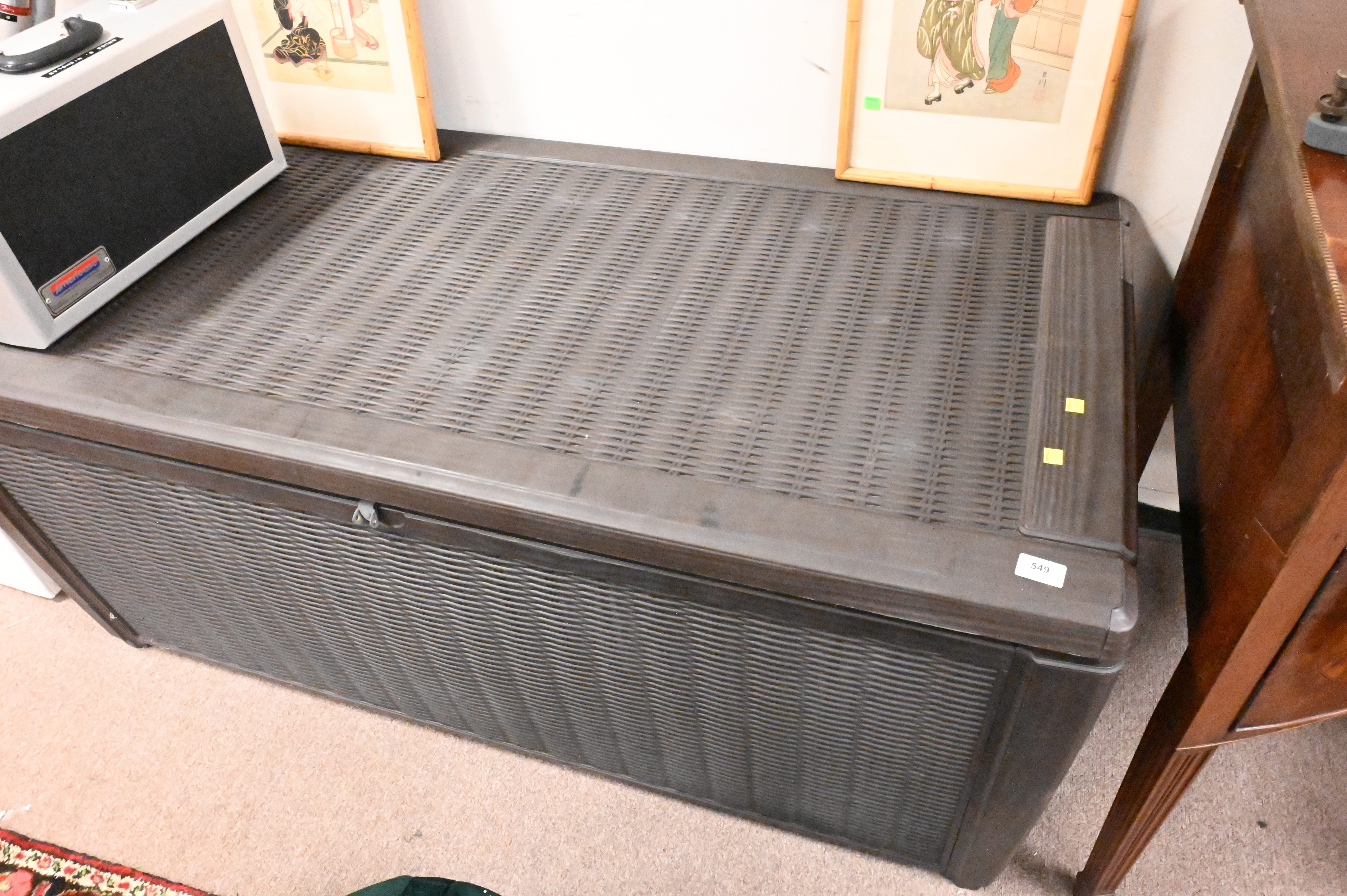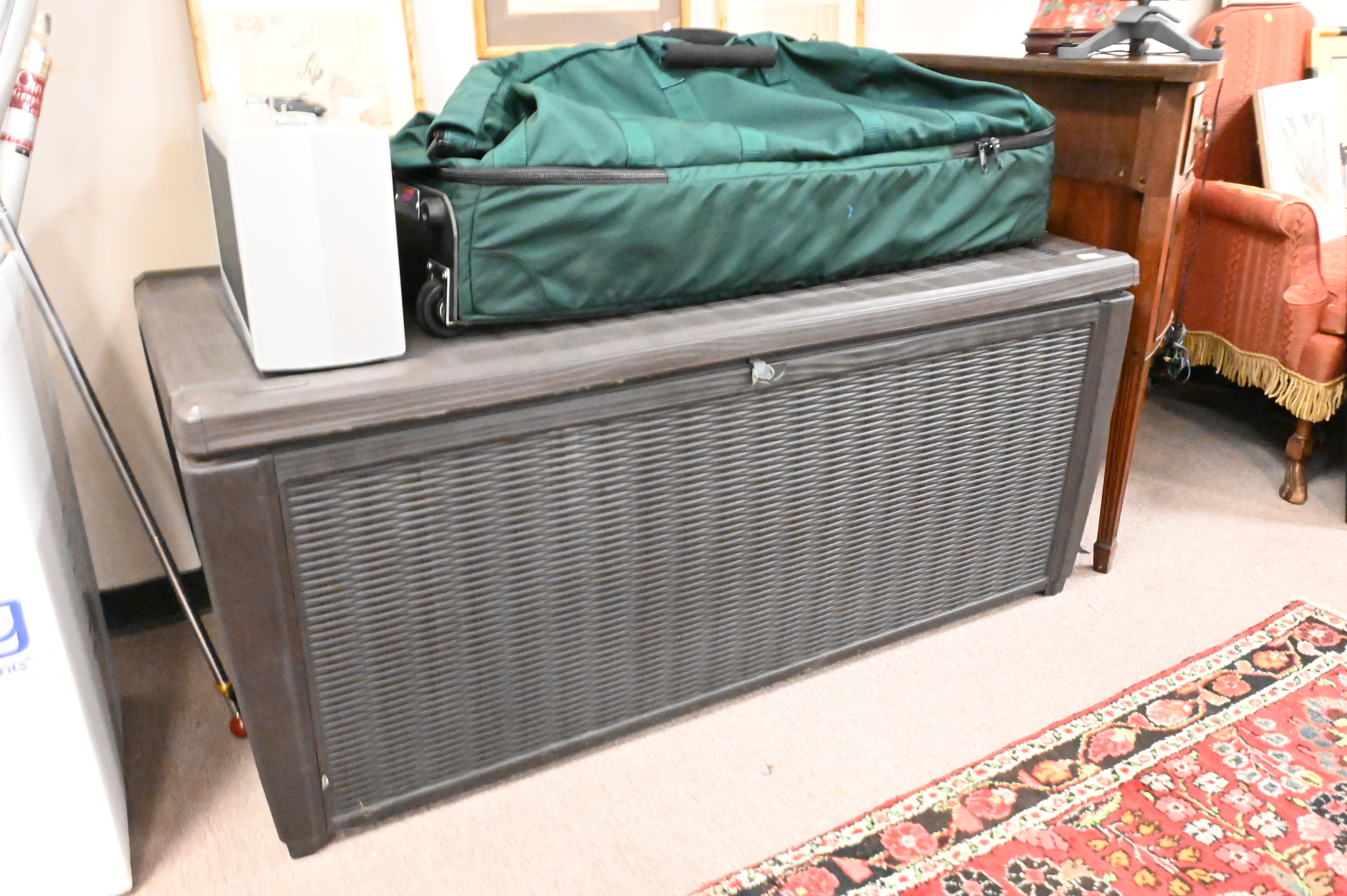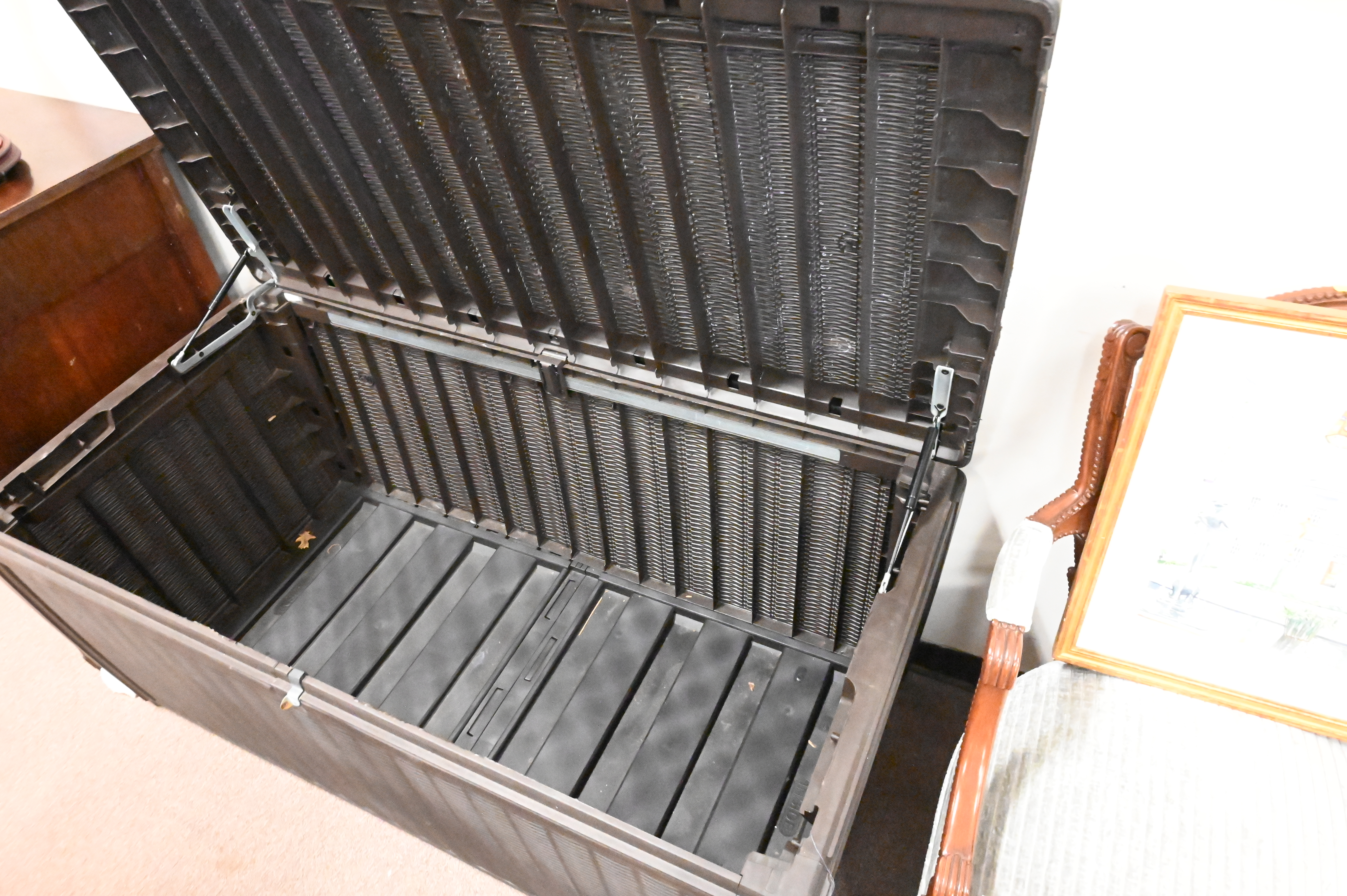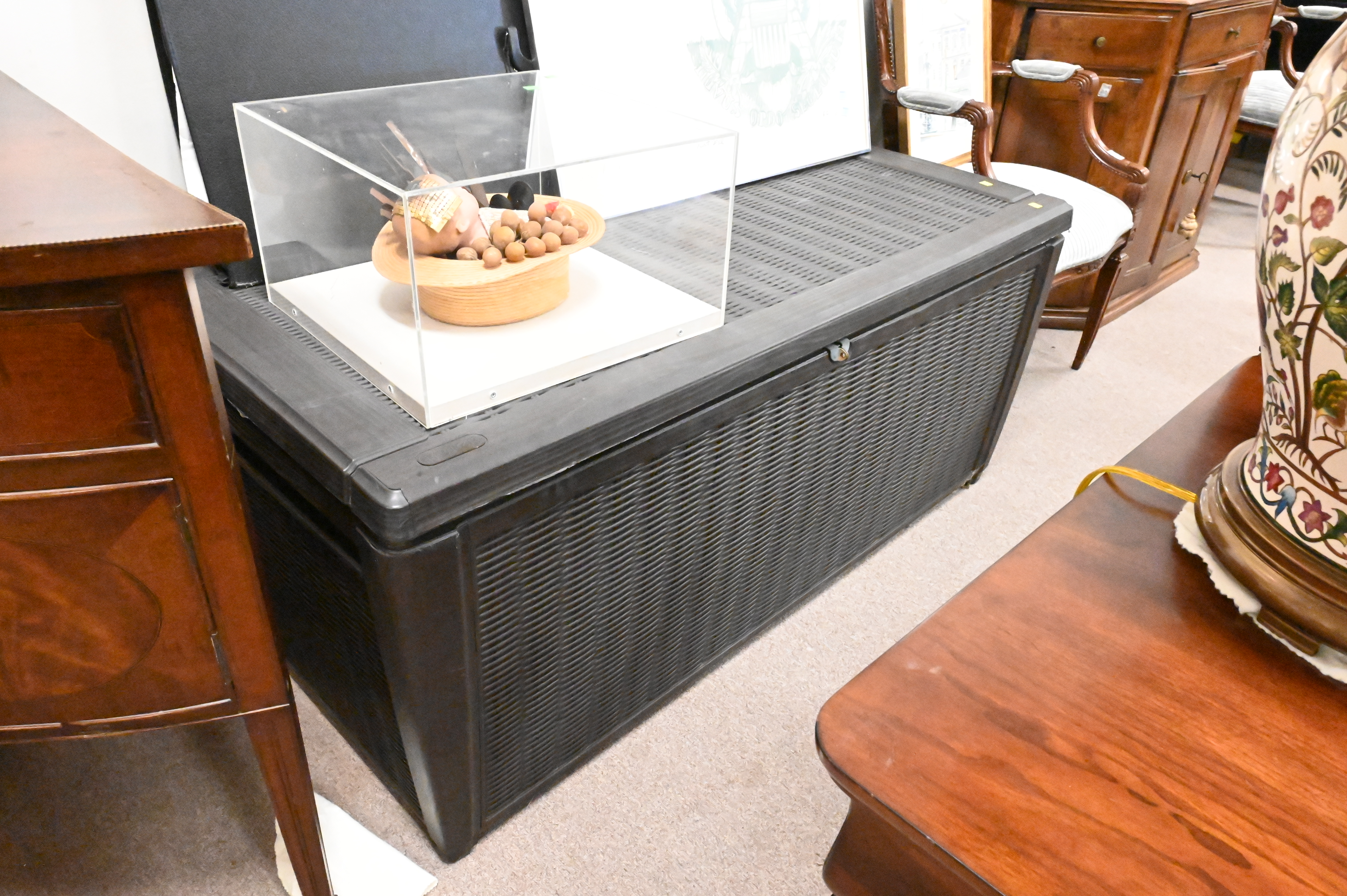Pair of Outdoor Cushion Lift Top Chests, height 24 inches, top 28″ x 56″