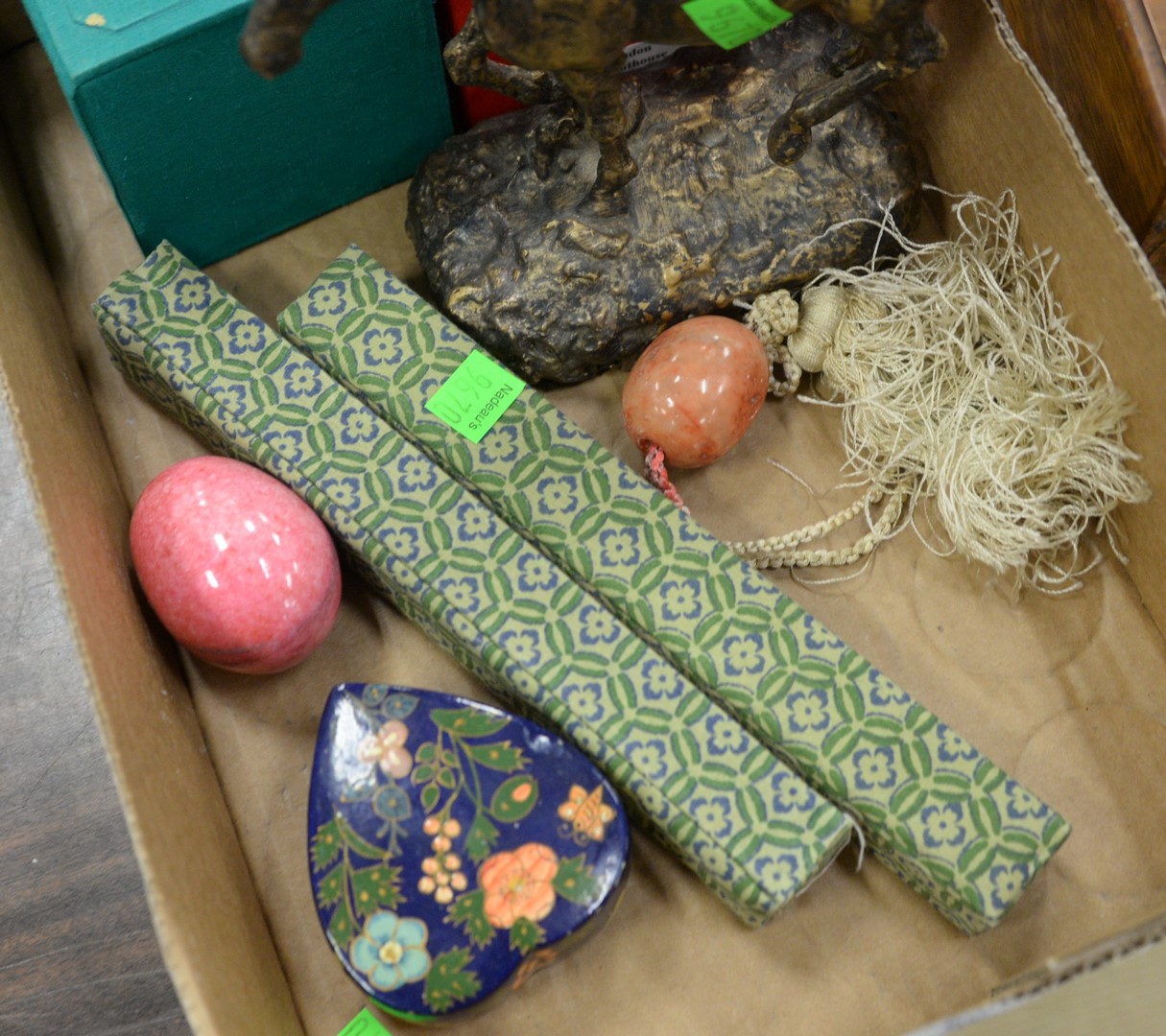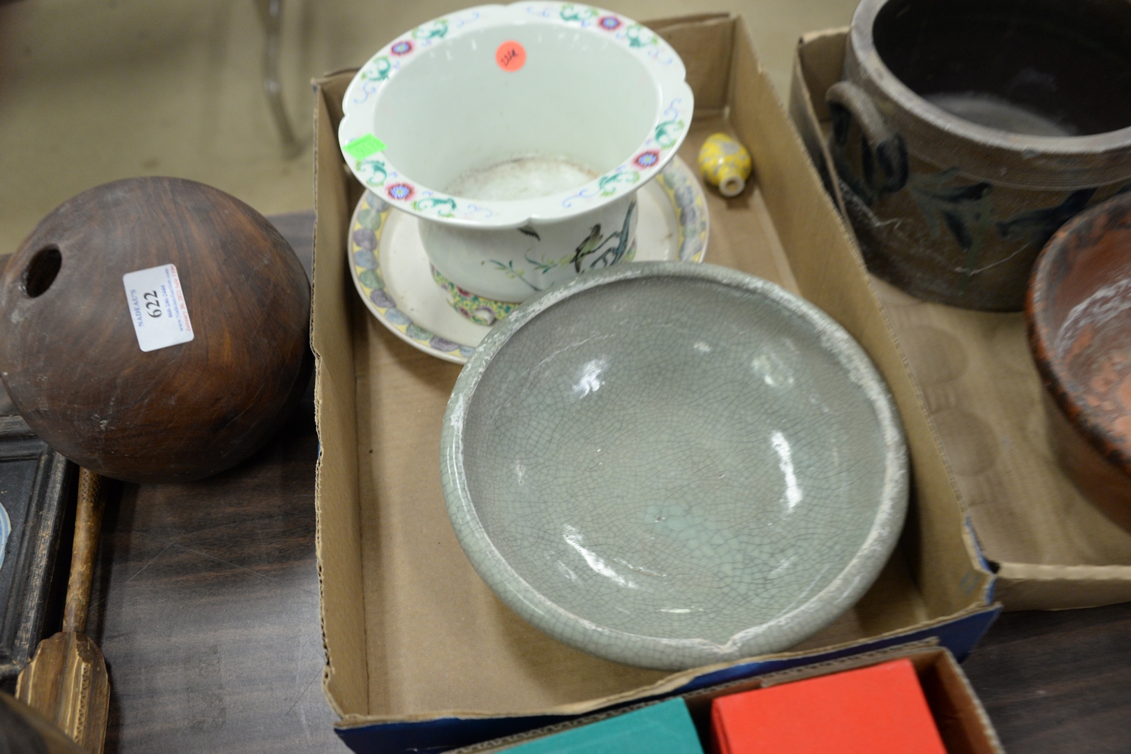 Lot 549: Two Tray Lots with chinese porcelain, crackle glaze bowl, etc. Provenance: The Estate of Diana Atwood Johnson