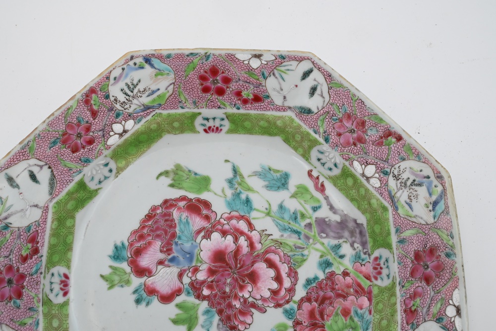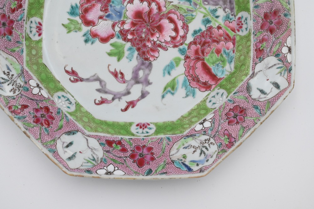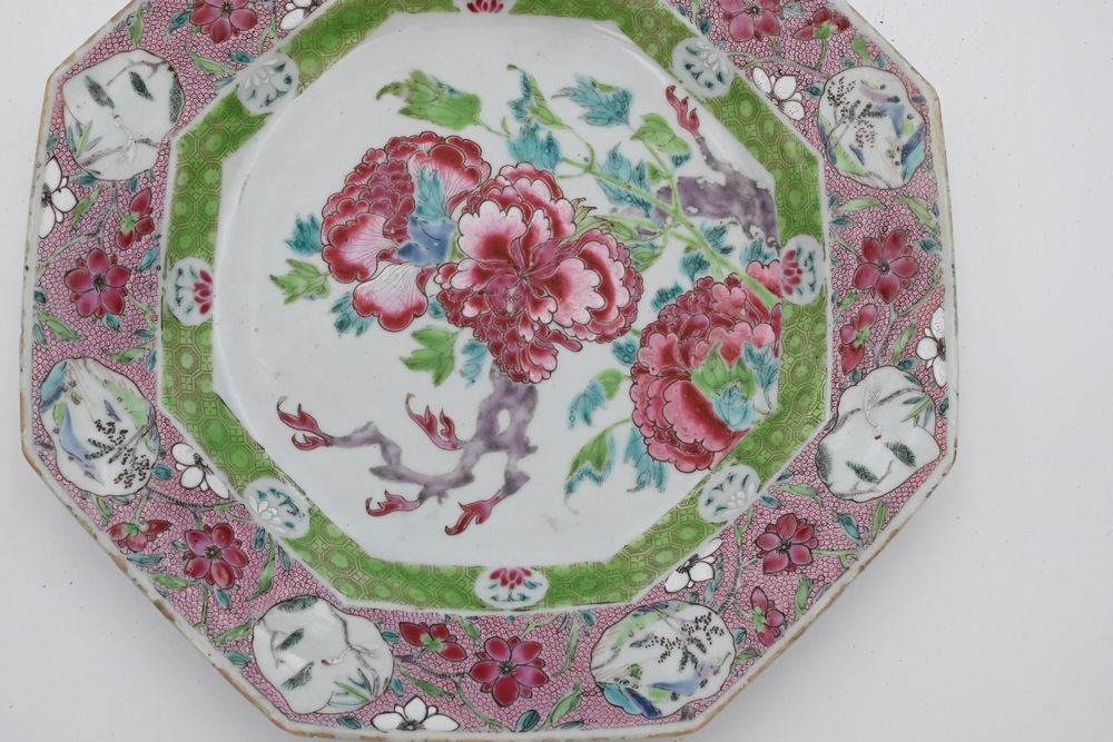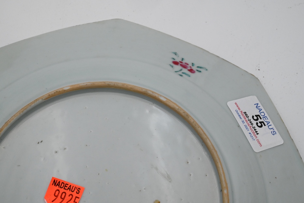 Lot 55: Chinese Export Porcelain Octagonal Dish having enameled flowers with eight vignettes of flowers diameter 10 7/8 inches Provenance: From a private New York City collection.