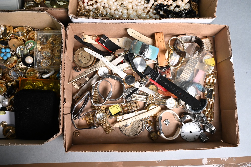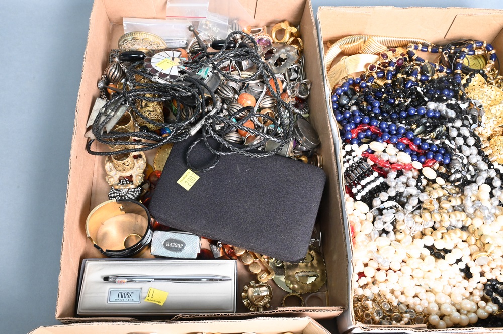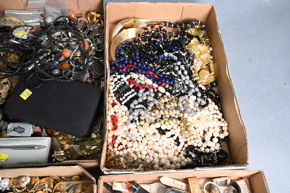 Lot 55: Four Tray Lots of Costume Jewelry, some silver, necklaces, bracelets, earrings, bolo ties, etc.