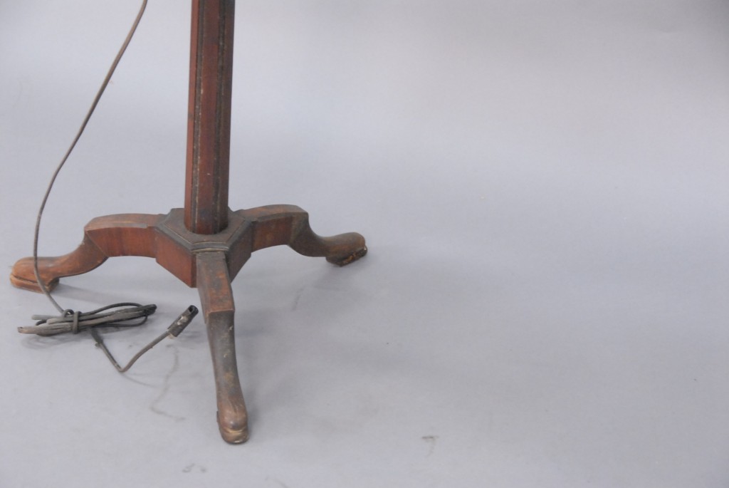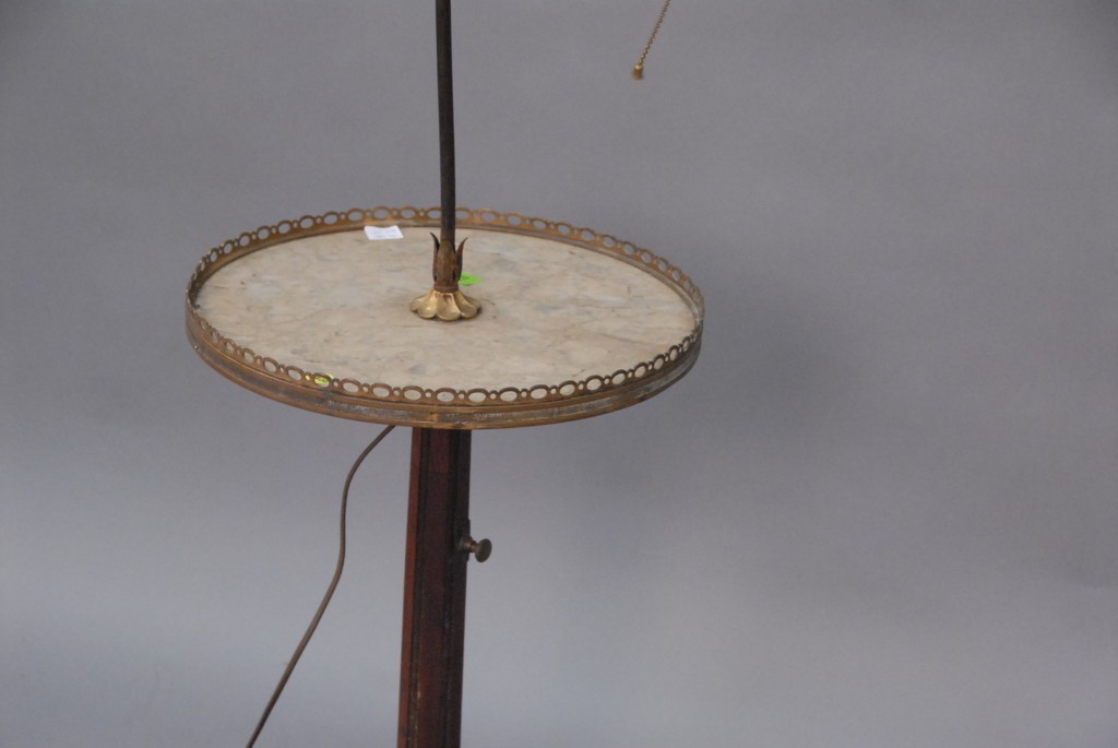 French marble top stand mounted with iron table lamp, early 20th century.