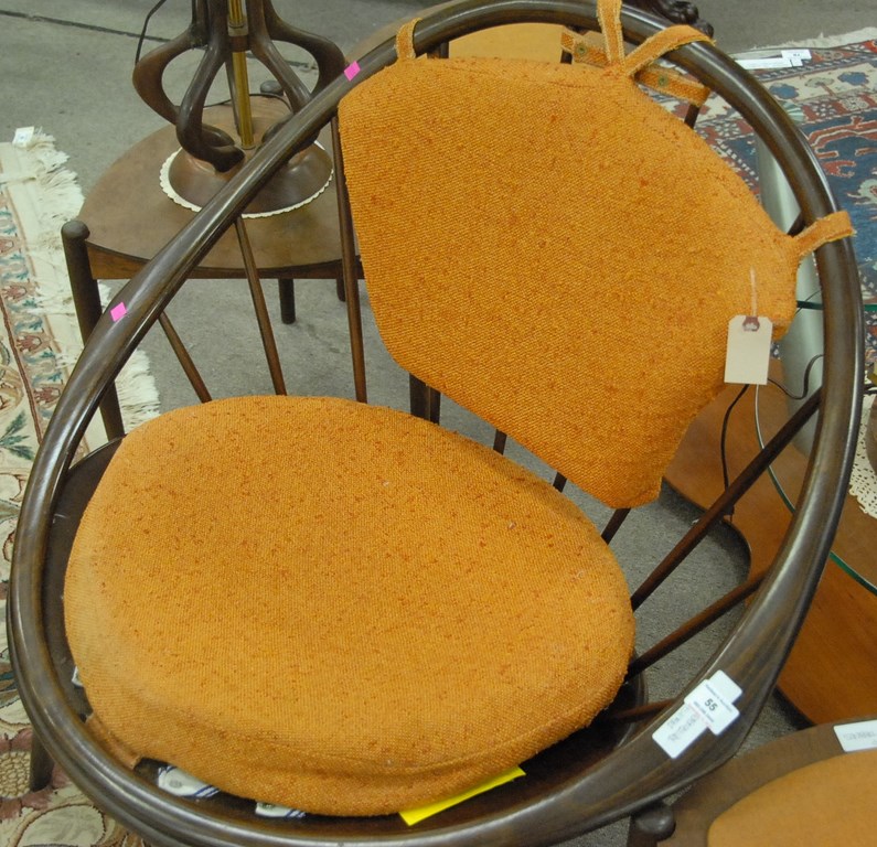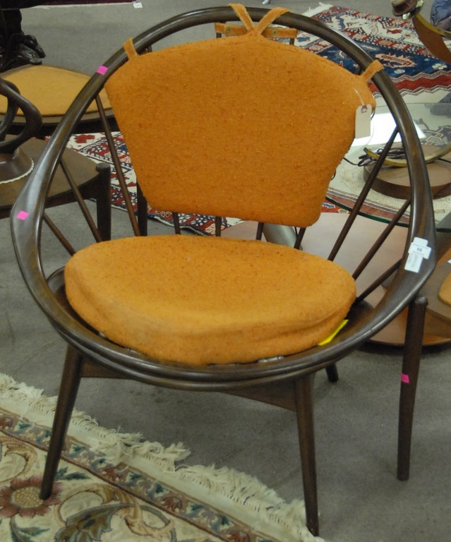 Lot 55: Kofod Larsen chair by Selig made in Denmark spindle back armchair marked underneath with red and white cross.