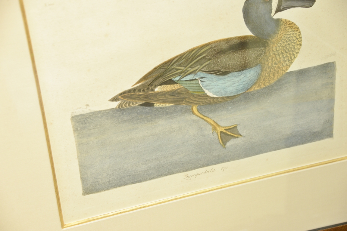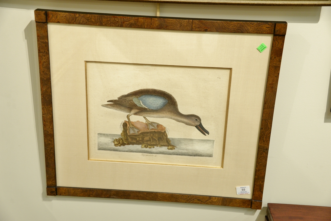 Lot 55: Pair of Mark Catesby hand colored engravings Querquedula & C T100 & T99. plate size 10 1/4 x 13 3/4, sight size 11 3/4 x 15 1/4…