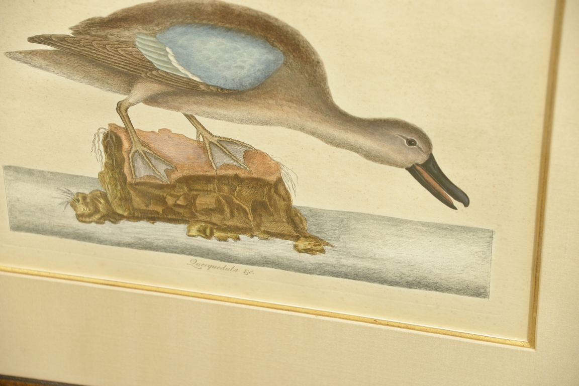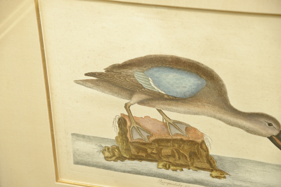Pair of Mark Catesby hand colored engravings Querquedula & C T100 & T99. plate size 10 1/4 x 13 3/4, sight size 11 3/4 x 15 1/4 Provenance: Property from Credit Suisse’s Americana Collection