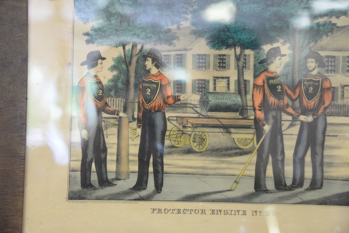 Lot 55: Protector Engine No. 2 hand colored lithograph by Kellogg and Comstock Hartford, CT, sight size 9 x 11 3/4.