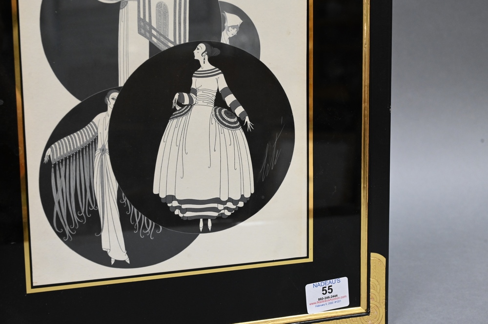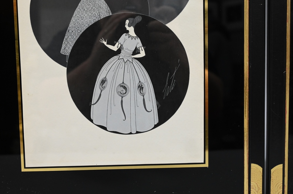 Lot 55: Romain Erte De Tirtoff (1892-1990), pair of costume design, watercolor, gouache and ink on paper, signed Erte, sight size 11.5″ x 8.5″.