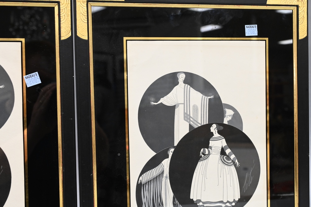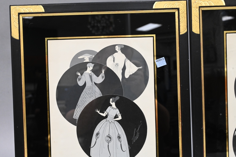 Romain Erte De Tirtoff (1892-1990), pair of costume design, watercolor, gouache and ink on paper, signed Erte, sight size 11.5″ x 8.5″.