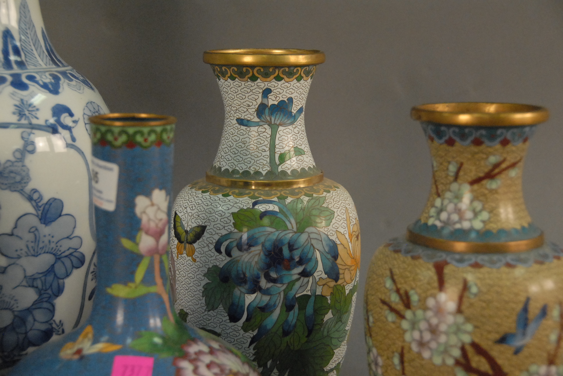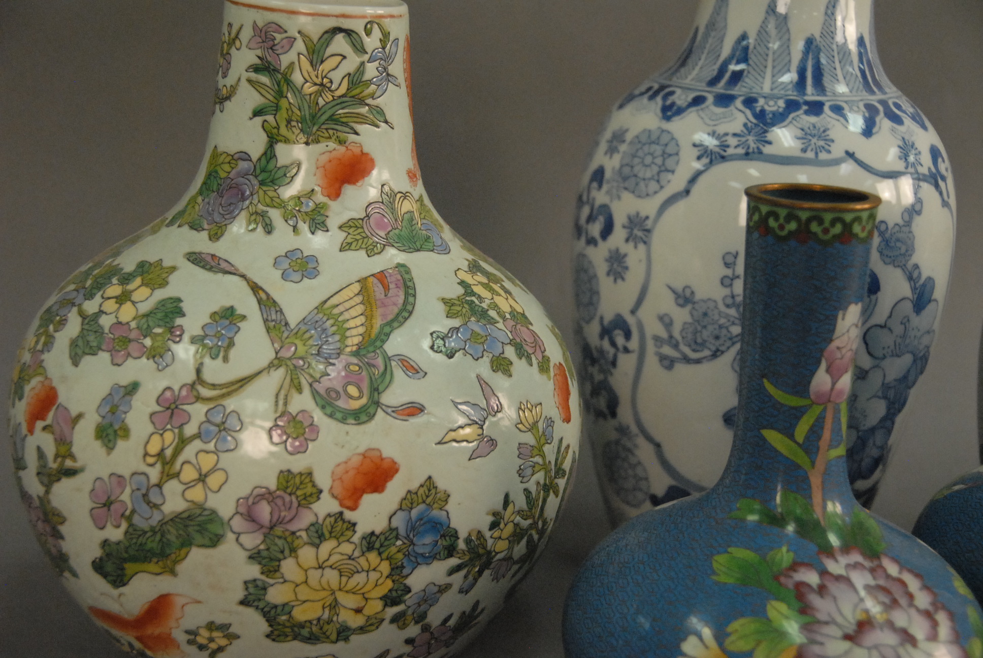 Six vases to include two porcelain vases and four cloisonne vases.hts. 9 in. to 4 in.