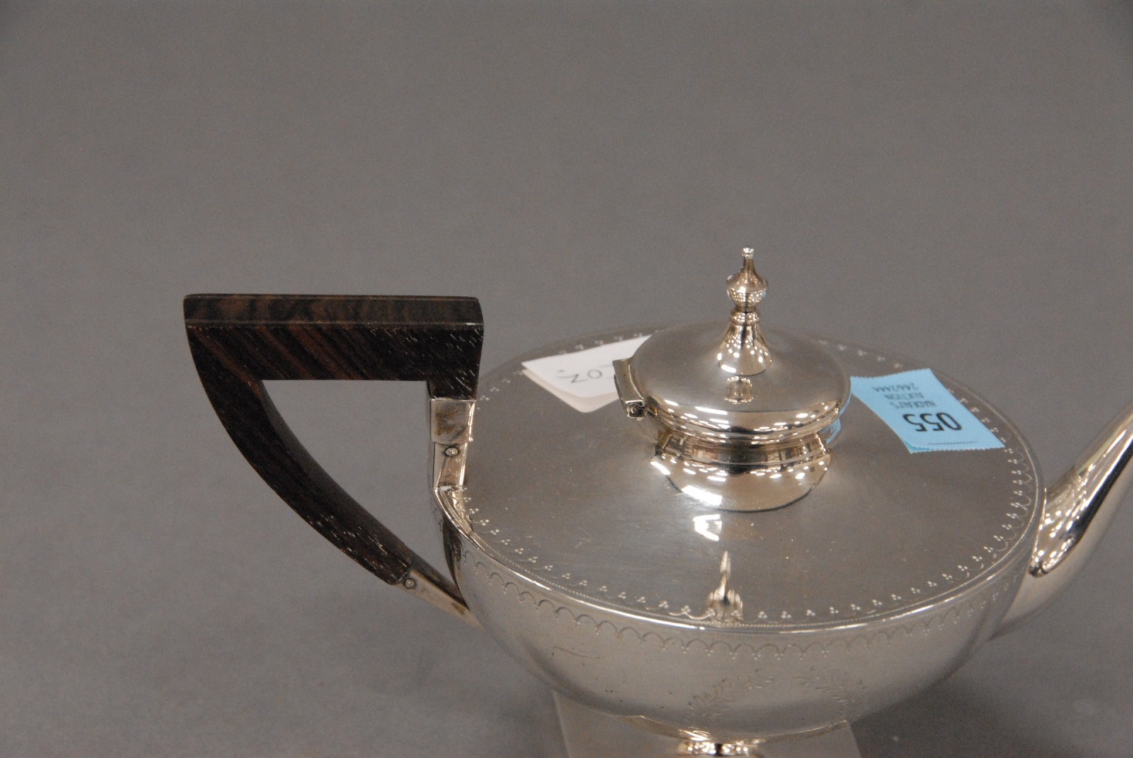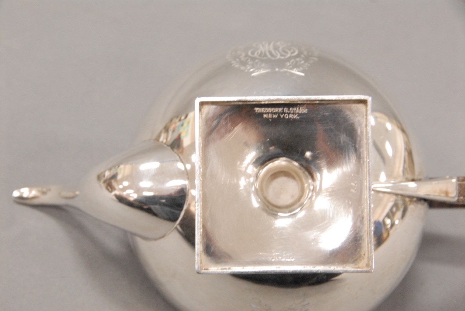 Small sterling silver teapot with wooden handle, marked Theodore Starr