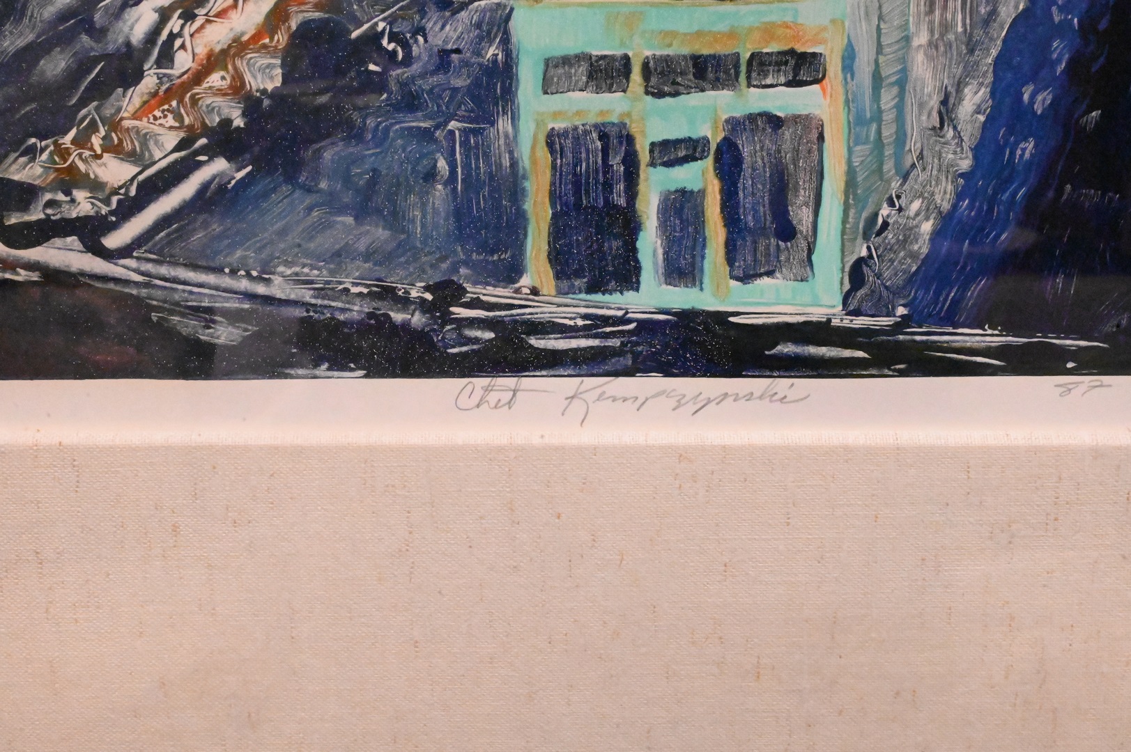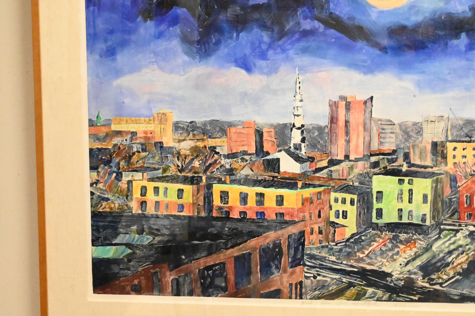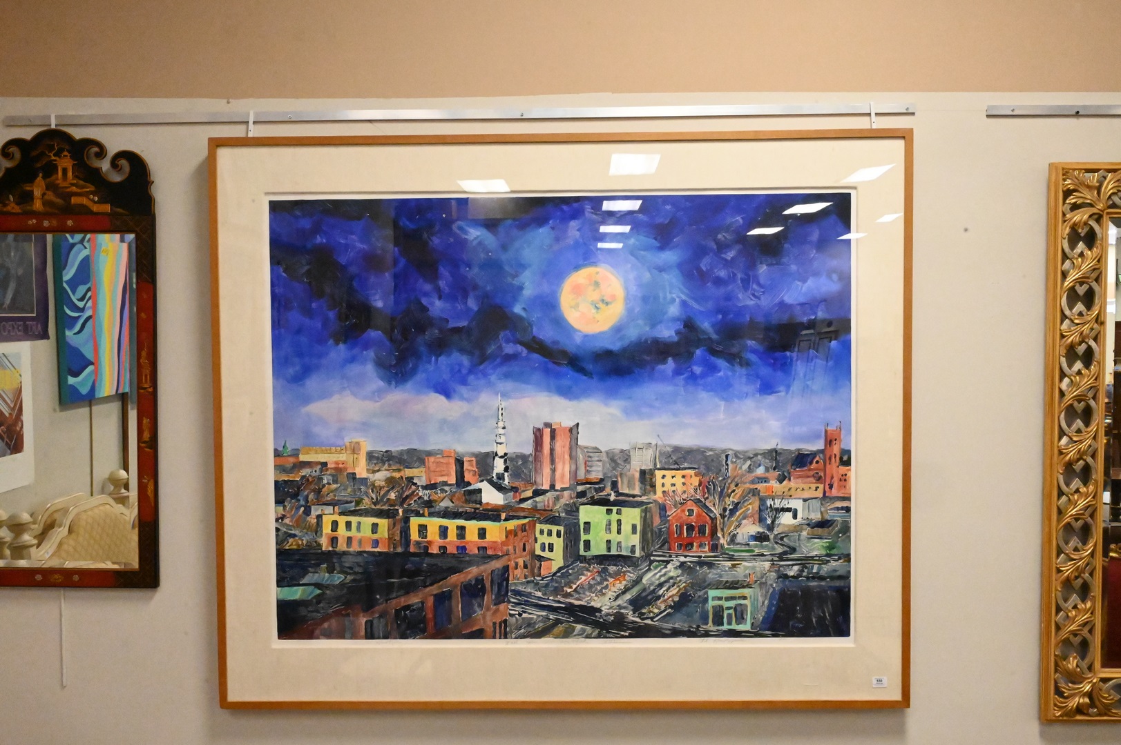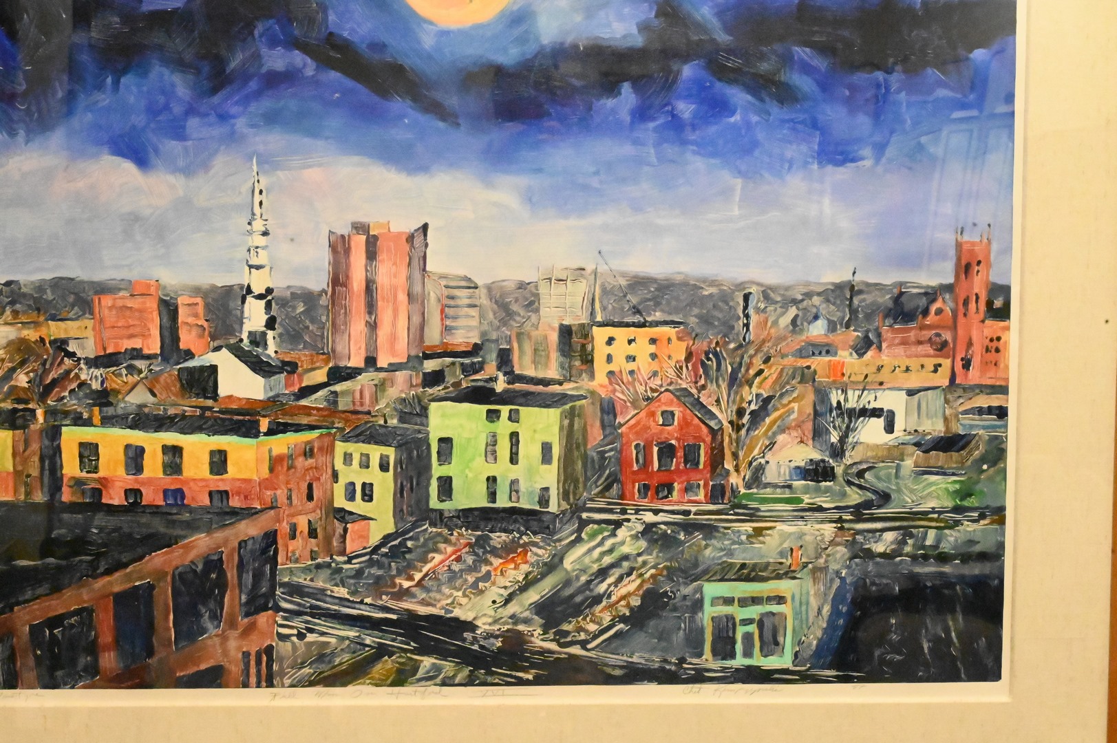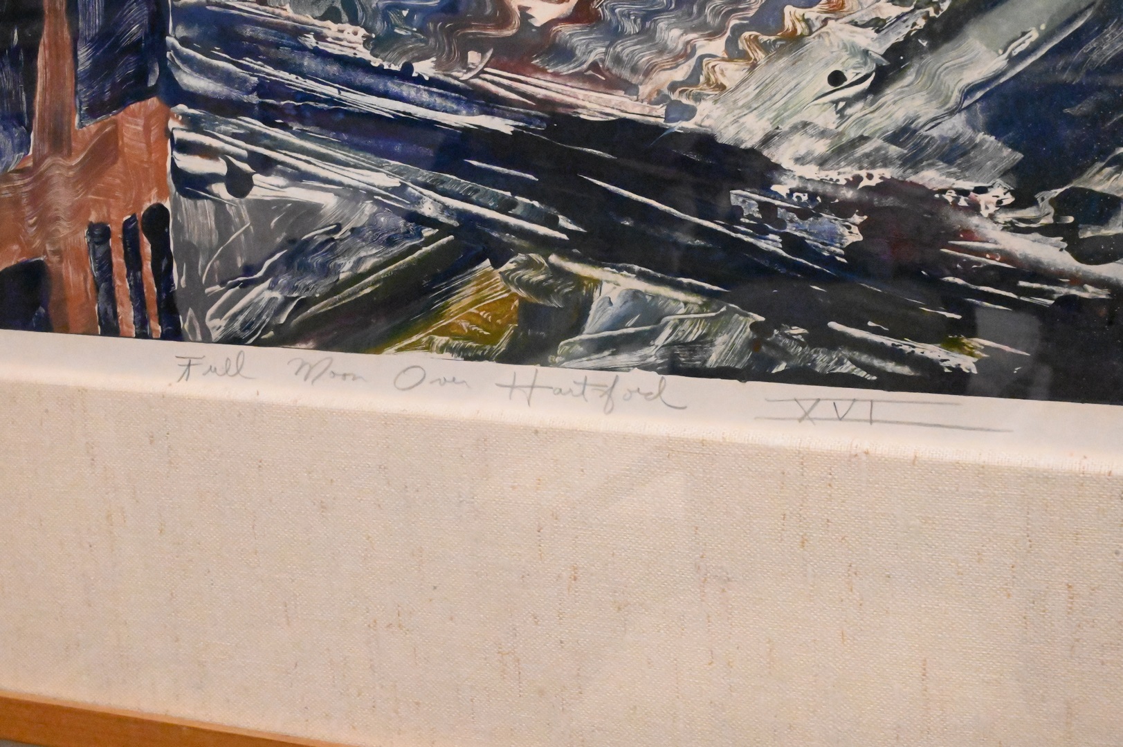 Chet Kempczymski, 20th century, Full Moon over Hartford XVI 1987, monotype, pencil signed, dated and titled, 47″ x 61″.
