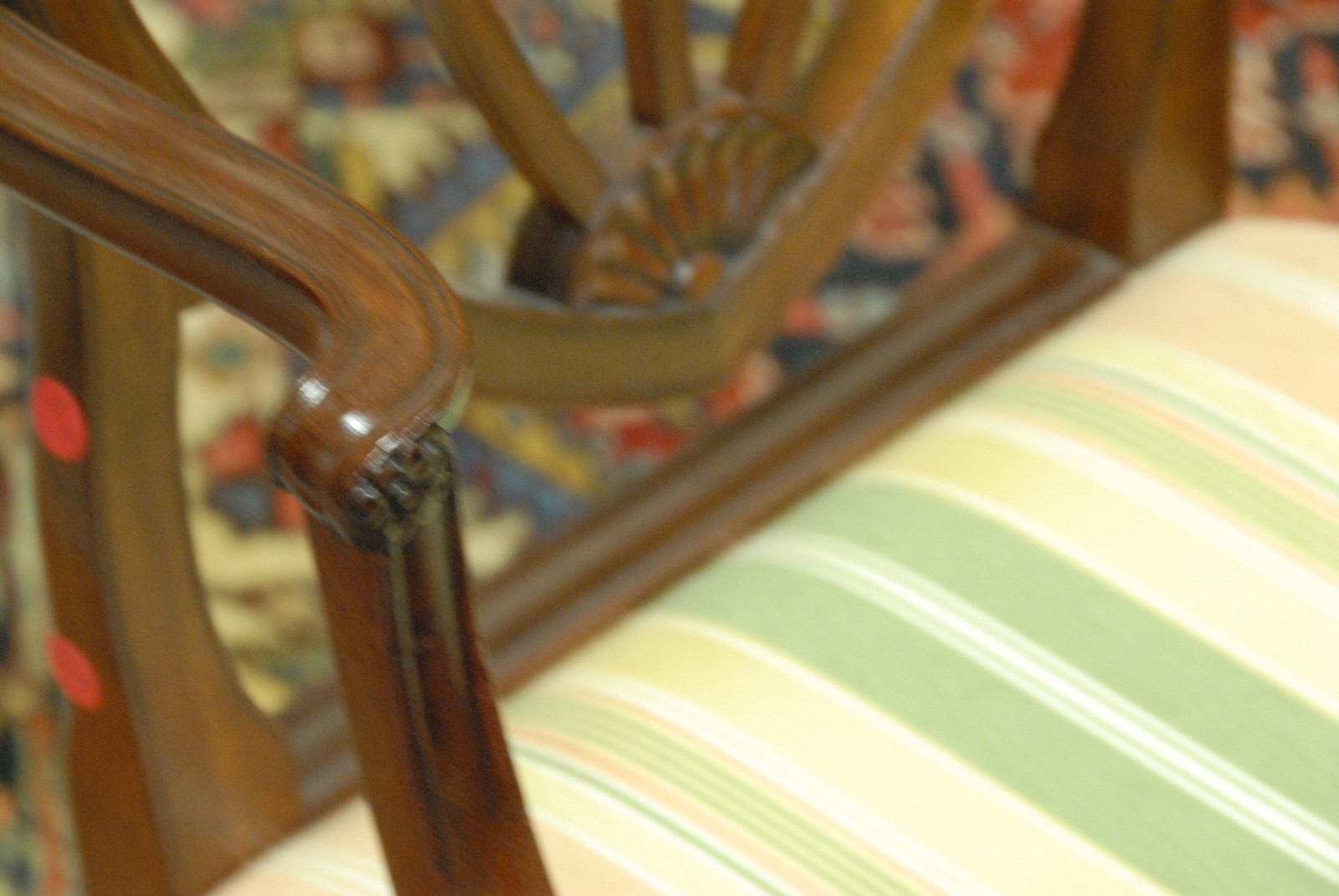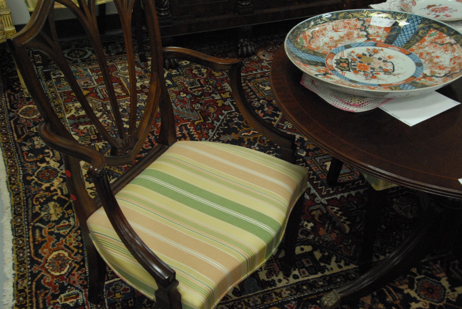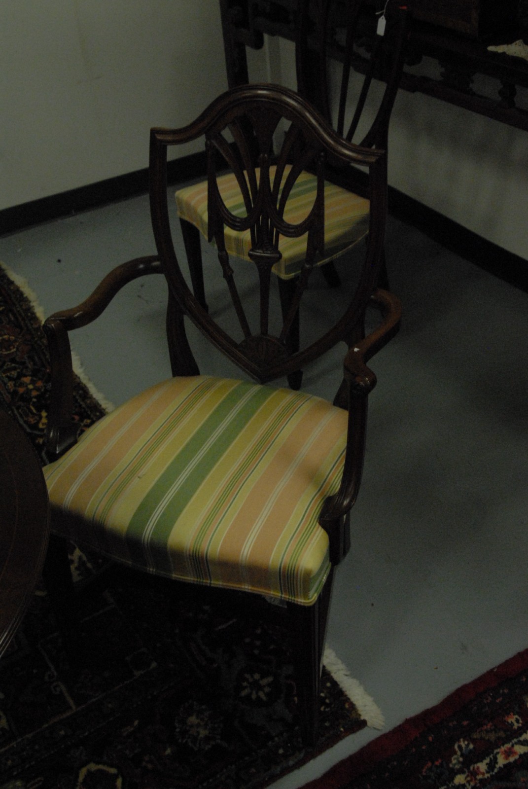 Margolis set of seven shield back dining chairs plus one near matching shield back.
