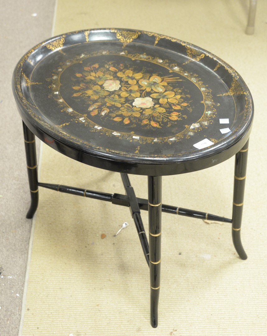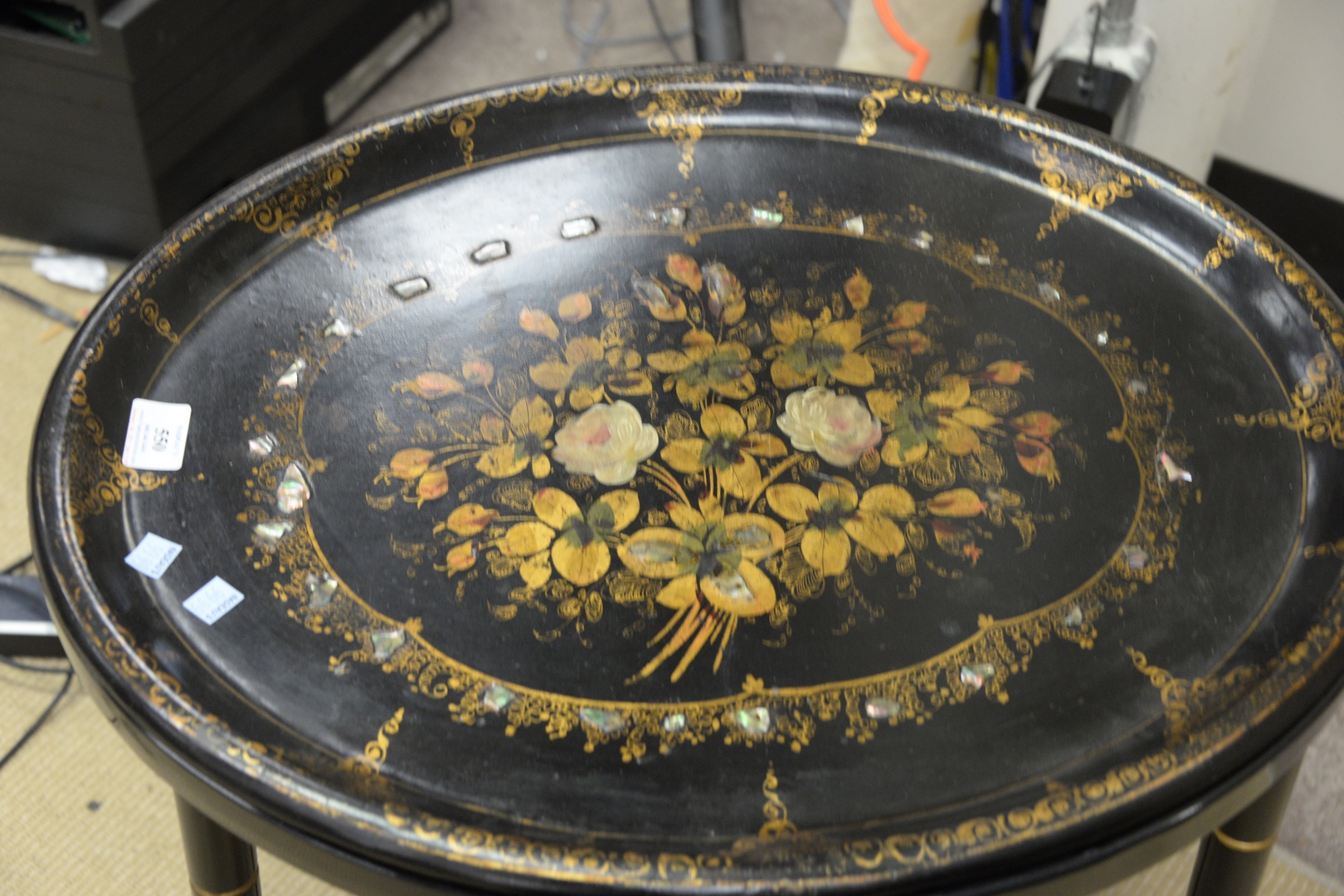 Oval Mother of Pearl Inlaid Tray on base top 19 1/2 x 24