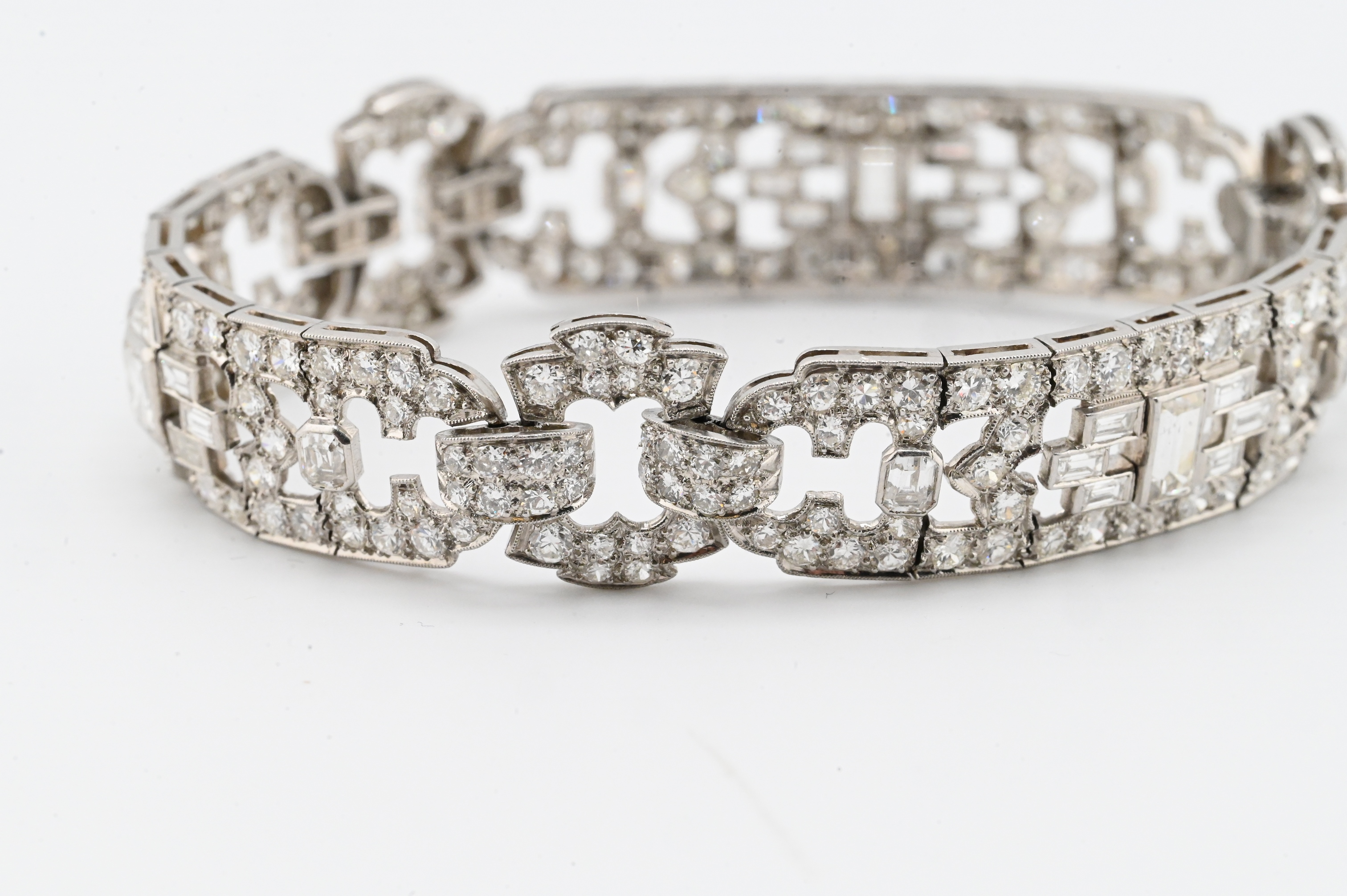 Lot 550: Platinum Art Deco Bracelet of Openwork Geometric Design