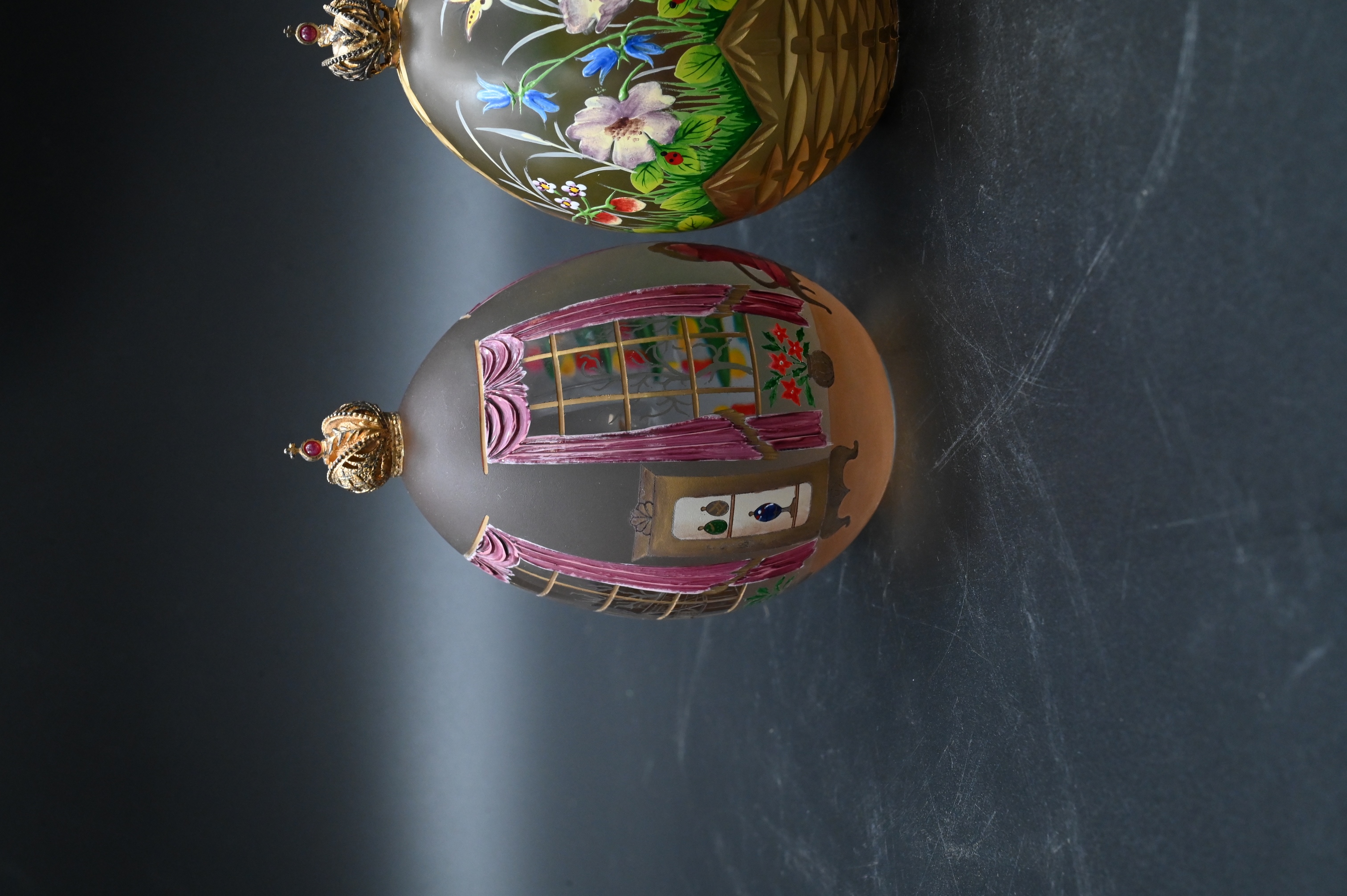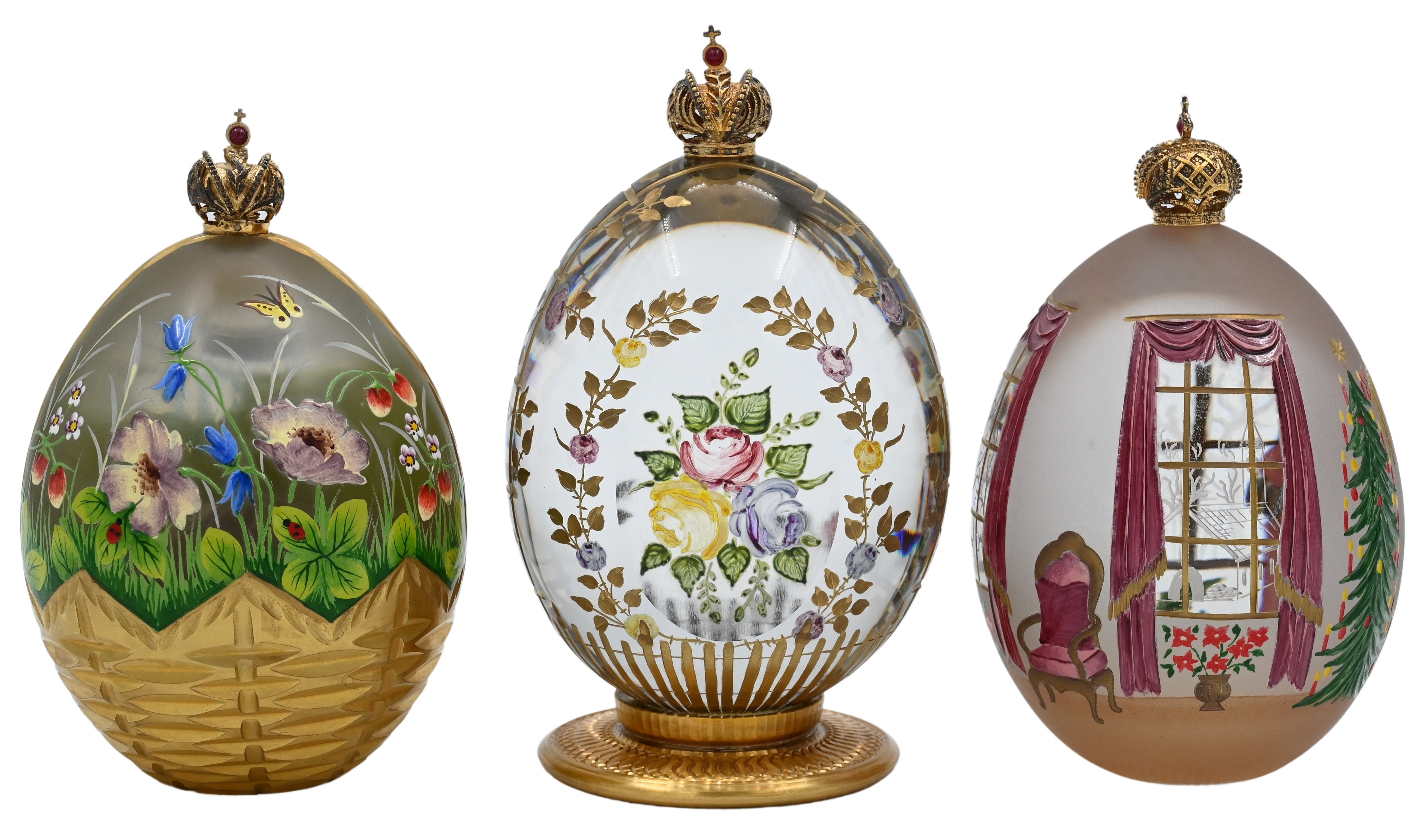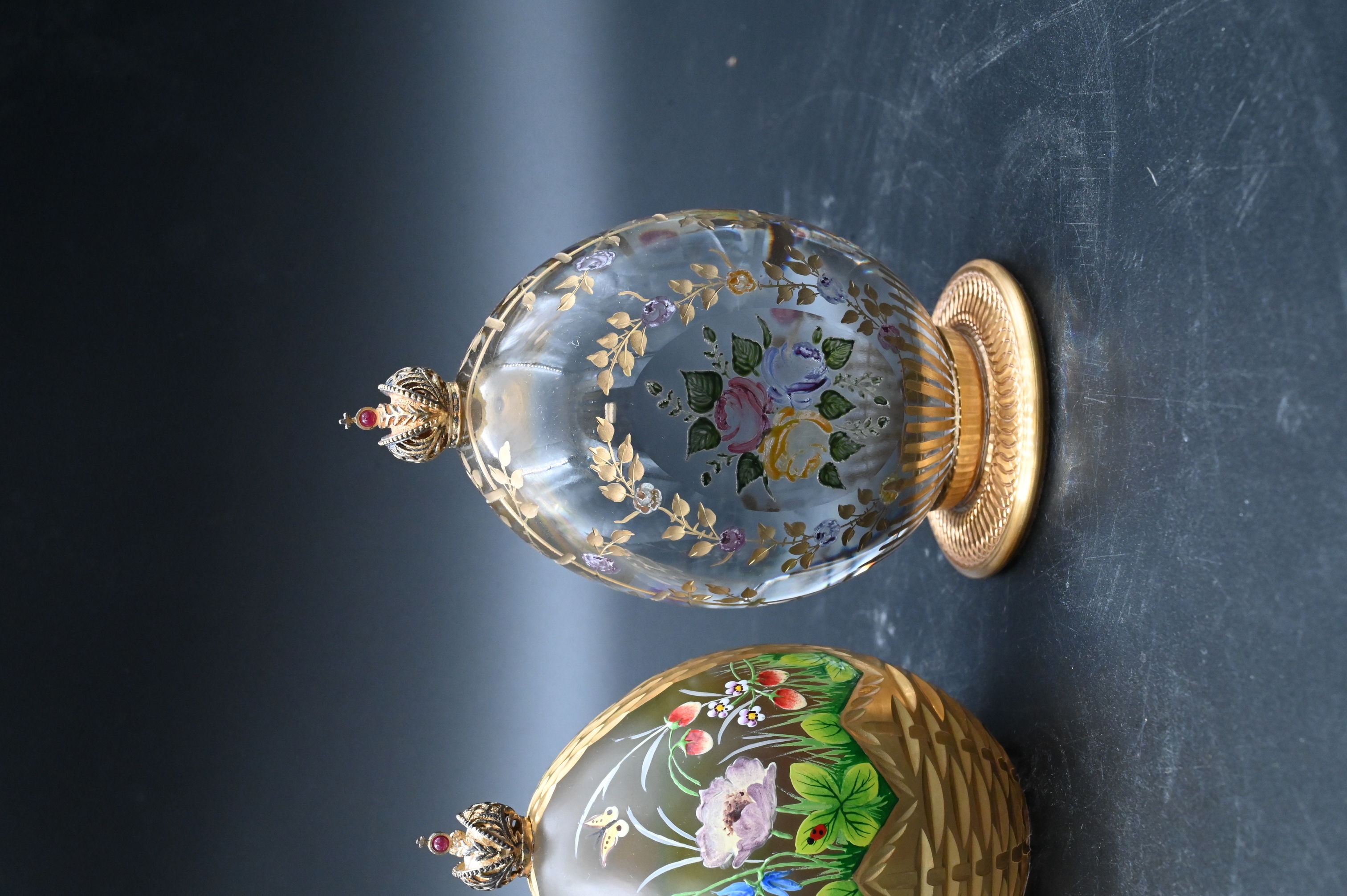 “Rose Garden”, 1994, edition 128/750, painted floral crystal egg