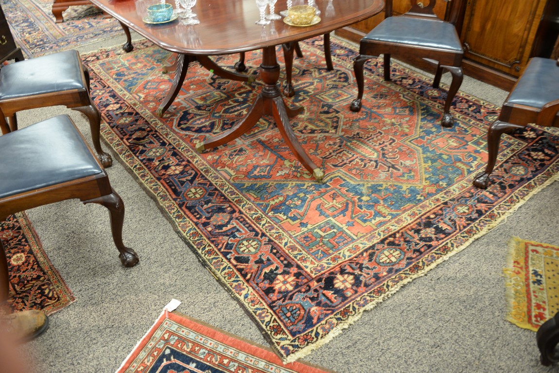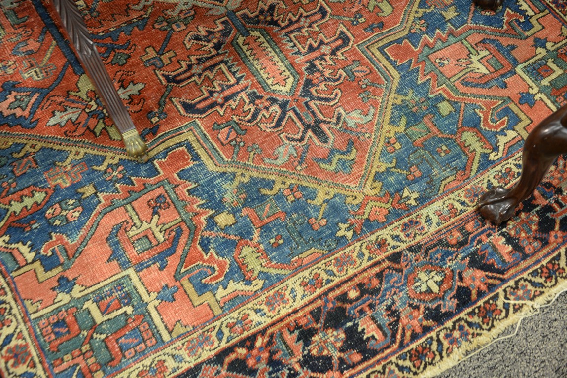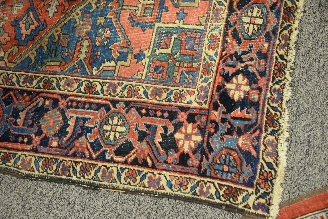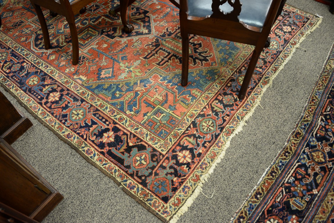 Heriz Oriental area rug, wear. 6′ 9 x 10′ 6