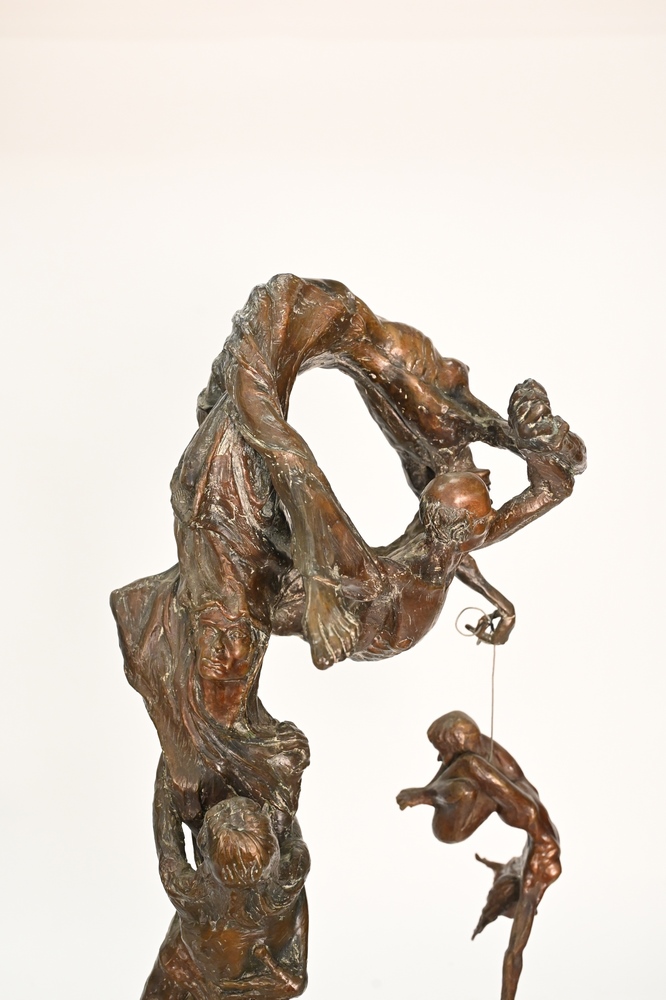 Michael Shacham, Cycle Of Life, bronze sculpture, starting with the agony of childbearing, leading to birth and childhood, continuing with children at play, gradually growing older in the process, which in itself holds the bud of a new cycle, height 35 inches.