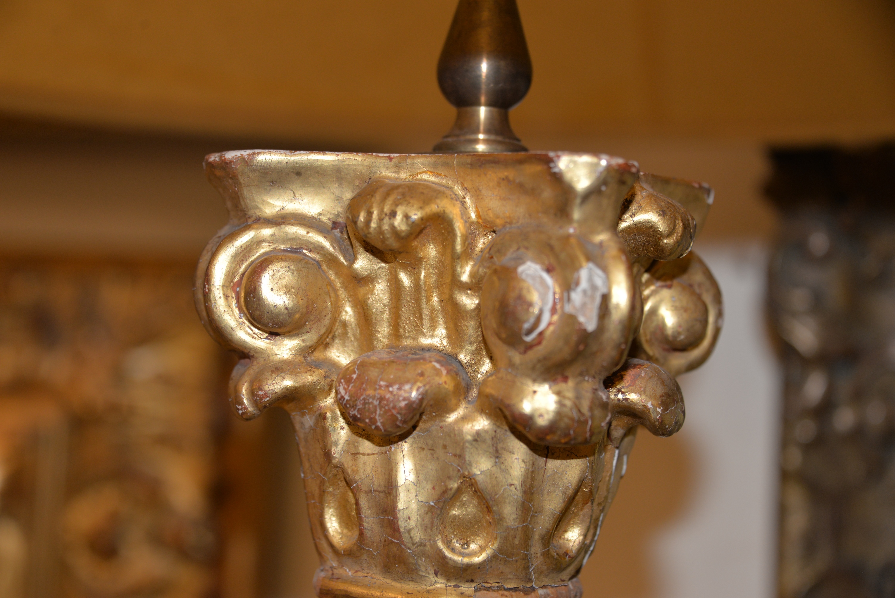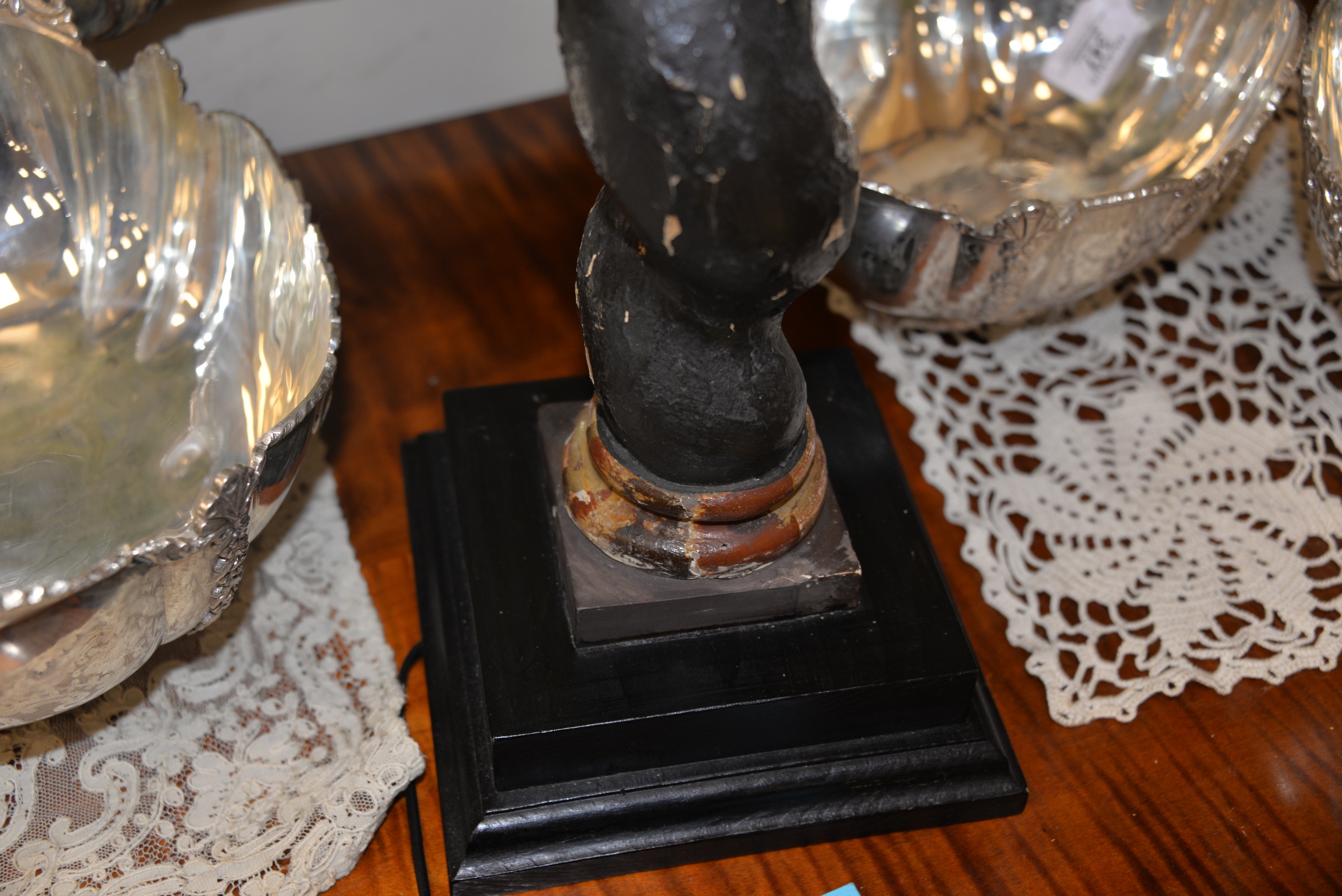 Lot 551: Pair of Carved and Painted Pillar Form Table Lamps