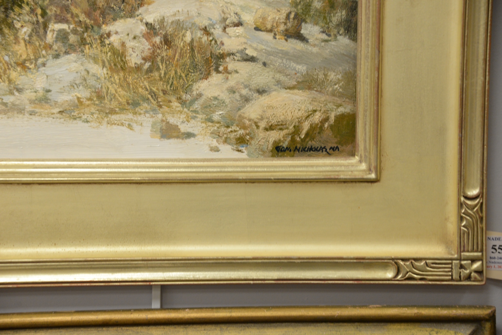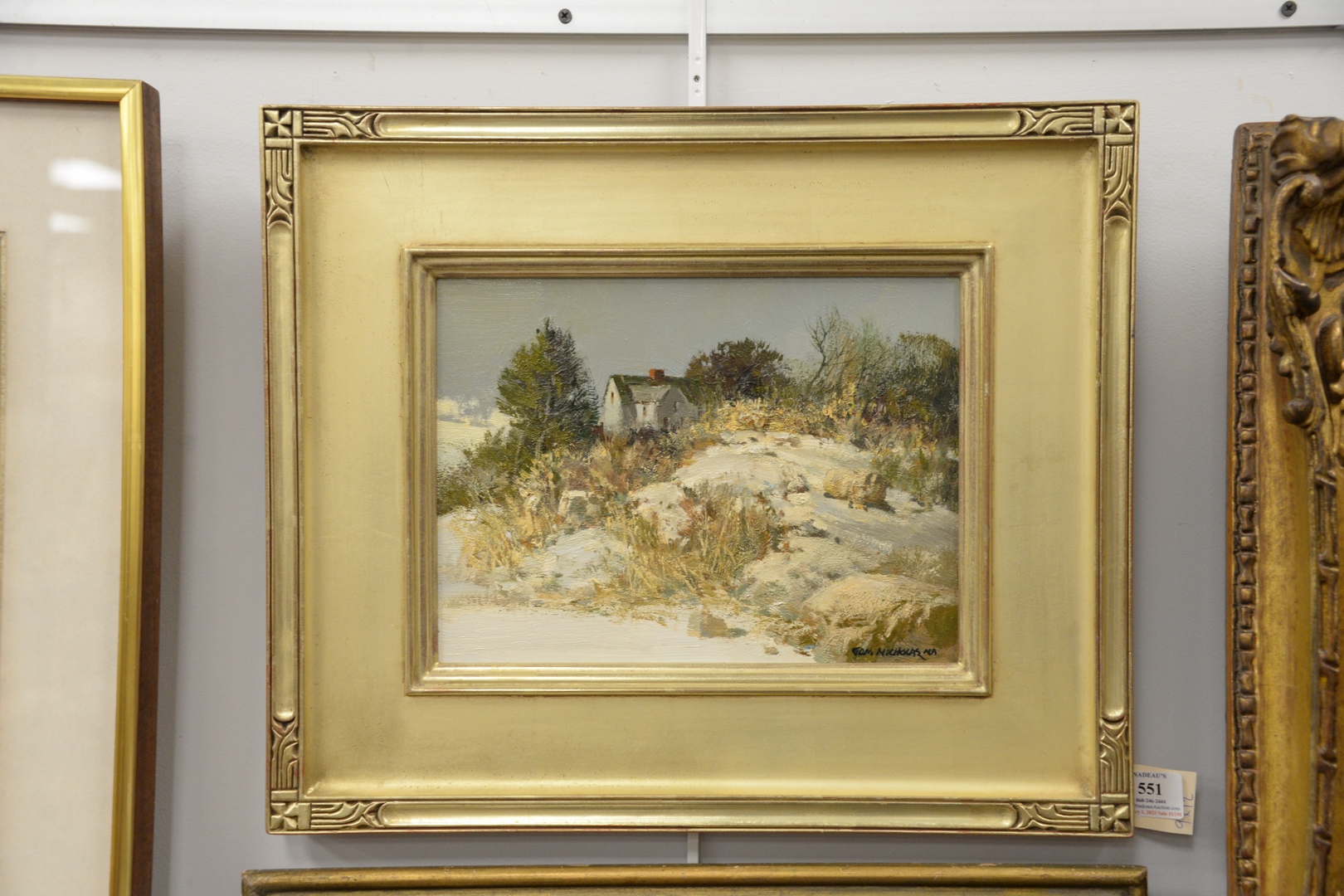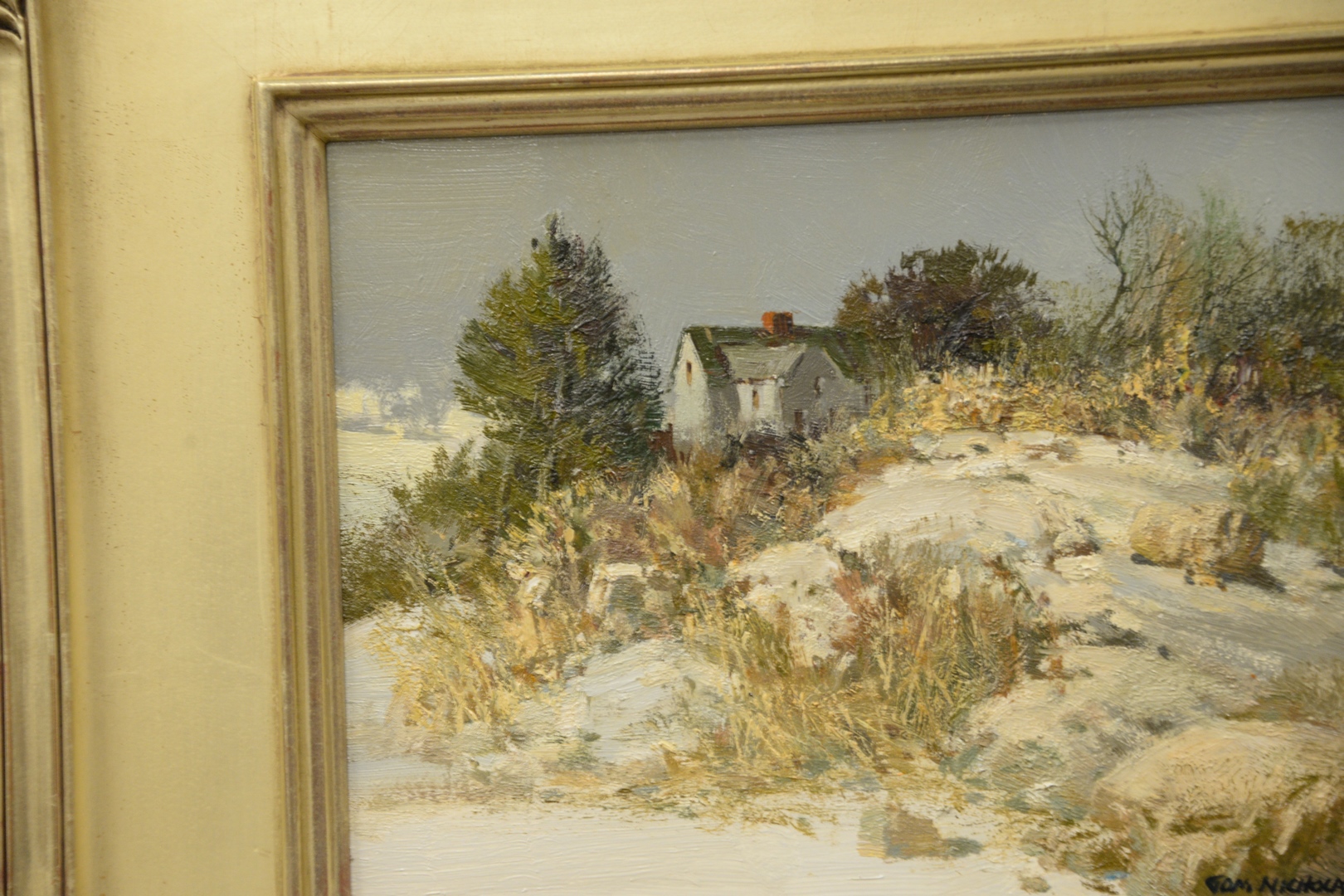 Lot 551: Tom Nicholas b. 1934 Residence Wingaersheek Beach oil on board signed lower right Tom Nicholas 9 x 12