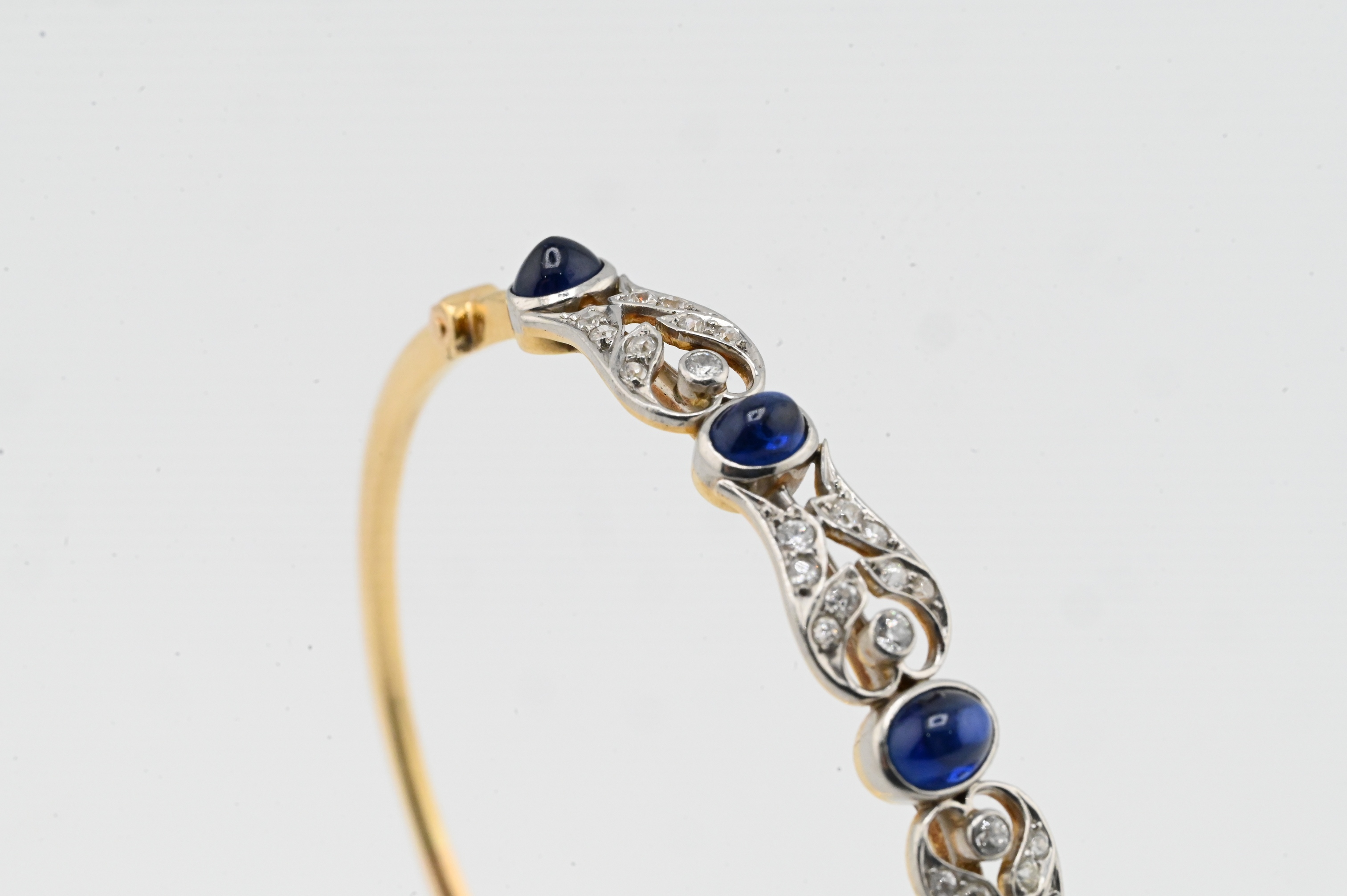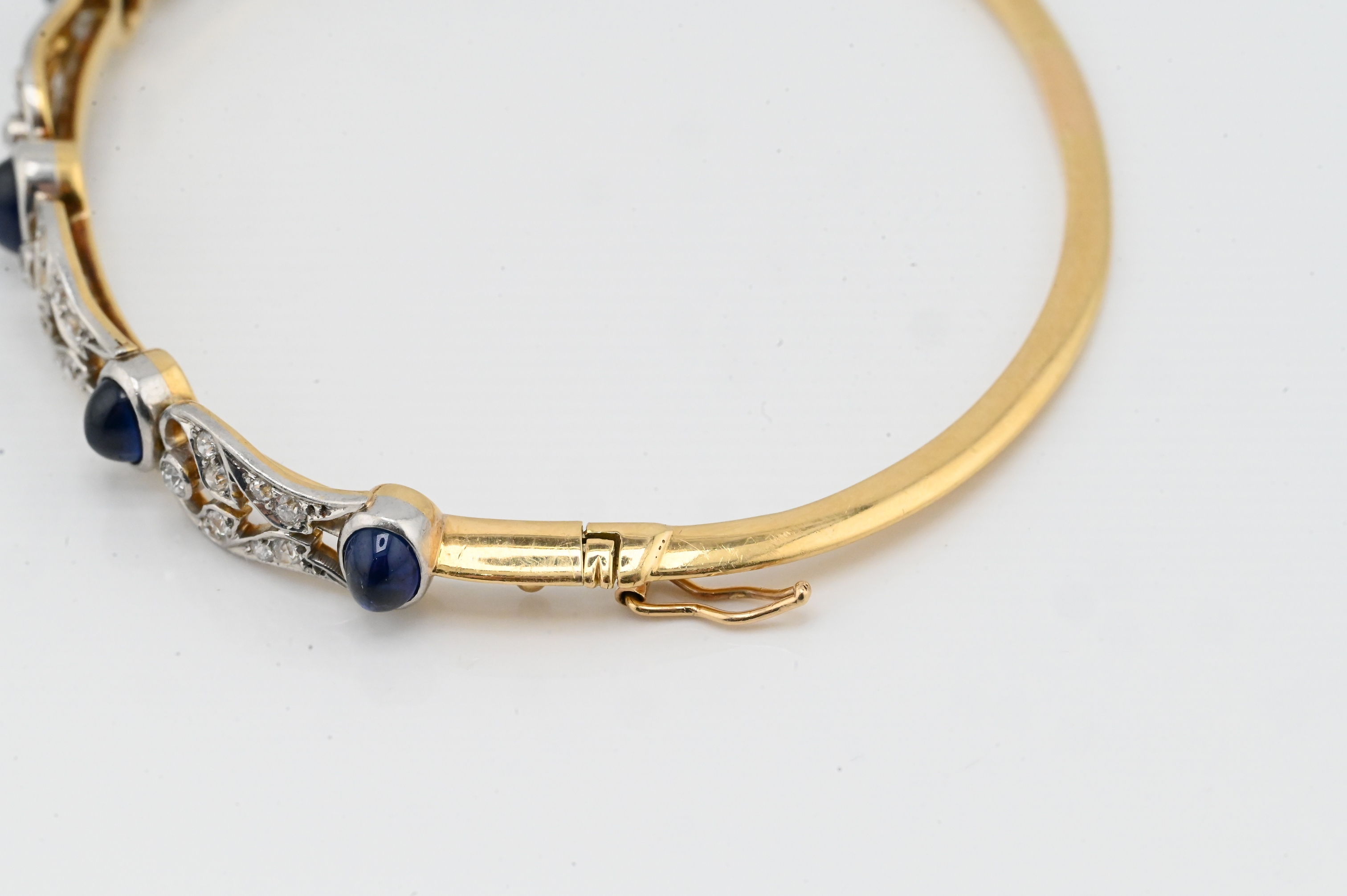 Lot 552: 14K Yellow Gold, Sapphire, and Diamond Bangle Bracelet