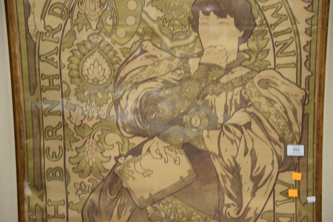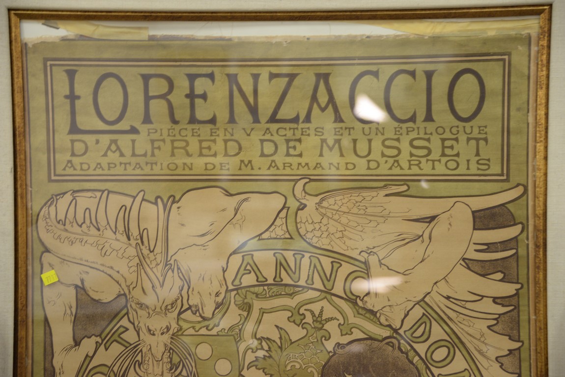 Lot 552: Alphonse Mucha Czechoslovakian 1860-1939 81 x 30 Two piece lithograph backed on lined paper Lorenzaccio piece en v actes…