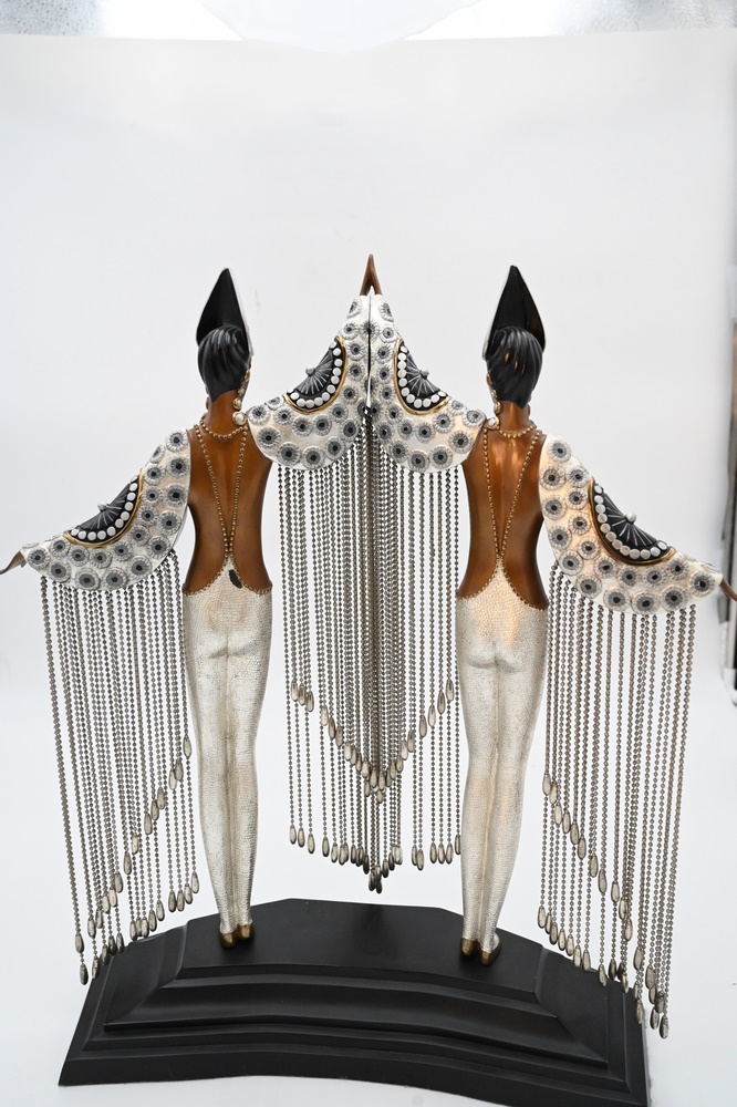 Lot 552: Erte (1892 – 1990), Les Bijoux de Perles, bronze sculpture of two women, signed on base Erte, height 18 1/4 inches, length 16 inches.