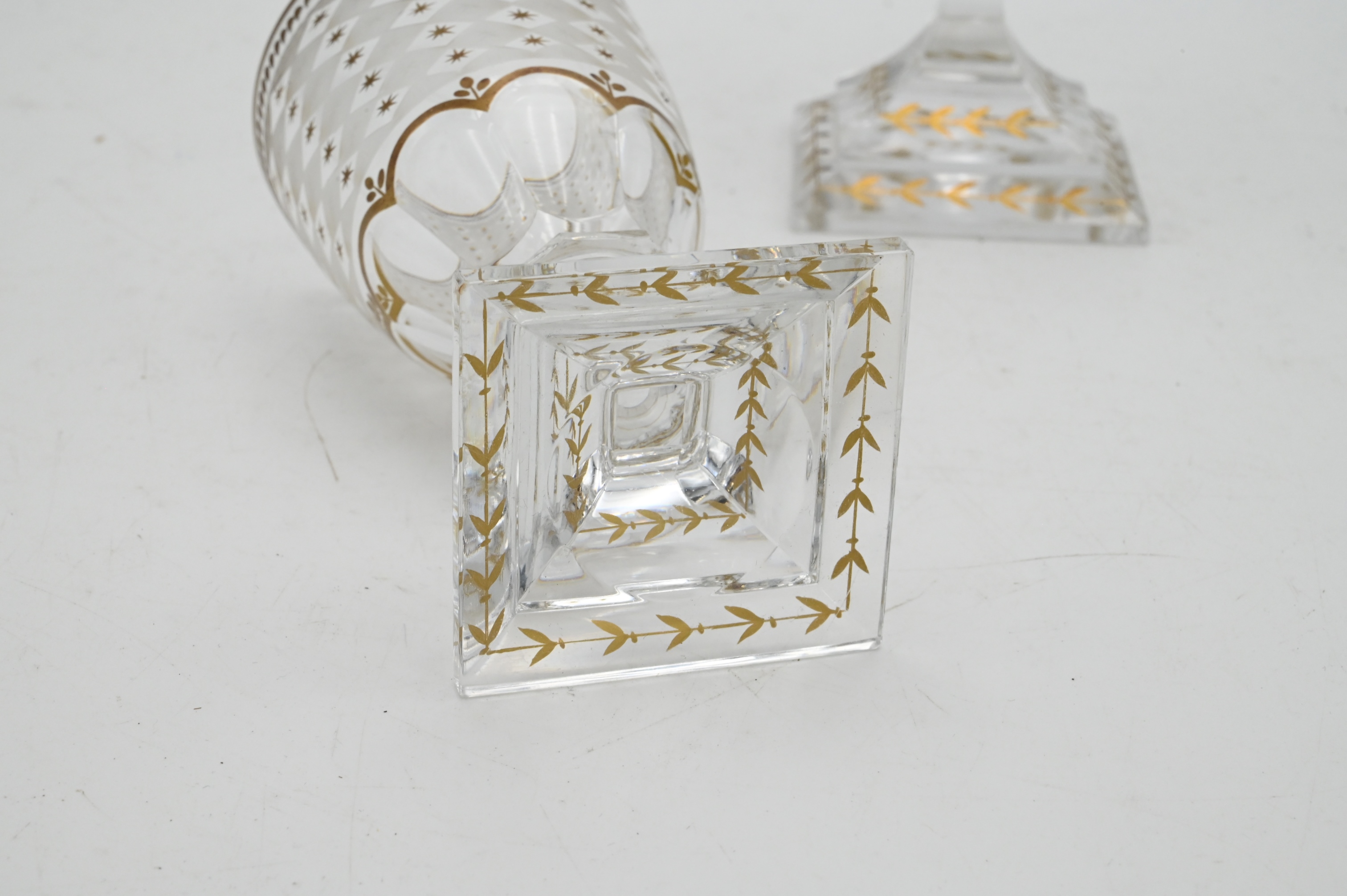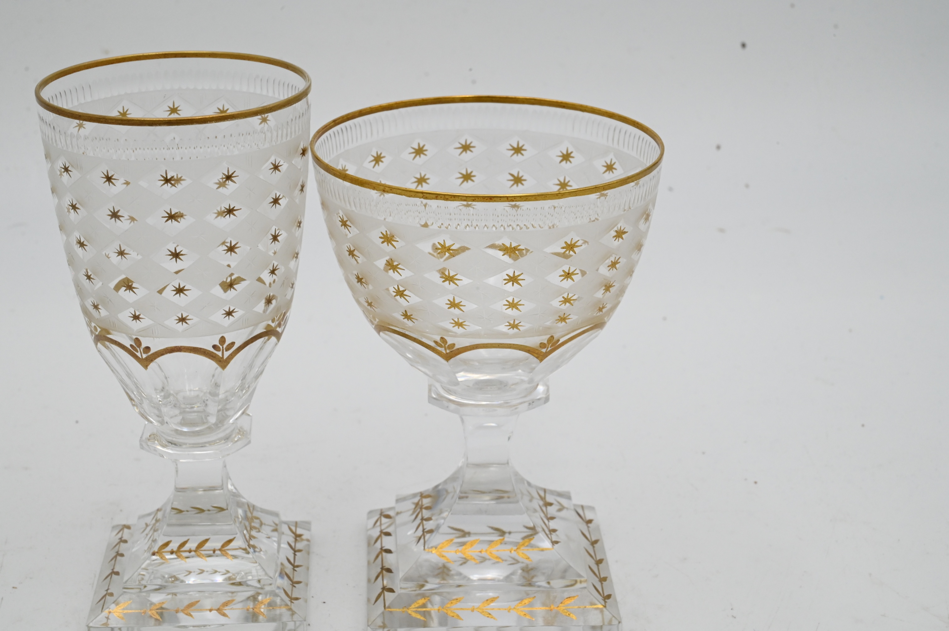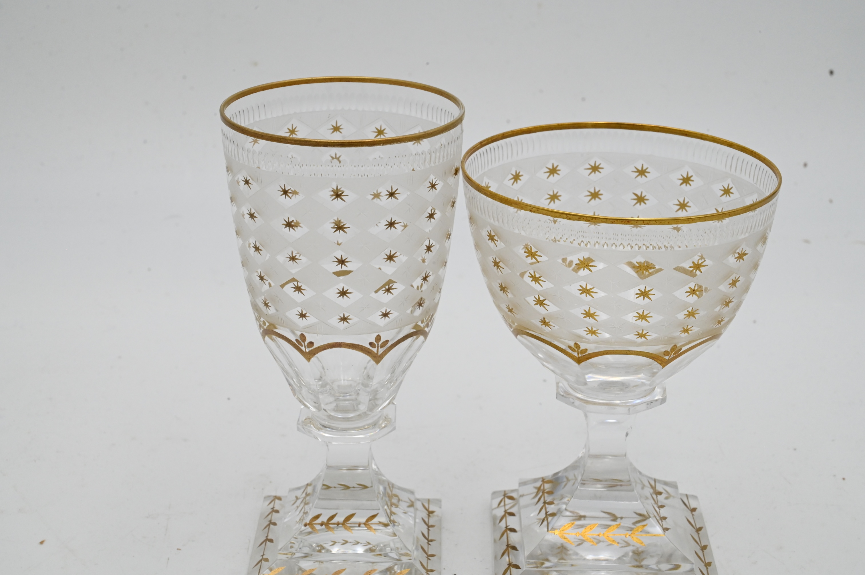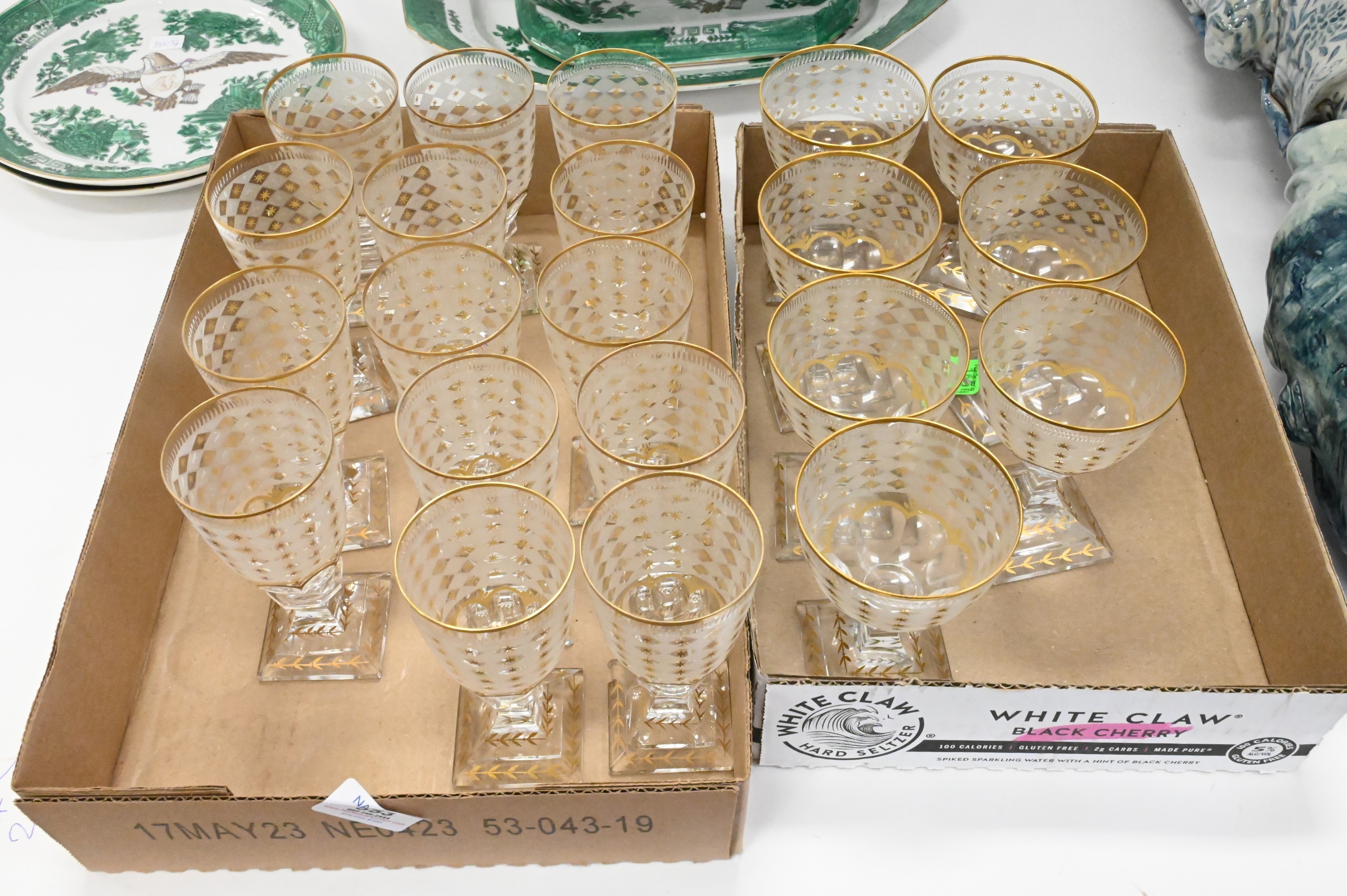 23 Piece Crystal Kosta Boda Gold Gilt Star Glasses, to include 8 water goblets, height 4 3/4 inches, and 15 sherry glasses, height 5 1/4 inches.