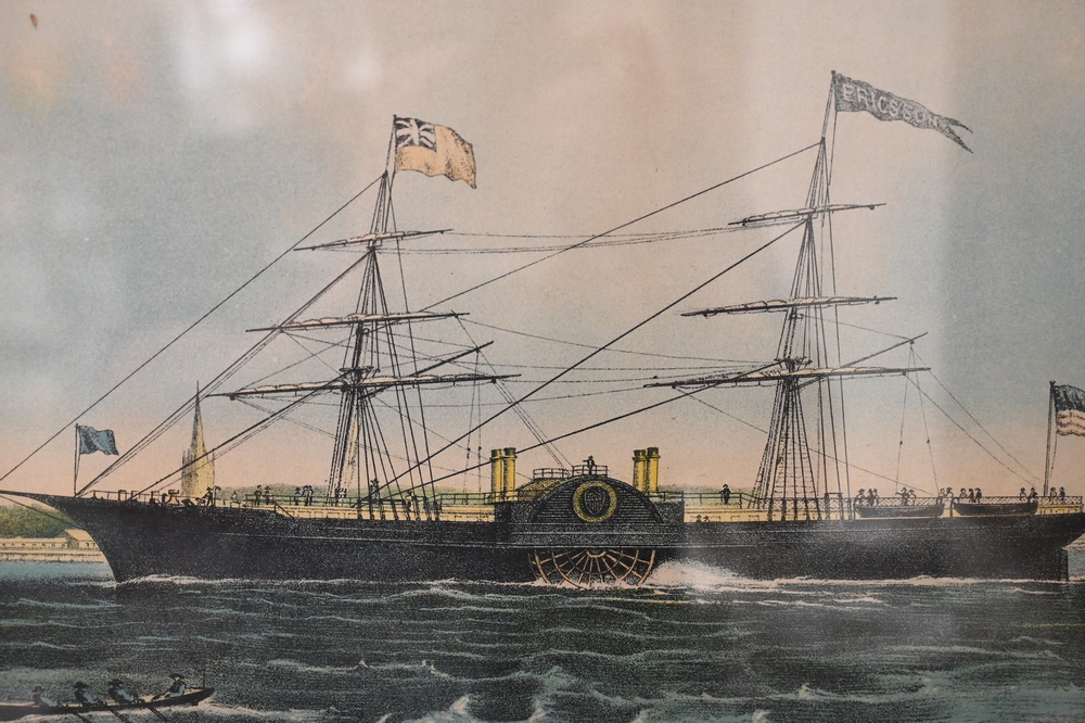 Sarony and Major, “Caloric Ship Ericsson”, American naval ship “Pass the Battery, N.Y.”, sight size 17 1/2 x 23 inches.