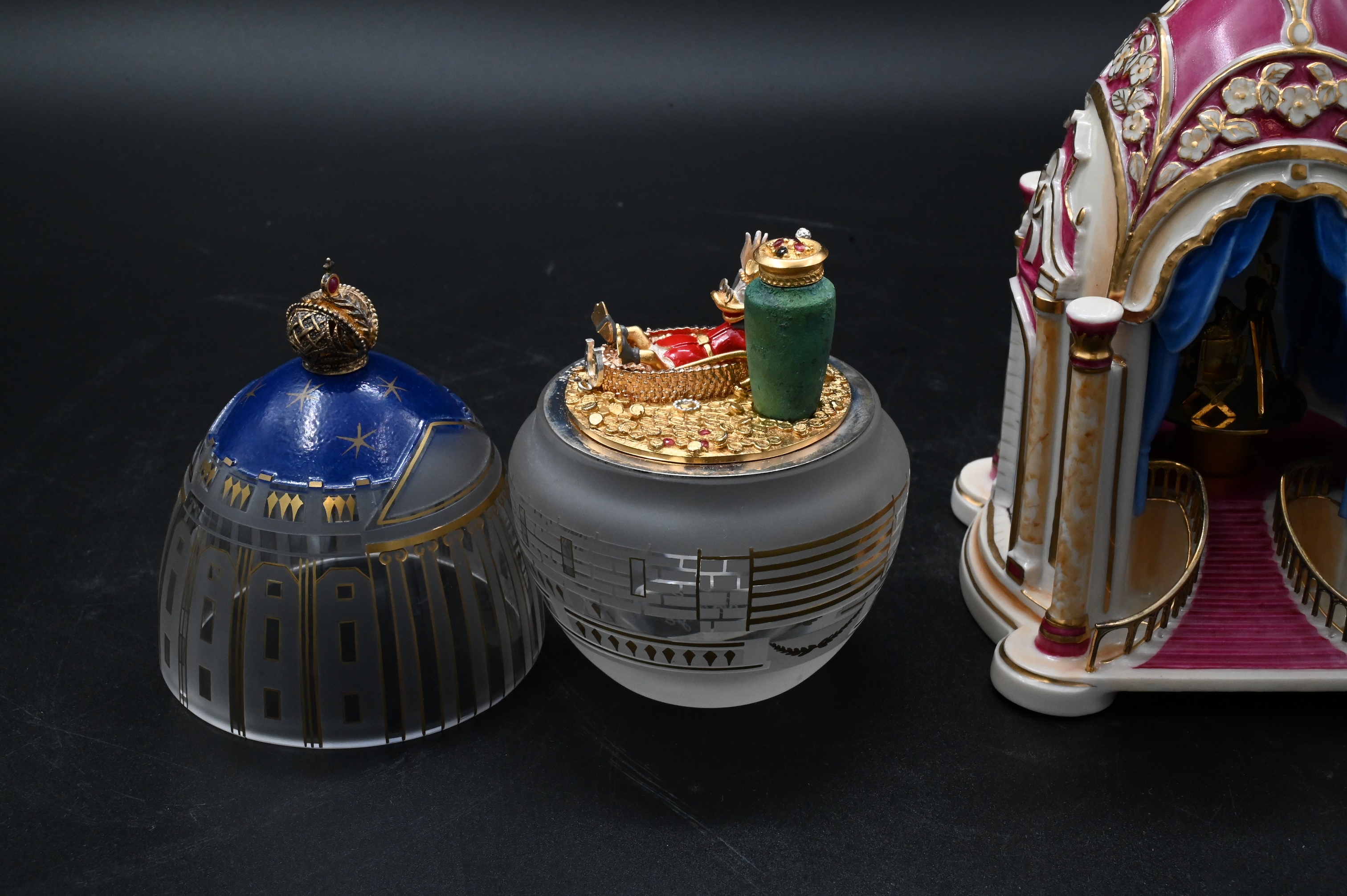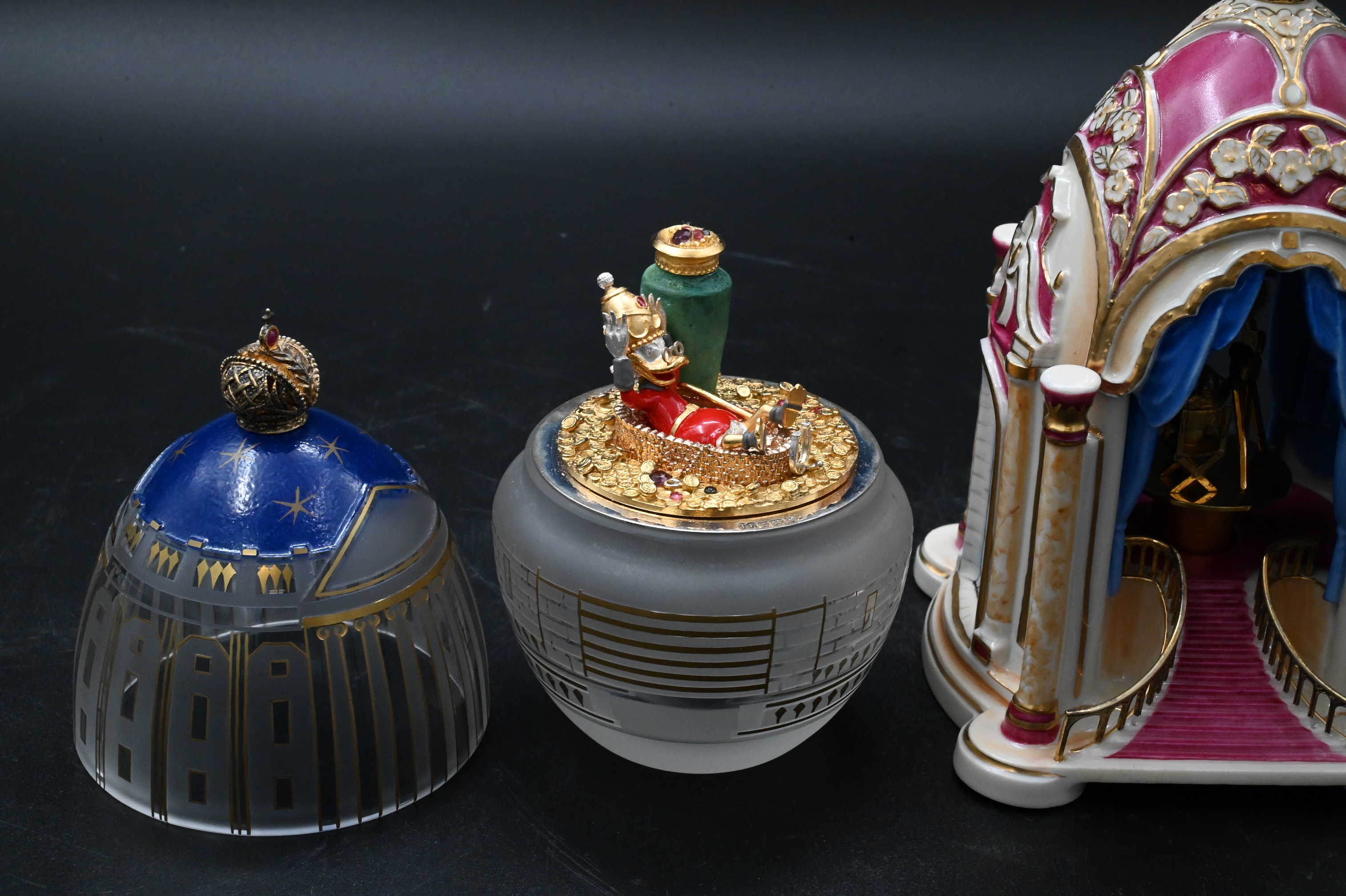 Theo Faberge and Carl Borks “Scrooge McDust Midnight Egg” edition 80/250, 1992, with sterling silver, 24K gold