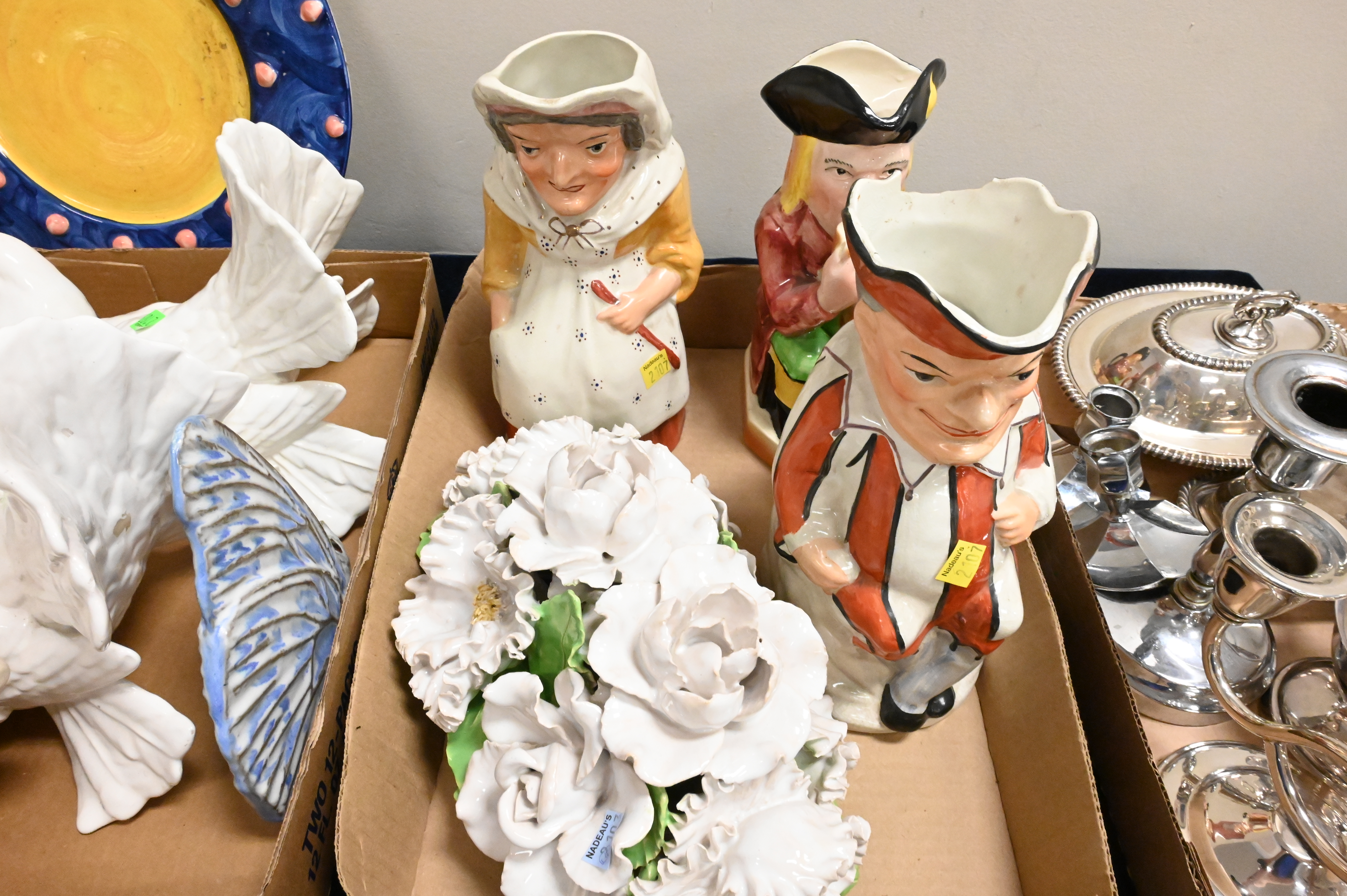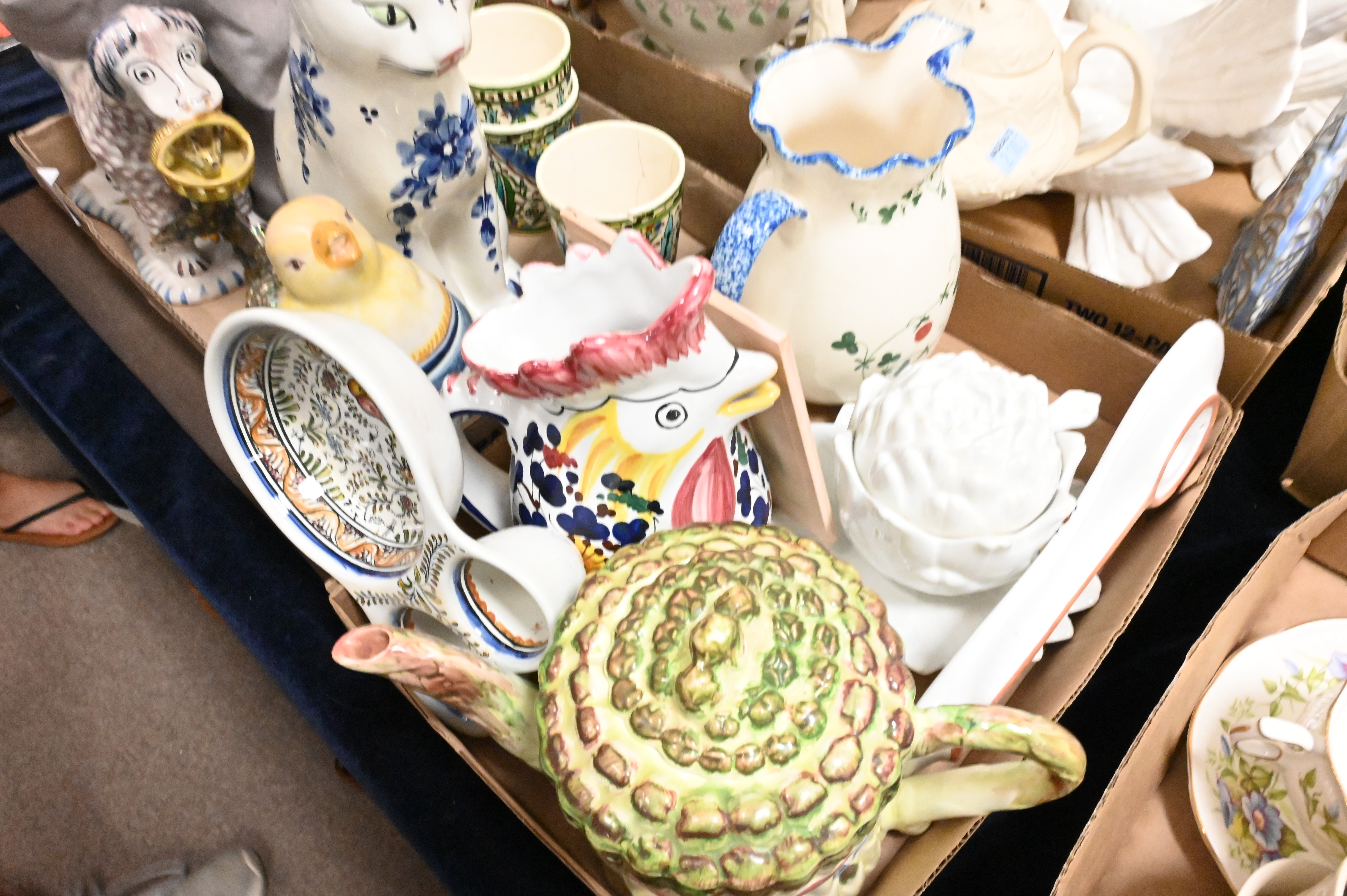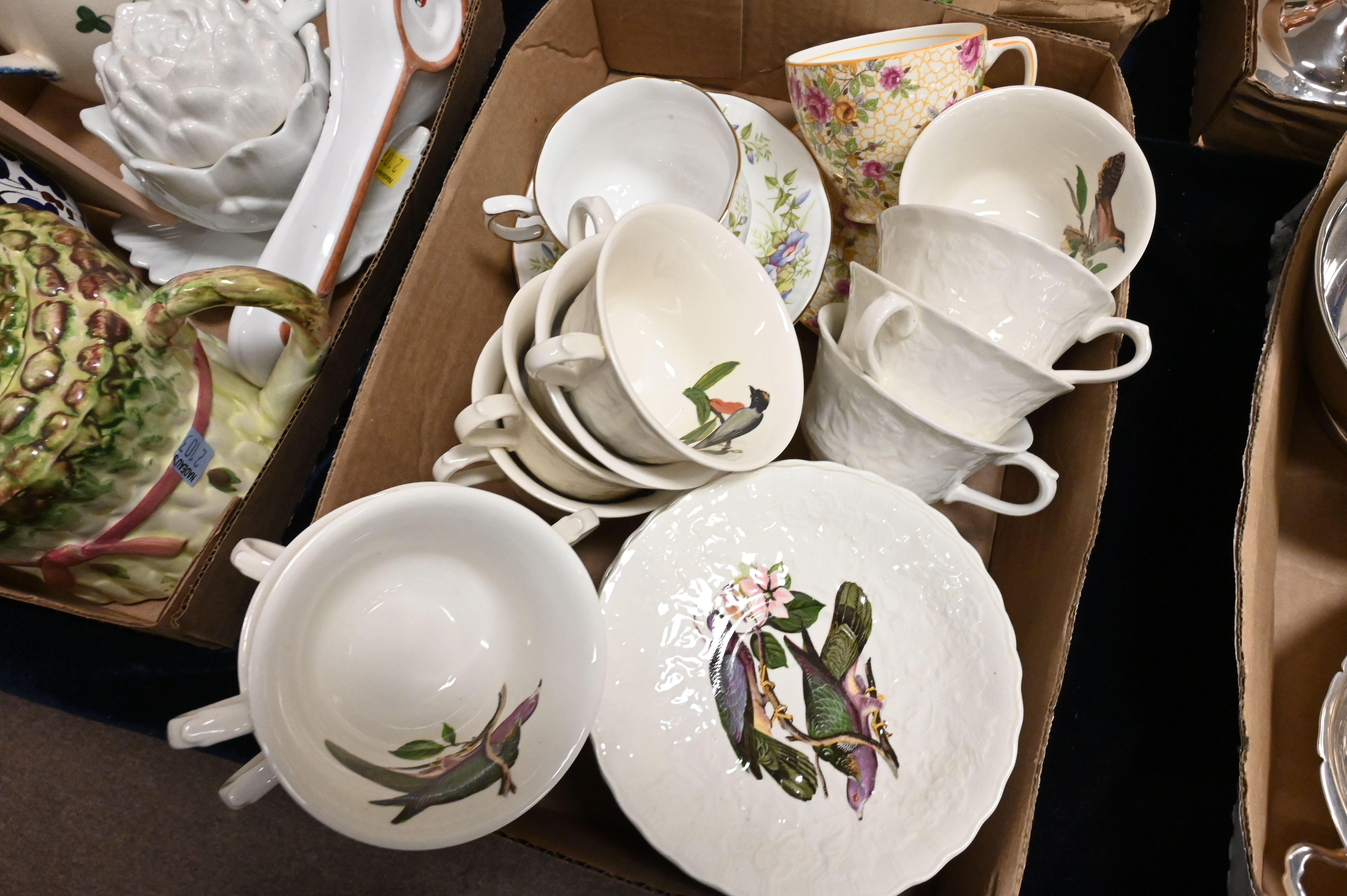 Assorted Group of Plates and Lamps, to include six French oyster plate, five of which are Limoges, four Ed Totten fish plates, twelve Gorham historical society dinner plates, one Richard Bishop Mallard dinner plate, a large ceramic pot, along with two hurricane lamps height of 18 inches, largest diameter 12 inches.