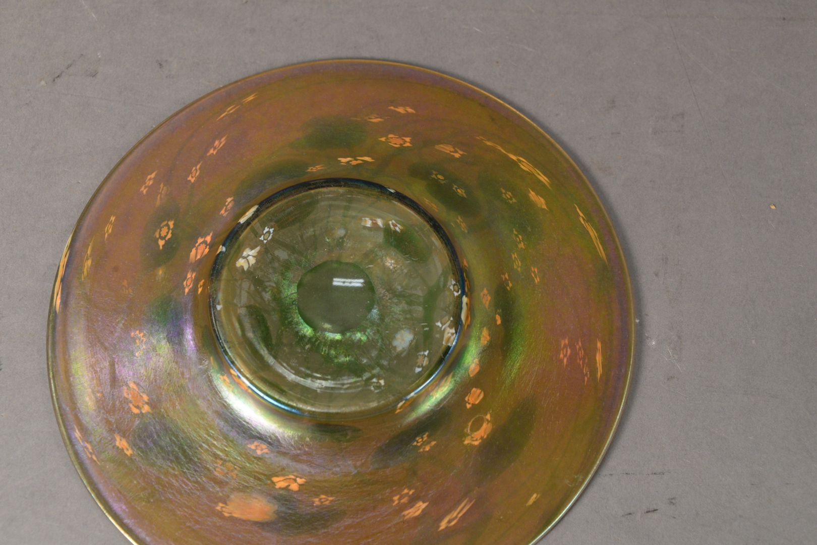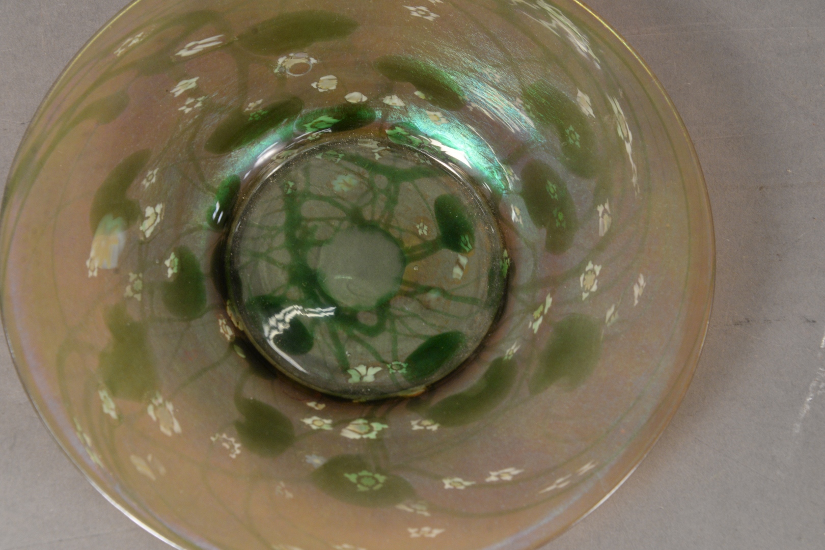 Lot 555: Attributed to Tiffany Studios Favrile Millefiori Glass Plate, unmarked, diameter 8 inches.