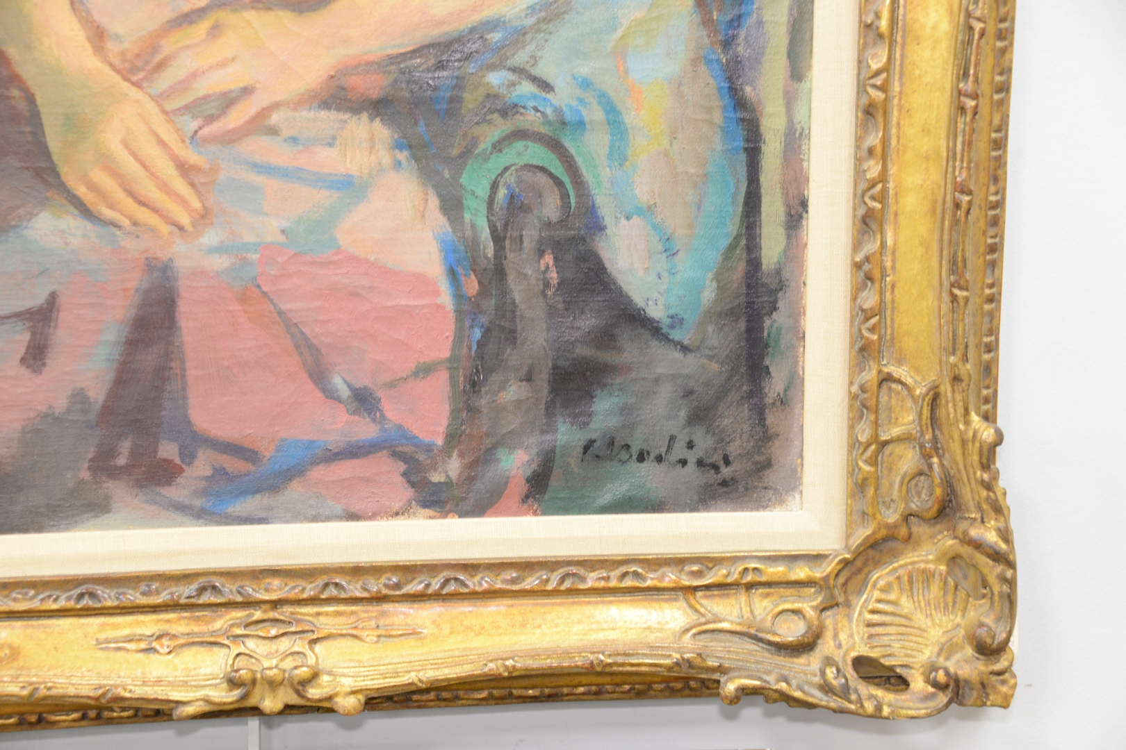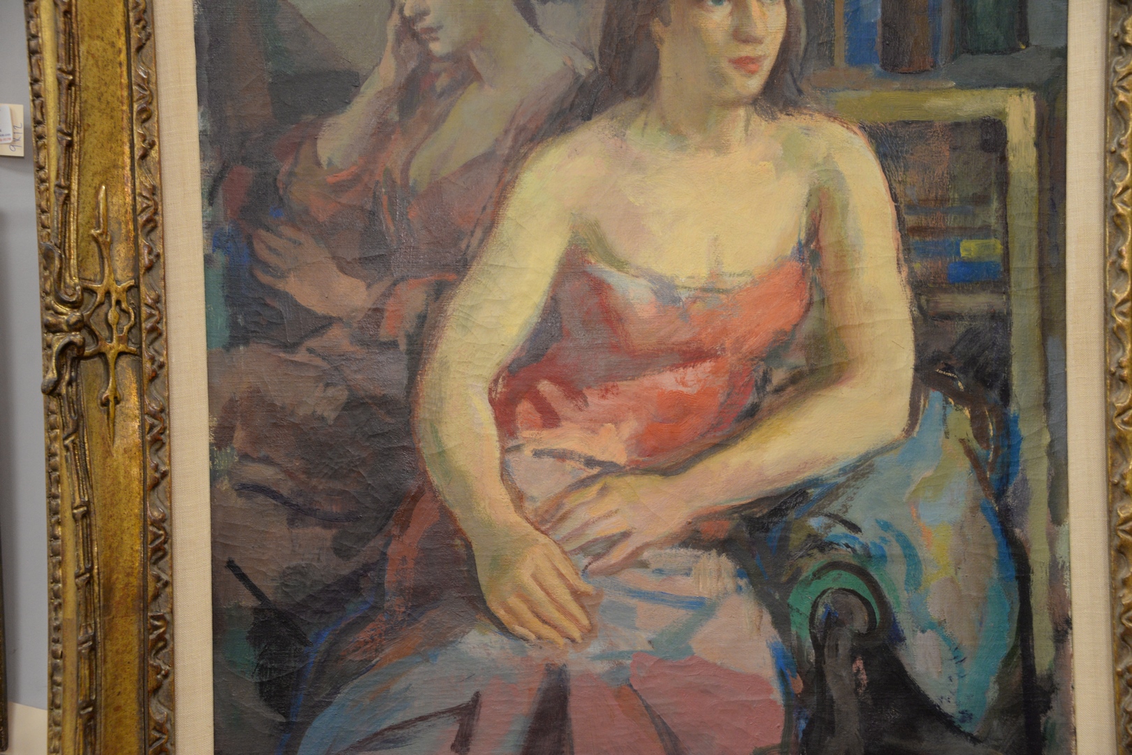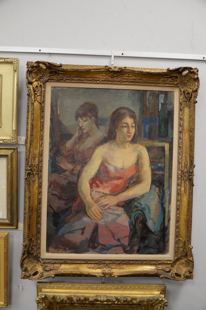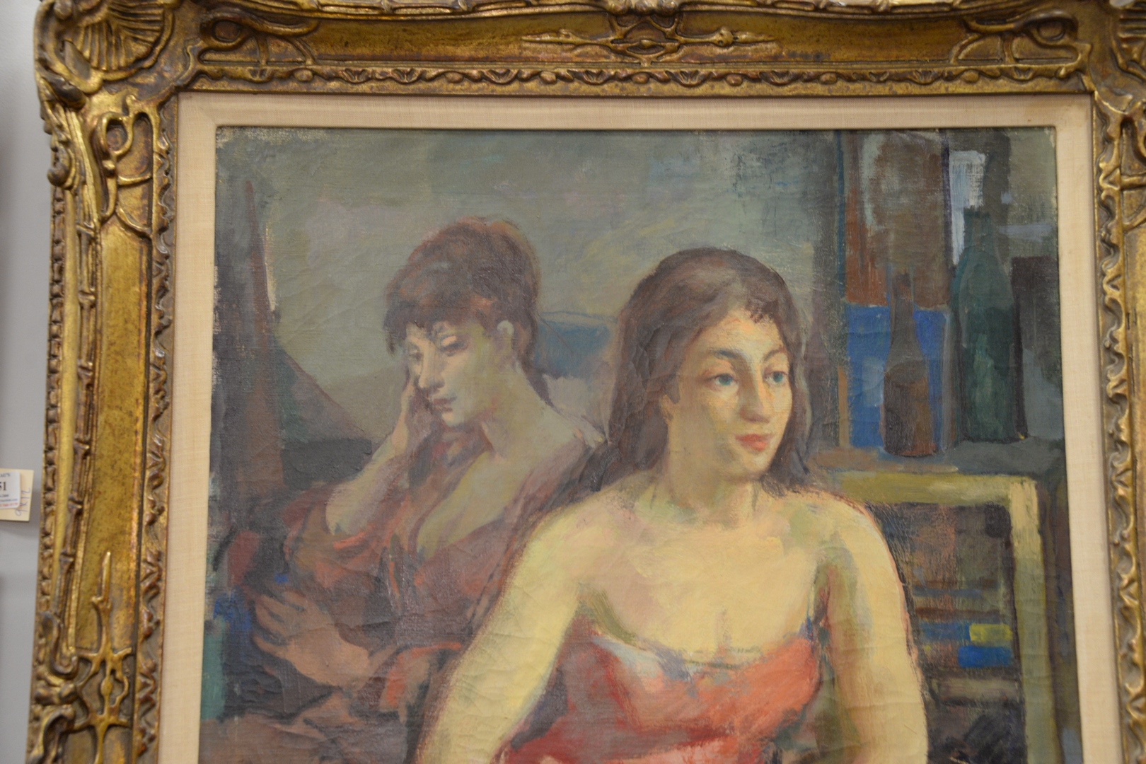 Lot 555: Contardo Barbieri Italian, 1900 – 1966 Depicts Two Seated Women in Red oil on canvas signed lower right and verso C. Barbieri 31 1…