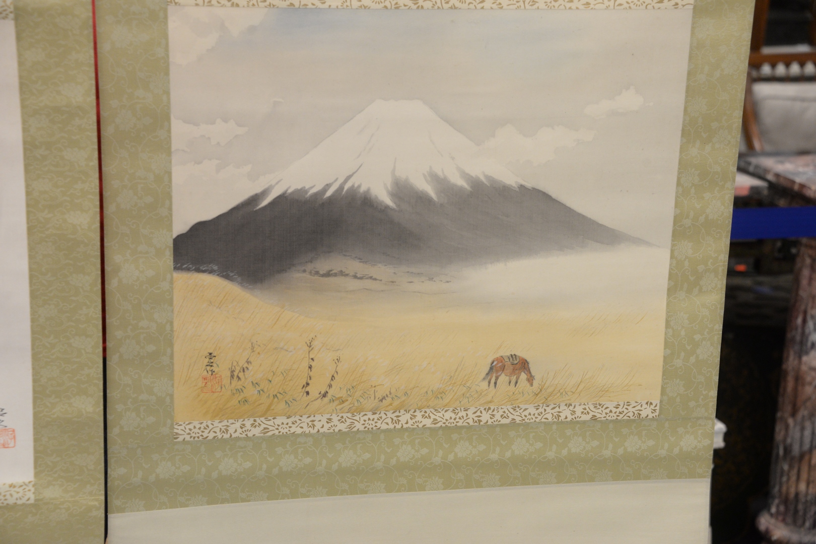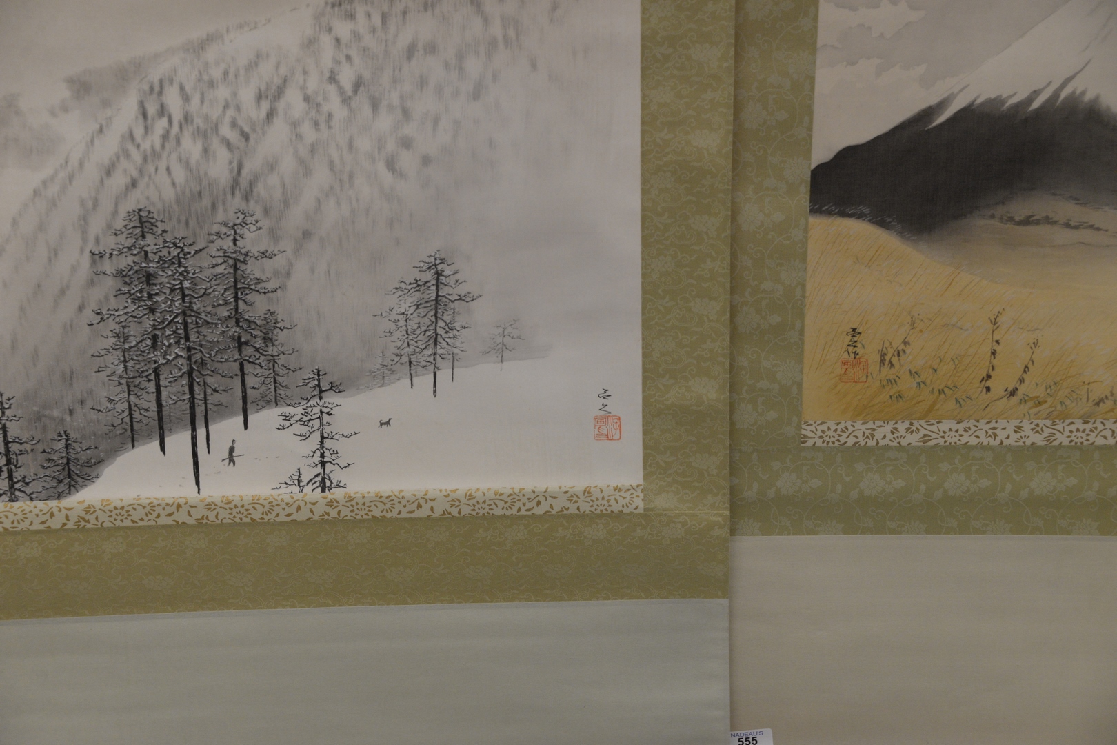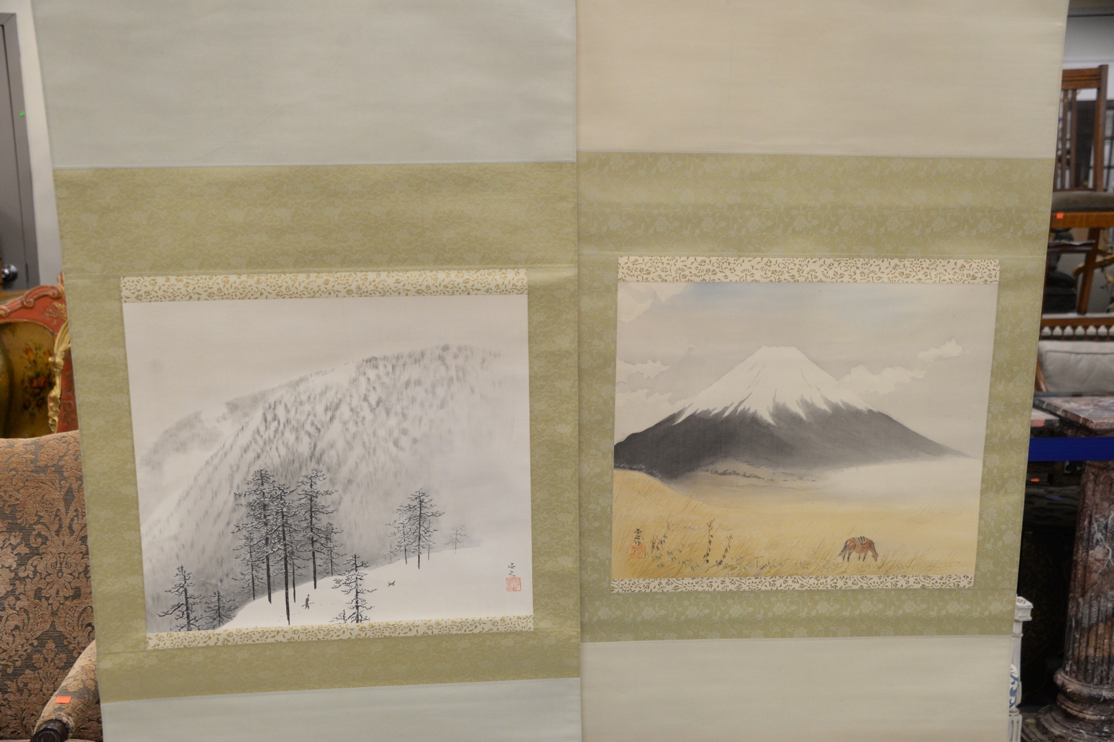 Lot 555: Group of Chinese Items to include three maps and a silk embroidered robe with birds and flowers, length 42 inches.