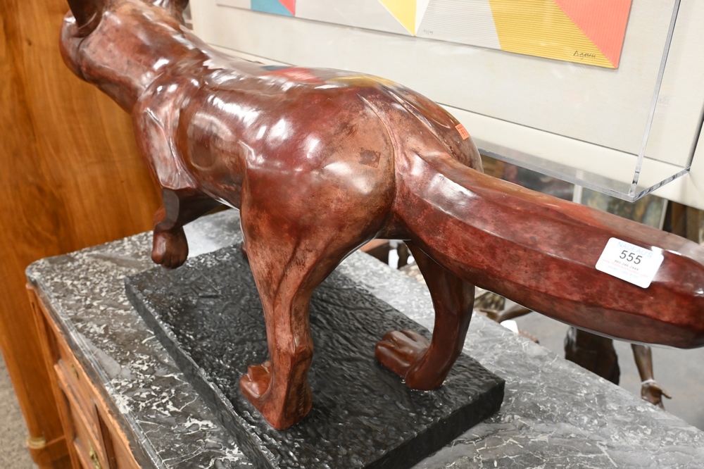 Lot 555: Large Bronze Sculpture, fox in stalking pose with one foot up, Metropolitan Galleries copy, height 22 inches, length 48 inches, widt…