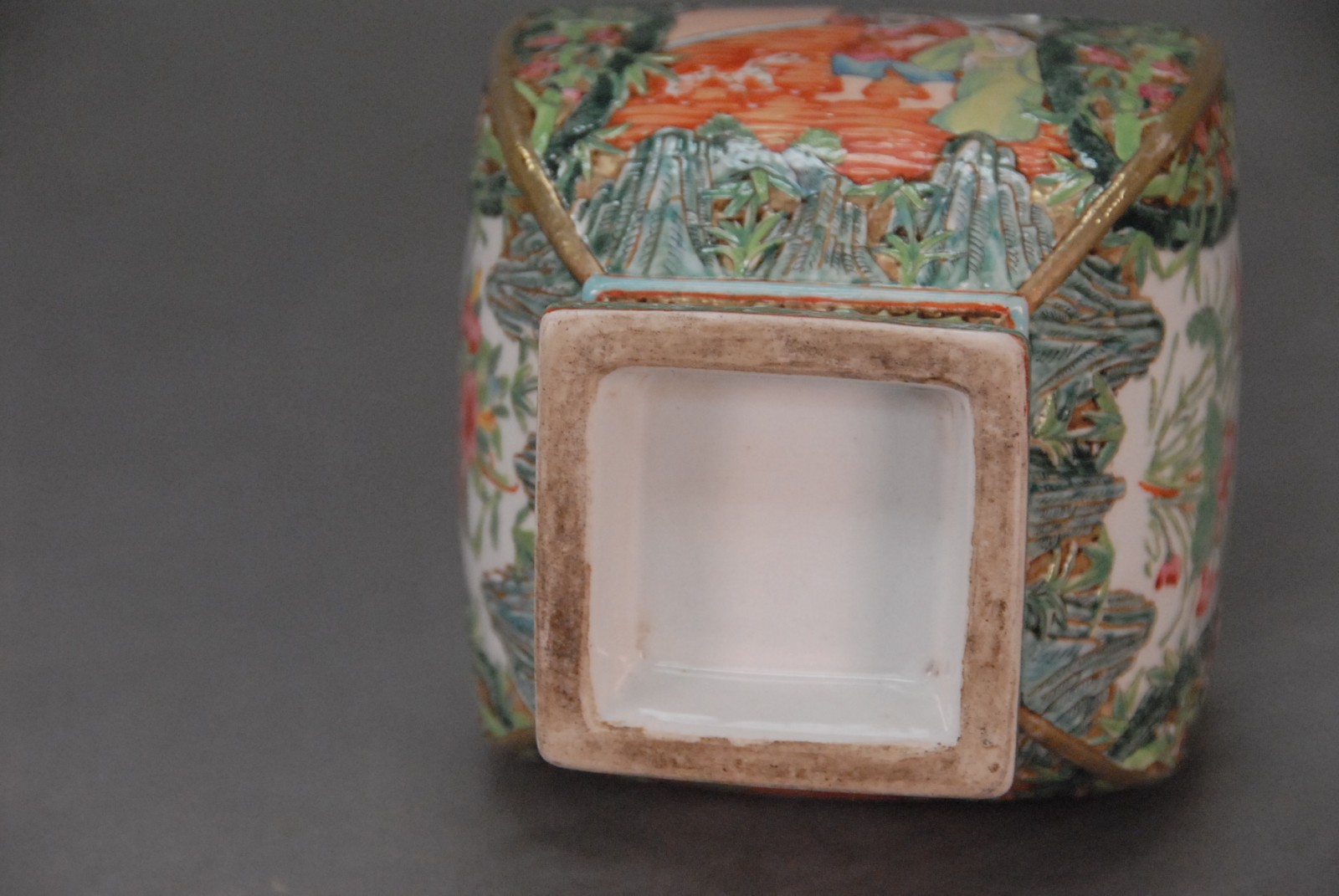 Lot 555: Unusual rose mandarin rectangular bottle vase
