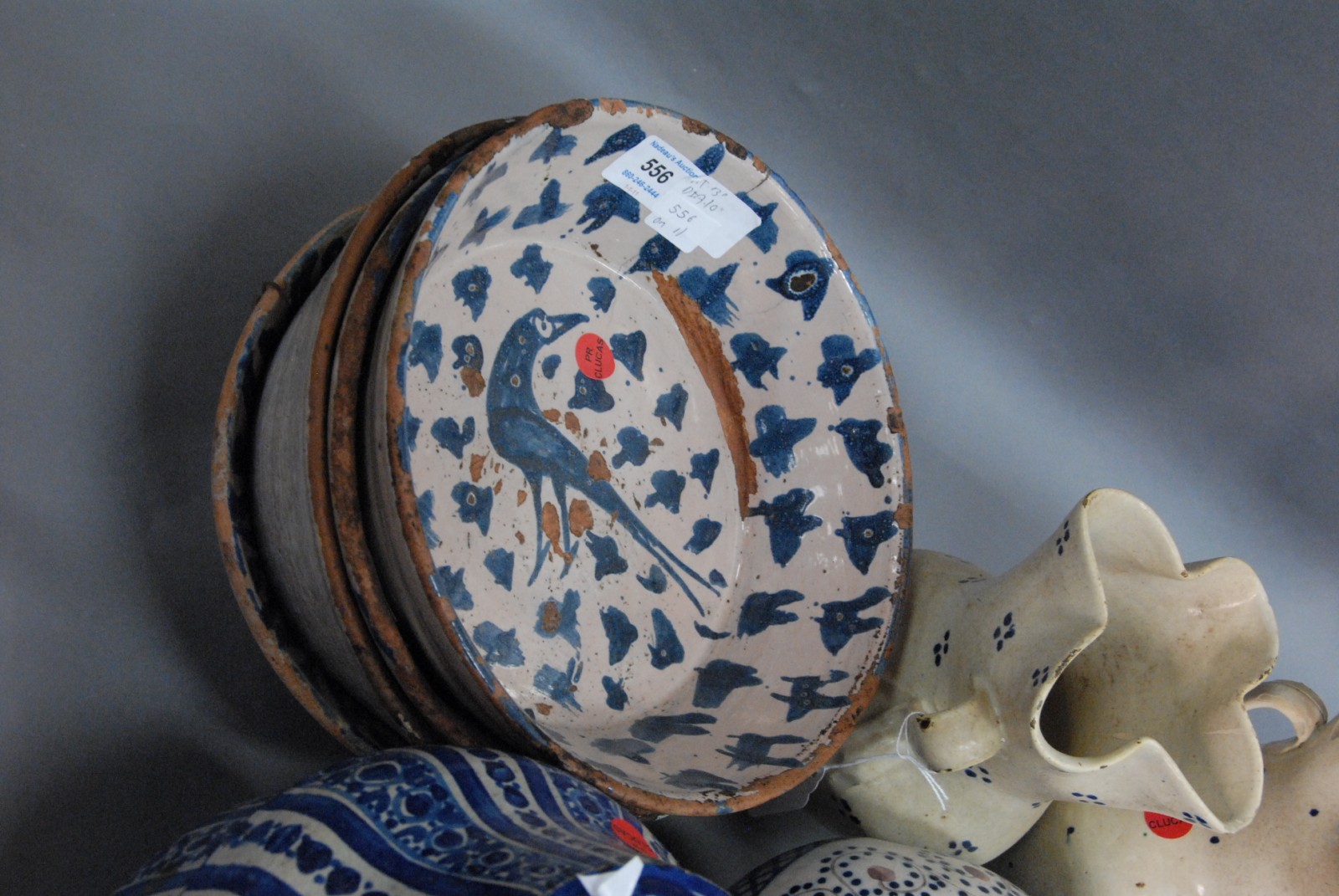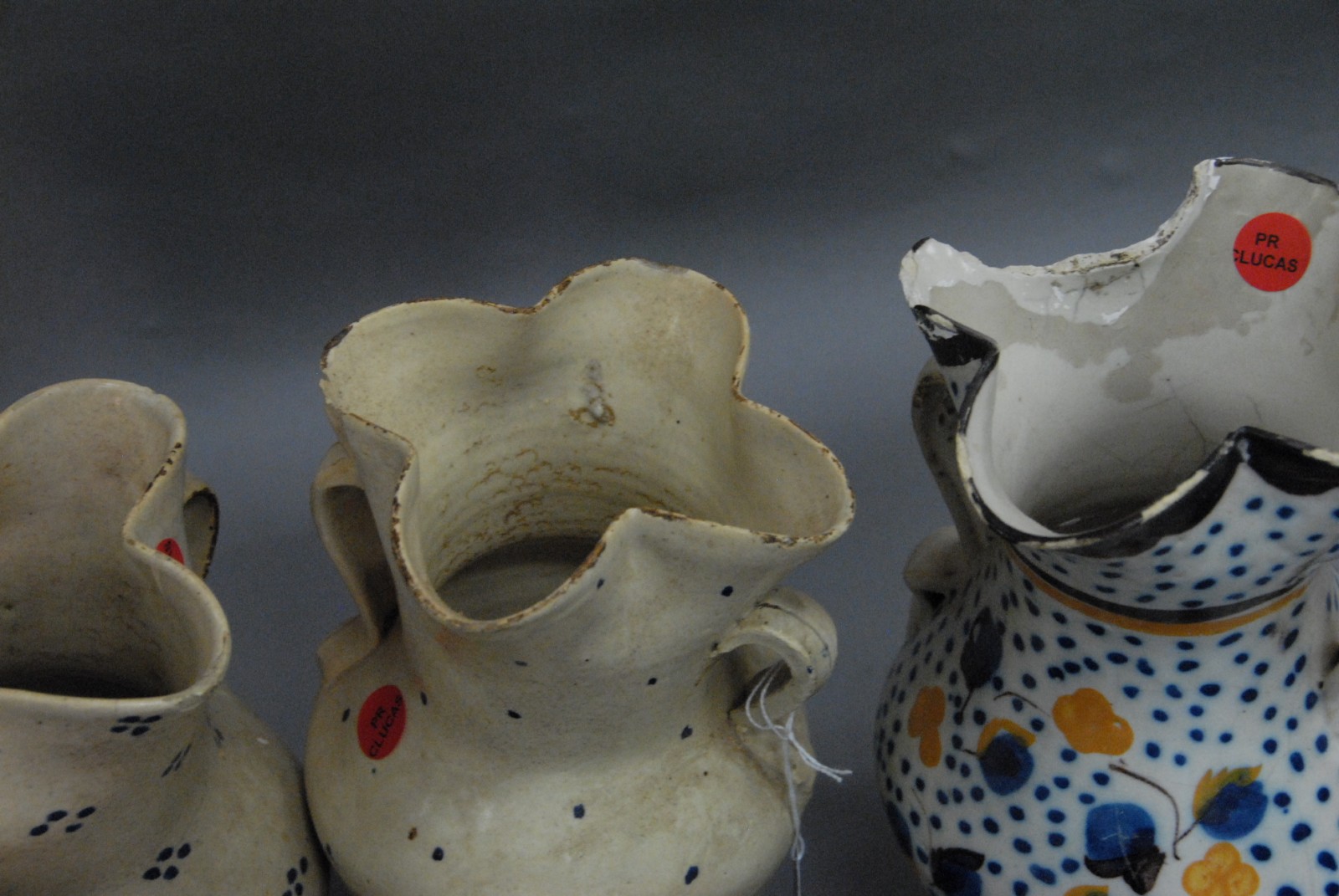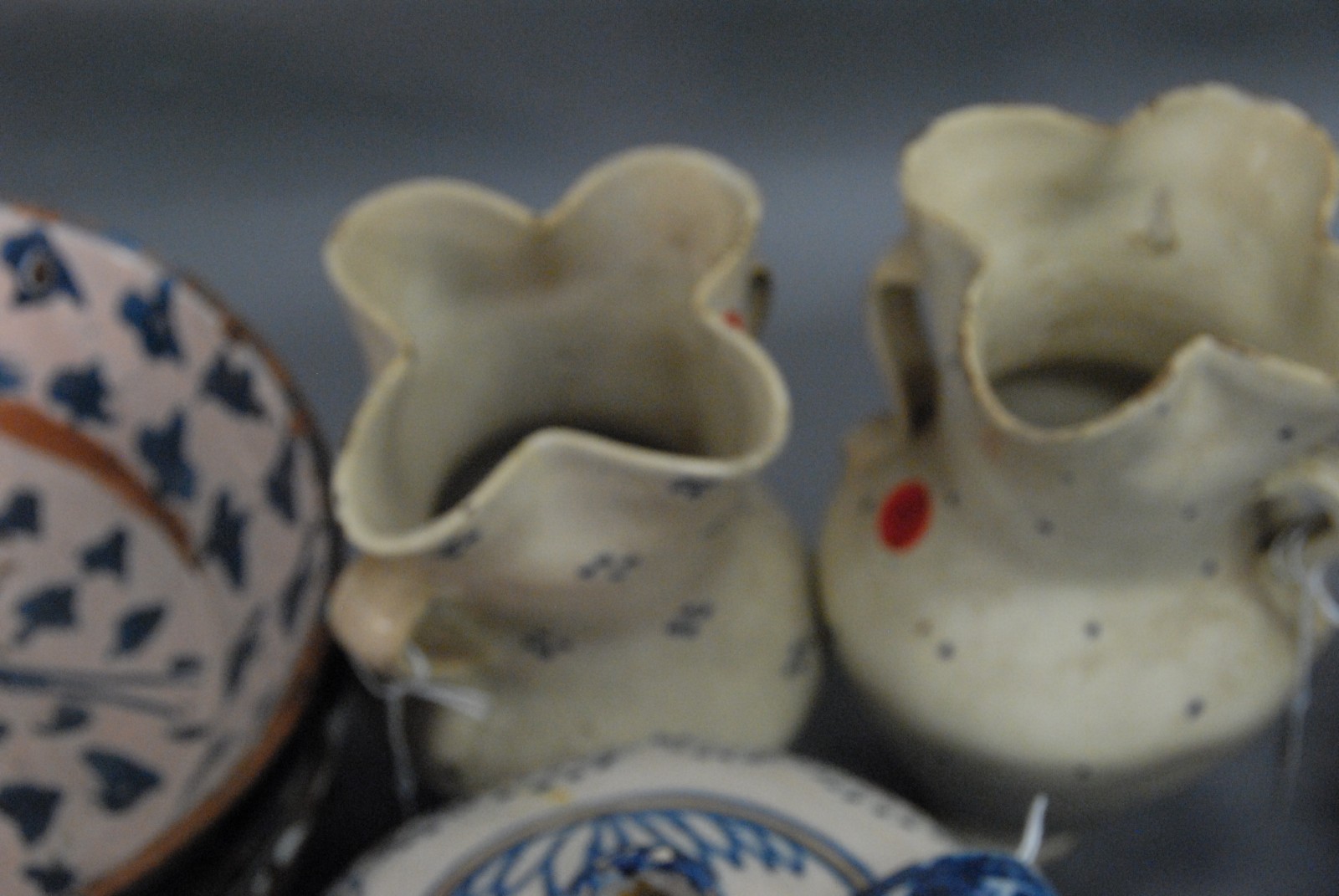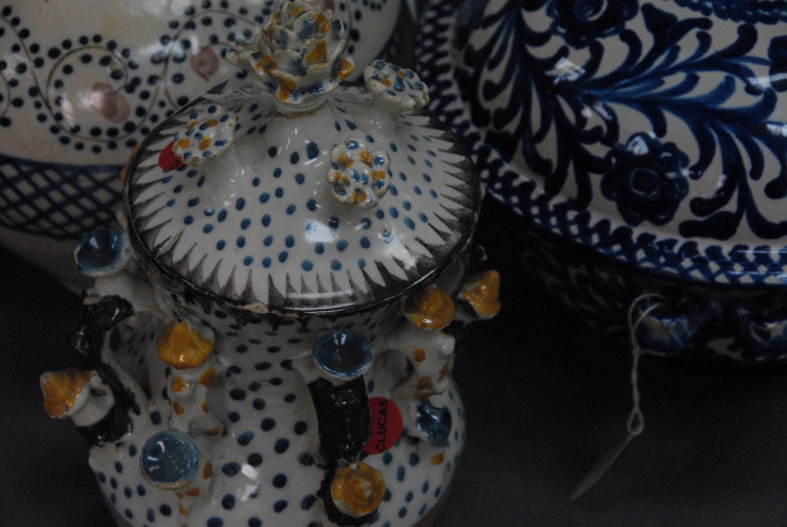 Eleven piece lot of Earthenware to include four shallow bowls, three vases, three coved pieces and one jug probably Spanish 18th – 19th century some damage.