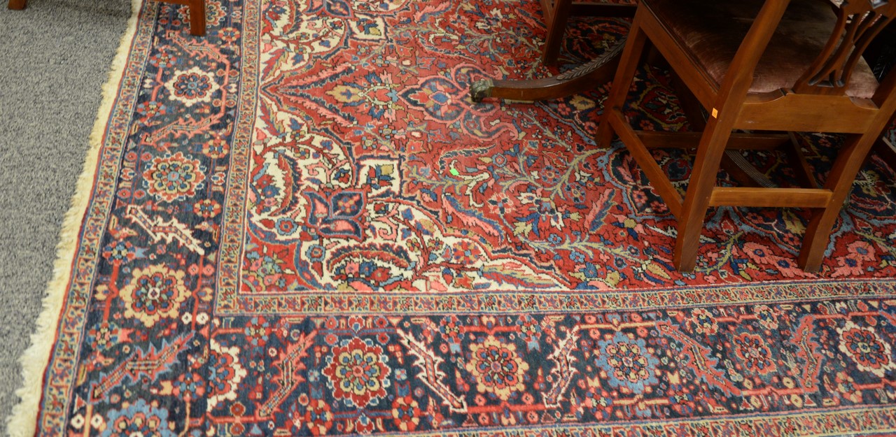 Lot 556: Heriz Oriental carpet wear. 7’6 x 11′