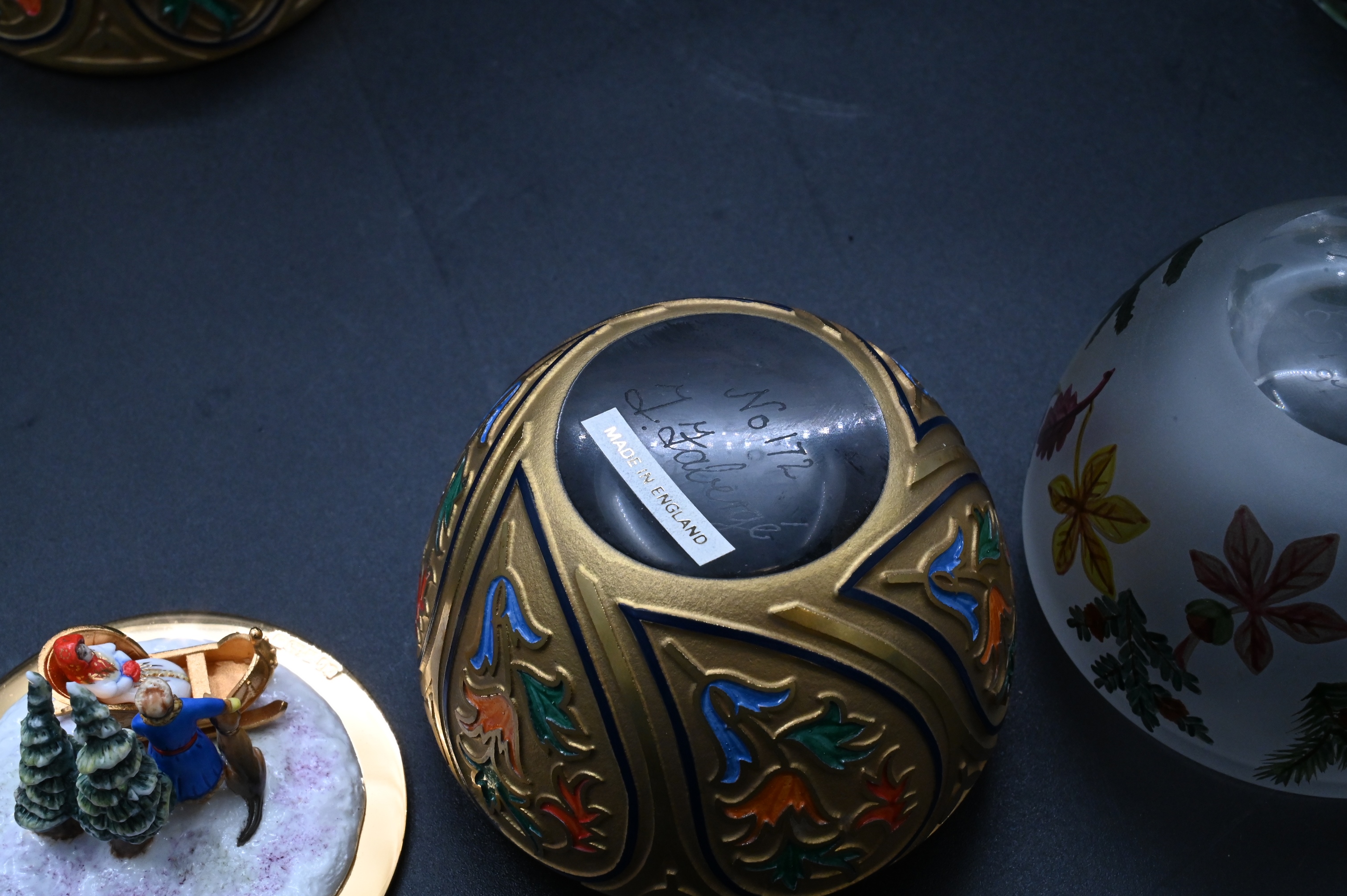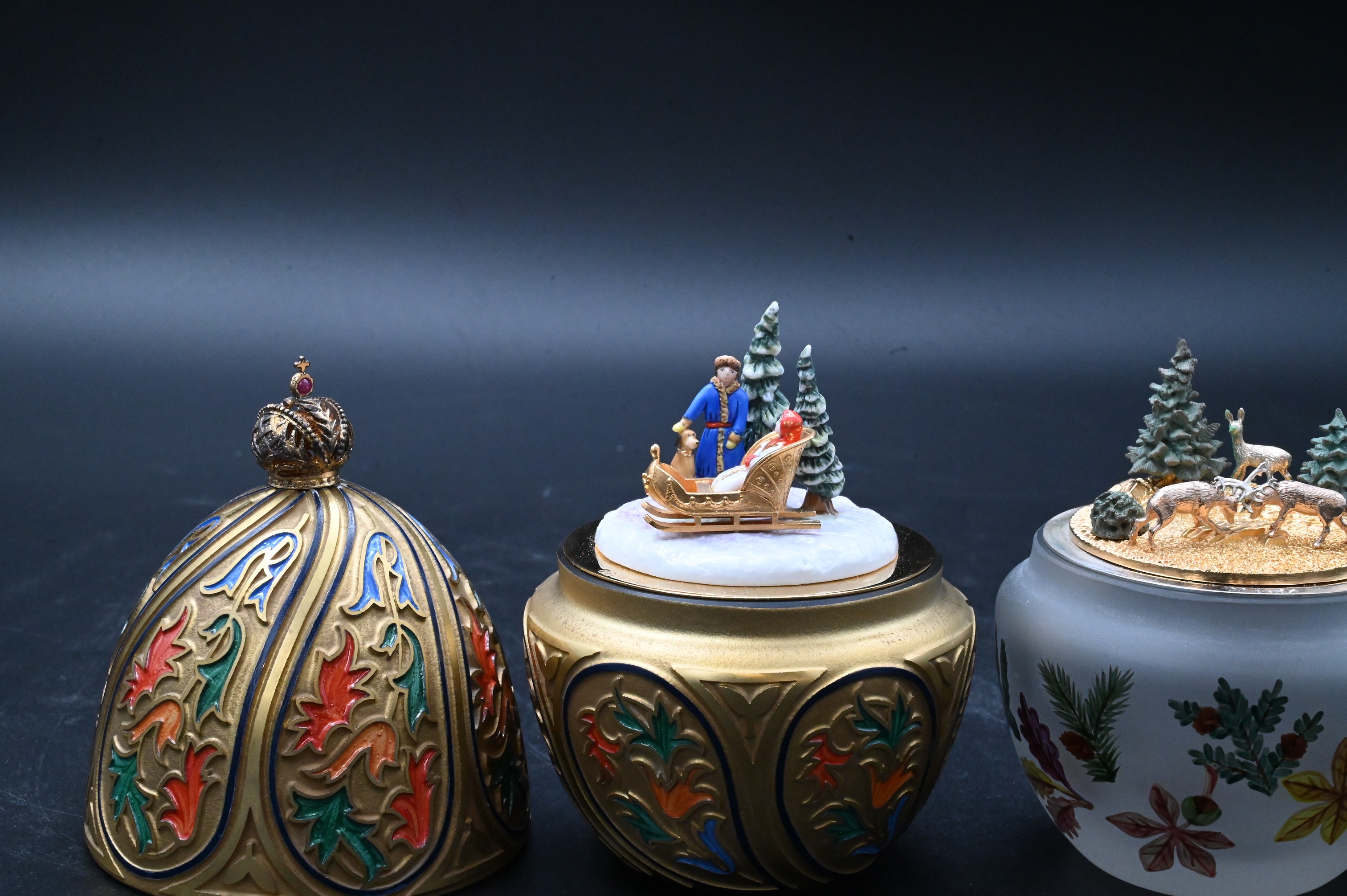 to include “Russian Winter”, 1993, enamel egg opening to a vermeil troika scene, edition 172/750, sterling silver marked