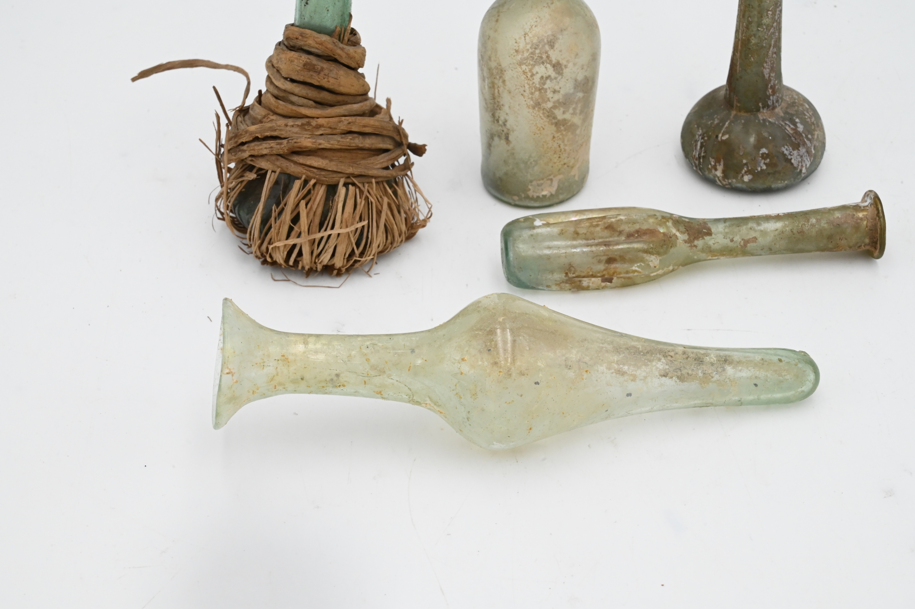Roman glass Unguentarium wrapped in linen