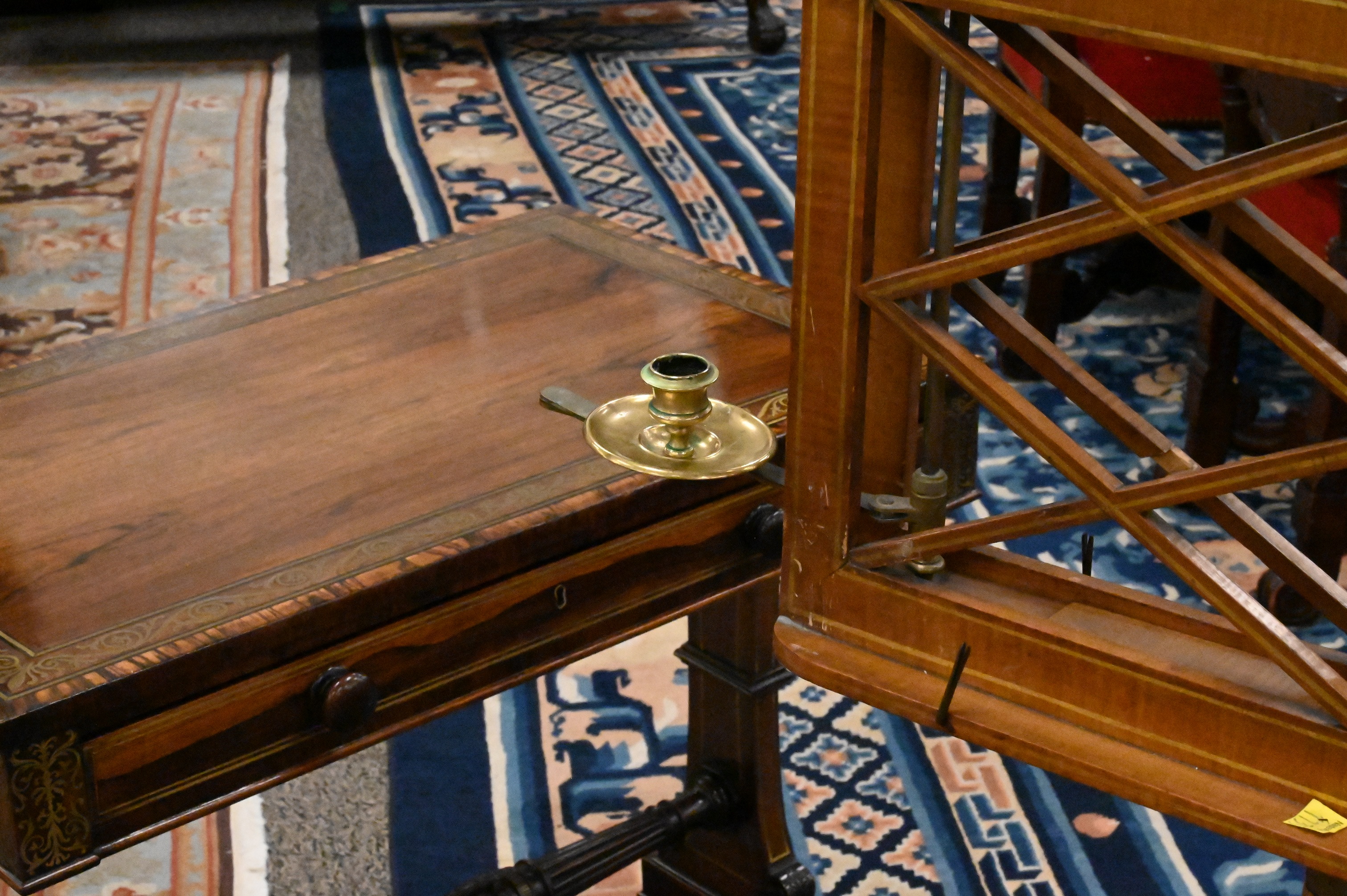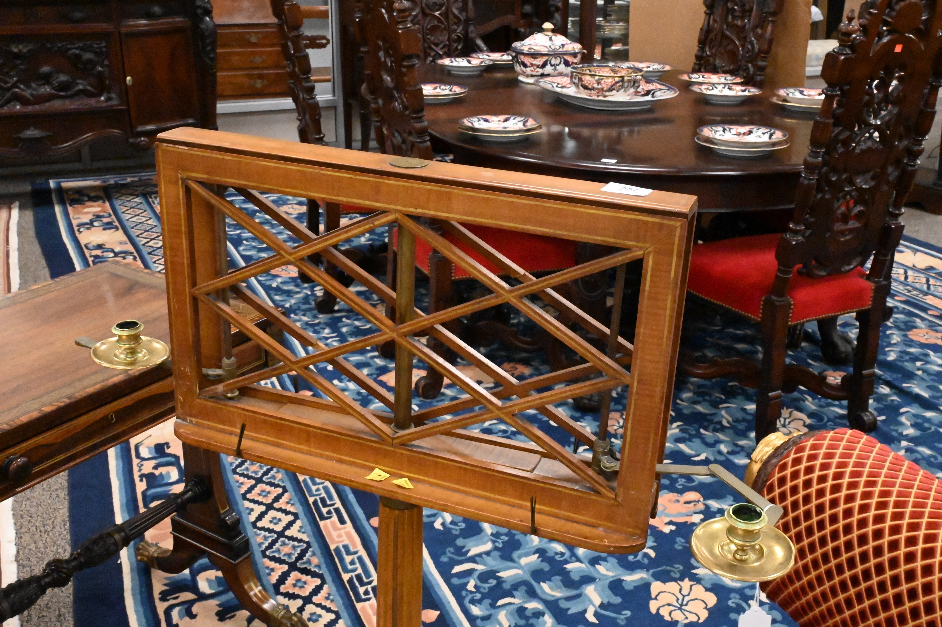 Lot 557: Regency Maple or Satinwood Parcel-Gilt Tripod Duet Music Stand