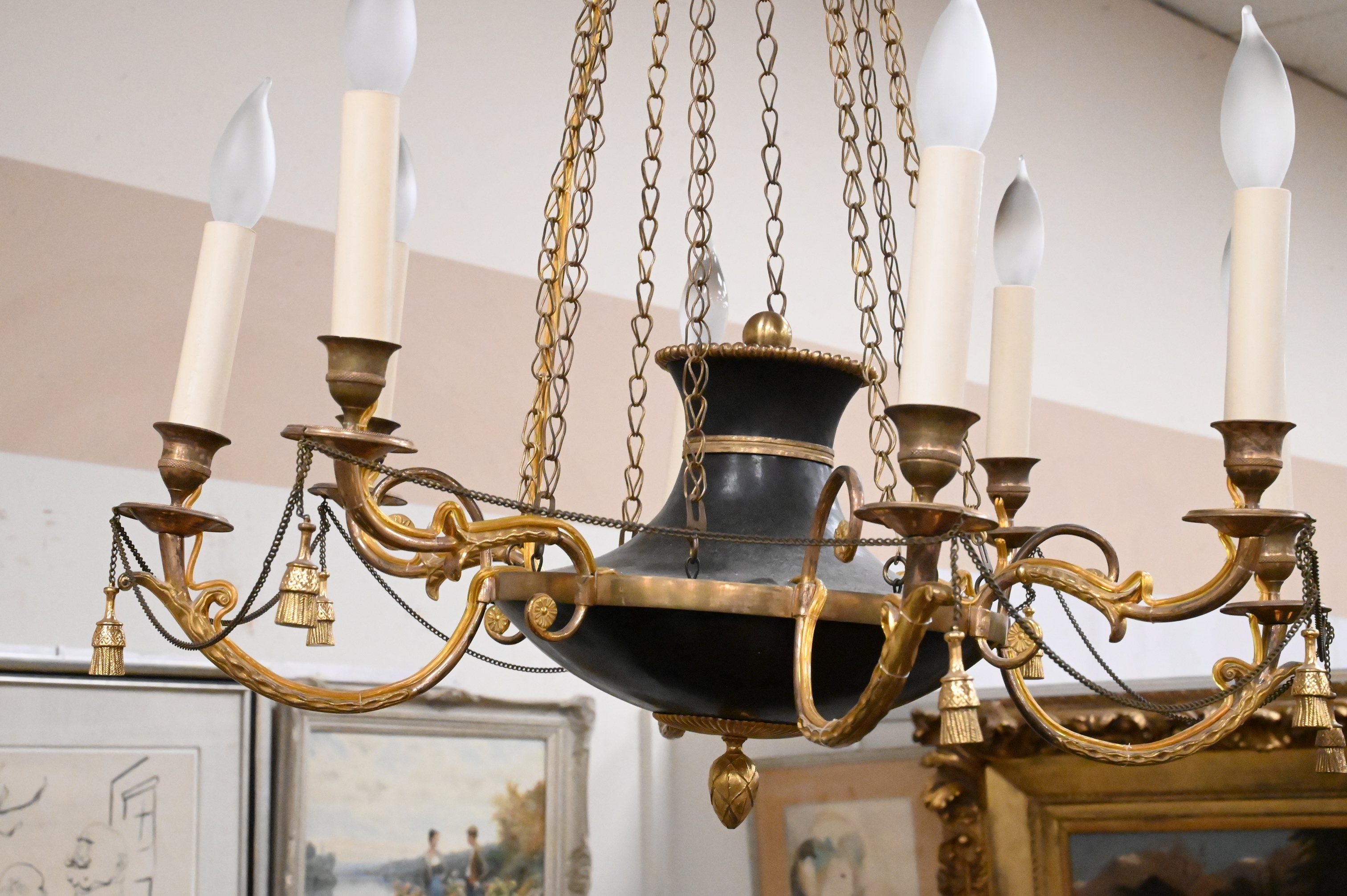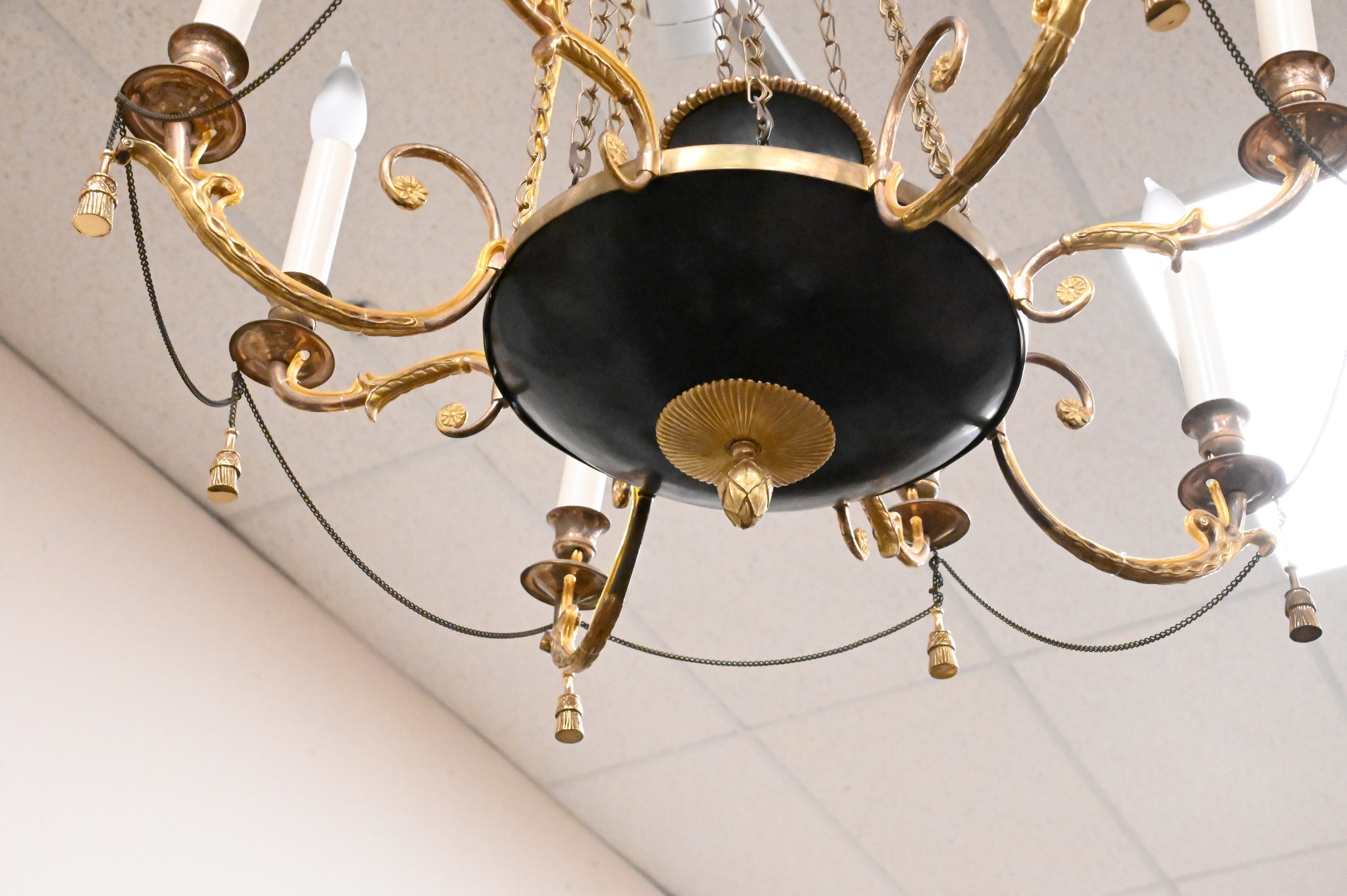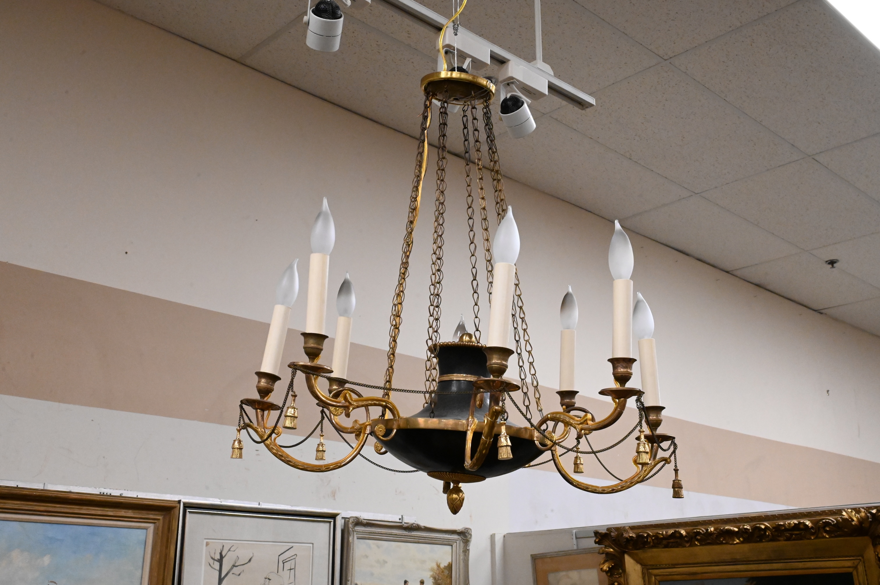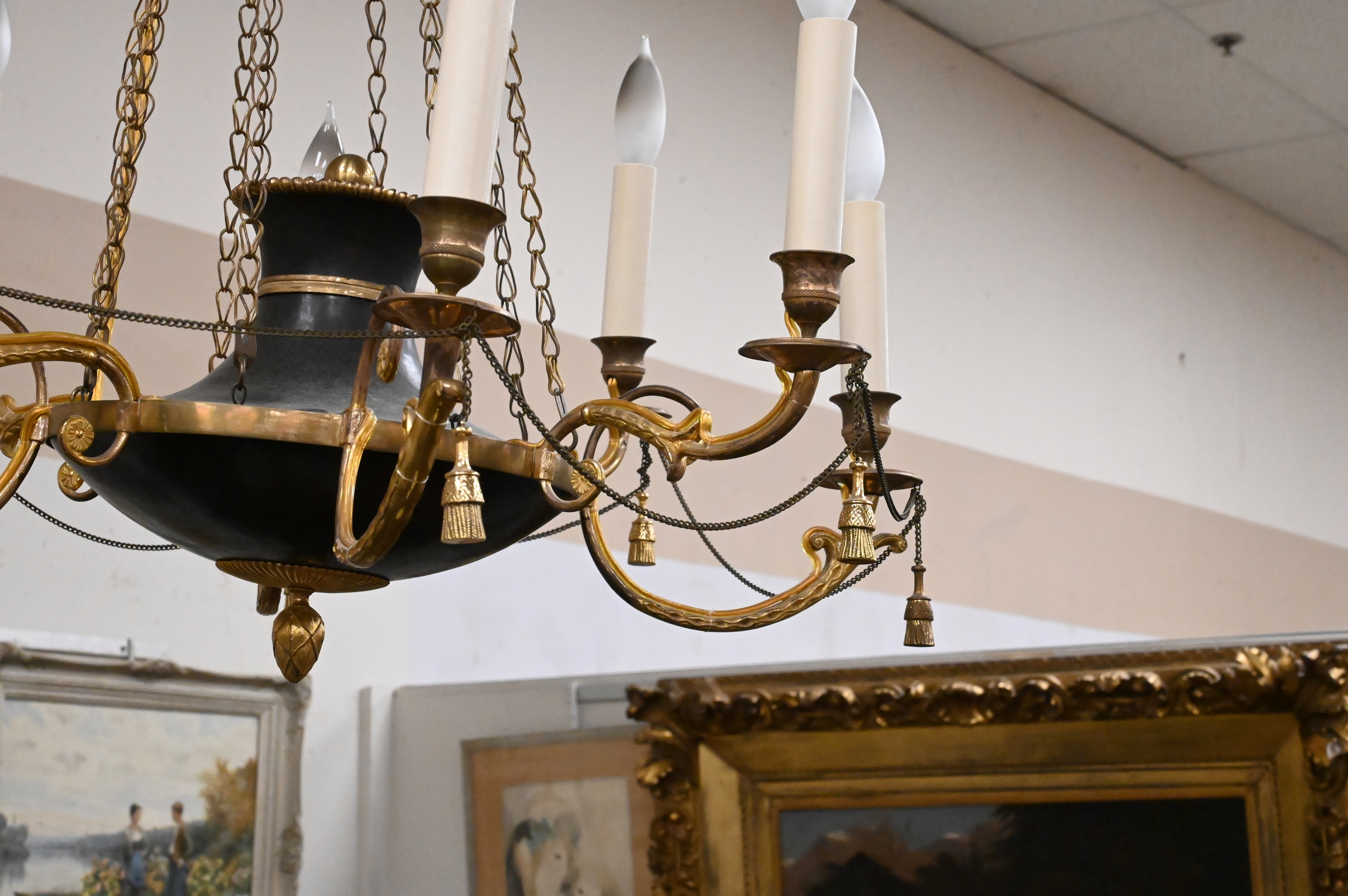 Lot 557: Swedish Neoclassical Patinated and Gilt Bronze Chandelier
