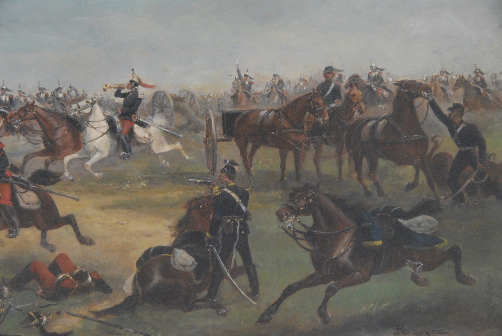 Paul Emile Leon Perboyre 1860 – BATTAILLE DE REZONVILLE 16 AOUT 1870 oil on panel signed lower right Perboyre 1883.