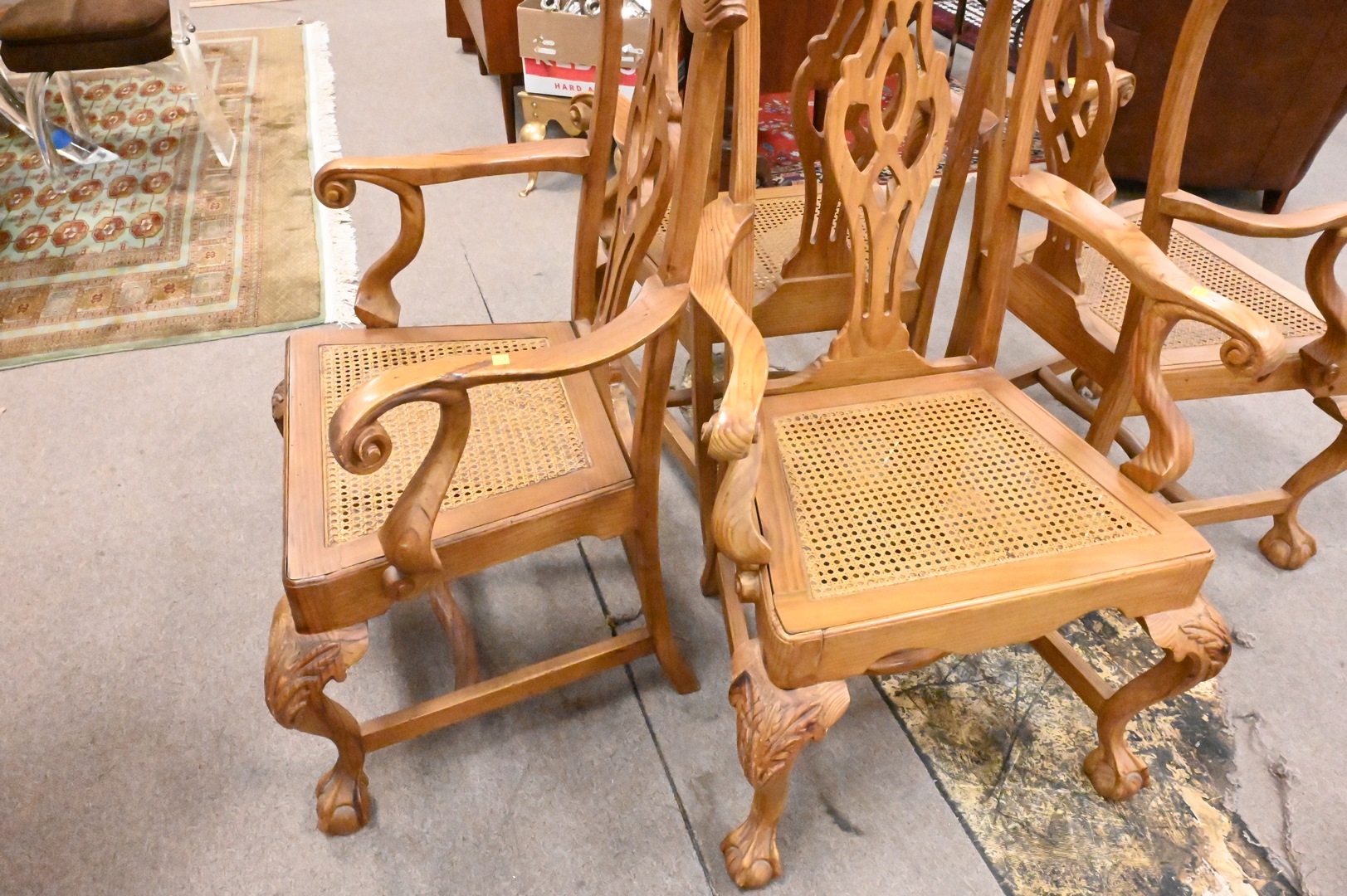 Set of Four Chippendale Style Armchairs, having carved frames, with ball and claw feet, height 44 inches.